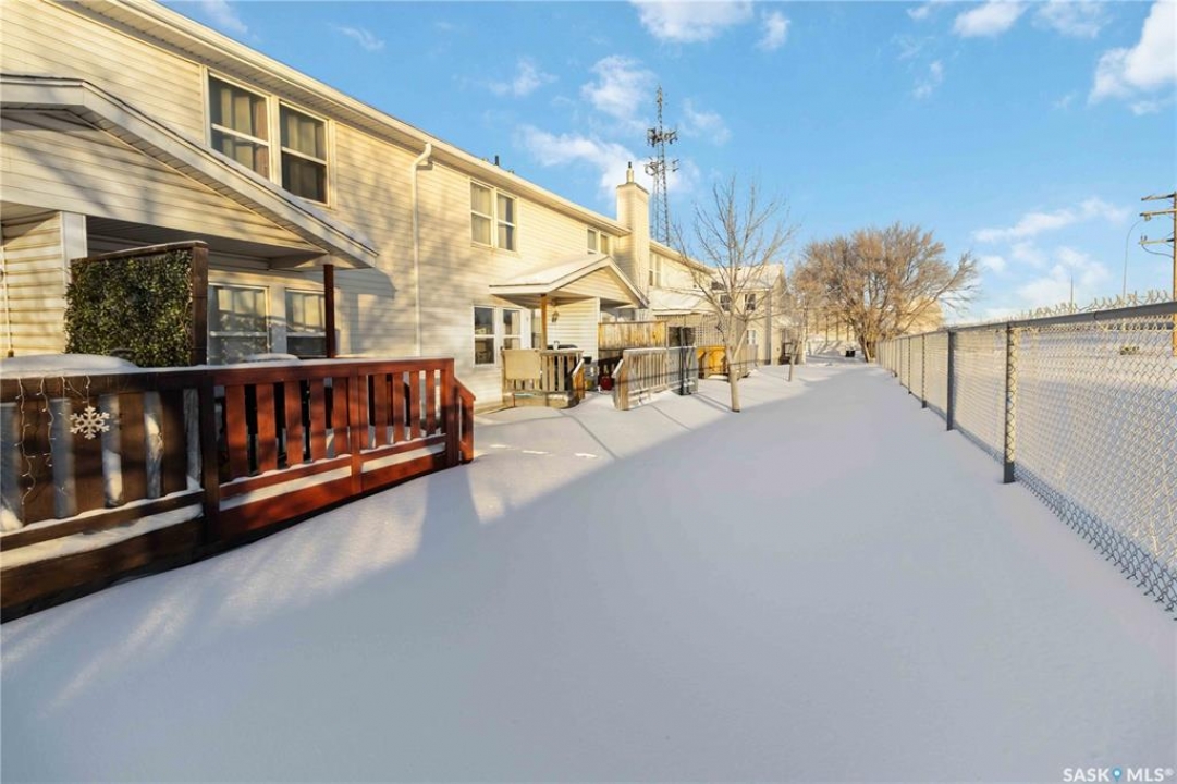 Welcome to 209 Camponi Place! This bright and affordable two-story townhouse offers the perfect blend of comfort and convenience. As you arrive, you'll appreciate the visitor parking and your own exclusive electrified stall. A charming covered front step protects you from the elements as you enter a spacious living room bathed in natural light from large windows. The open-concept kitchen and dining area features a functional pantry and garden door access to a private, east-facing deck—ideal for morning coffee or hosting summer gatherings. Upstairs, a classic wide staircase leads to a massive primary bedroom, a generous second bedroom, and a clean 4-piece bathroom, all featuring beautiful wood flooring. The unfinished basement is a blank canvas, roughed-in for a second bathroom and large enough for two additional bedrooms. One of the best perks? The condo fees cover almost everything, including heat, water, sewer, and even the power for your parking stall. With no furnace or water heater to maintain and a pet-friendly policy, this is worry-free living at its finest!