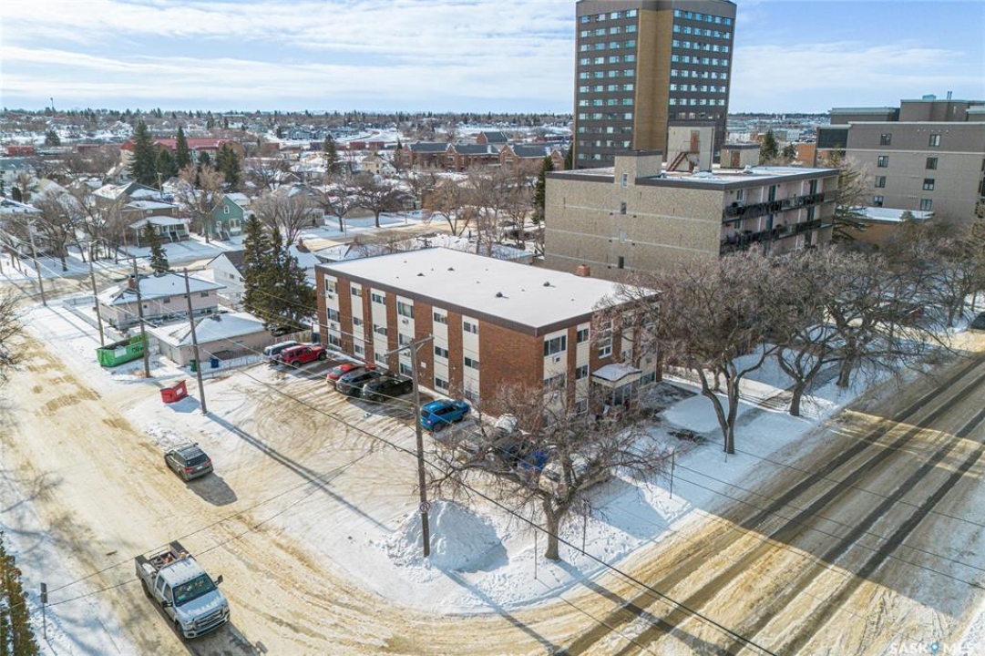 Looking to expand your investment portfolio? This strong 18-suite apartment building offering immediate, stabilized cash flow in a high-demand central Moose Jaw location is available for purchase. Property has 17/18 suites currently rented with a proven tenant base, including 6 long-term tenants with residency spanning approx 6 to 16 years, supporting predictable income & reduced turnover. The building features a desirable suite mix of 6 two-bedroom units, 11 one-bedroom units, &1 bachelor suite, appealing to a broad rental demographic. Most suites have been updated over time with improvements including flooring, paint, & bathroom vanities. All suites are equipped with newer intercom systems, solid core fir entry doors, & include fridge, stove, & hood fan. Separate electrical metering allows for efficient expense control & improved net operating income. Key capital upgrades & mechanical features include natural gas boiler with baseboard heating in all suites, 81-litre hot water heater, & all windows have been replaced. The top two floors (12 suites) are equipped with wall air conditioning, enhancing tenant retention & rental appeal. Coin-operated laundry on the lower floor provides additional income. The site includes 18 electrified parking stalls, a strong amenity in this central location. Located across from Crescent Park, steps to public transit & the Senior Activity Centre, & within walking distance to Temple Gardens Mineral Spa & Casino, restaurants, banking, retail/grocery stores, & medical clinic. This location supports consistent demand & long-term rental stability. An excellent opportunity for investors seeking a well-located, stabilized multi-family asset with long-term tenants, controlled expenses, & future rental upside in a growing rental market.