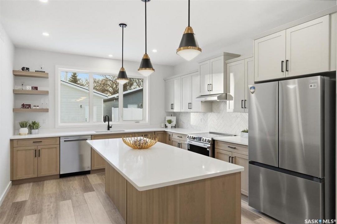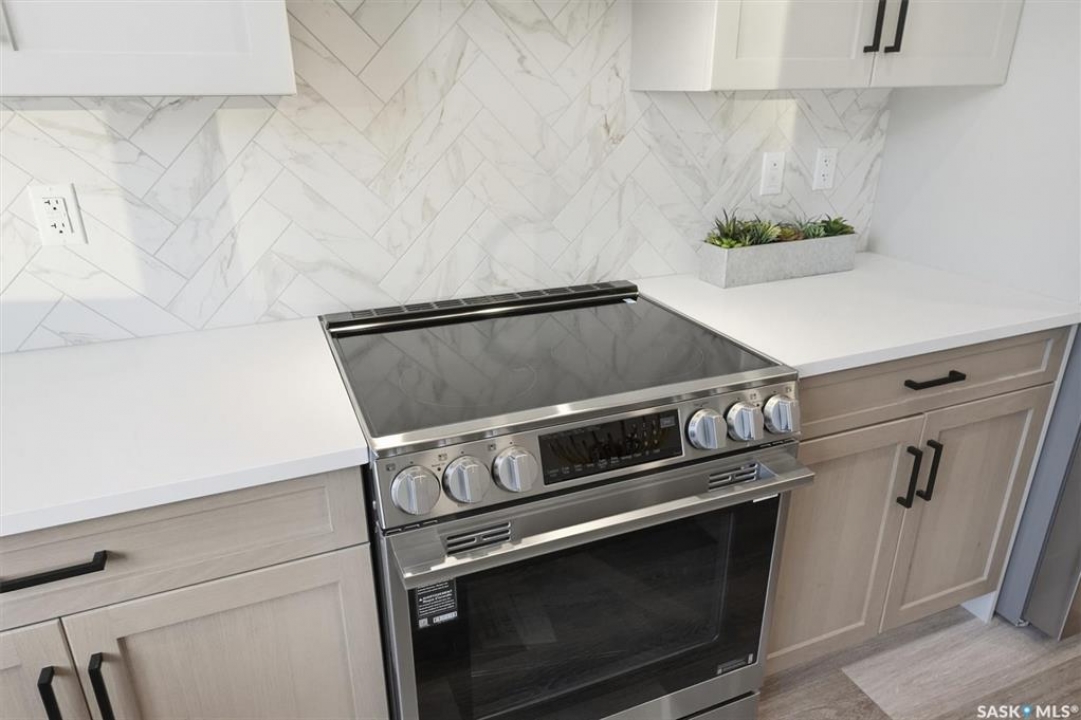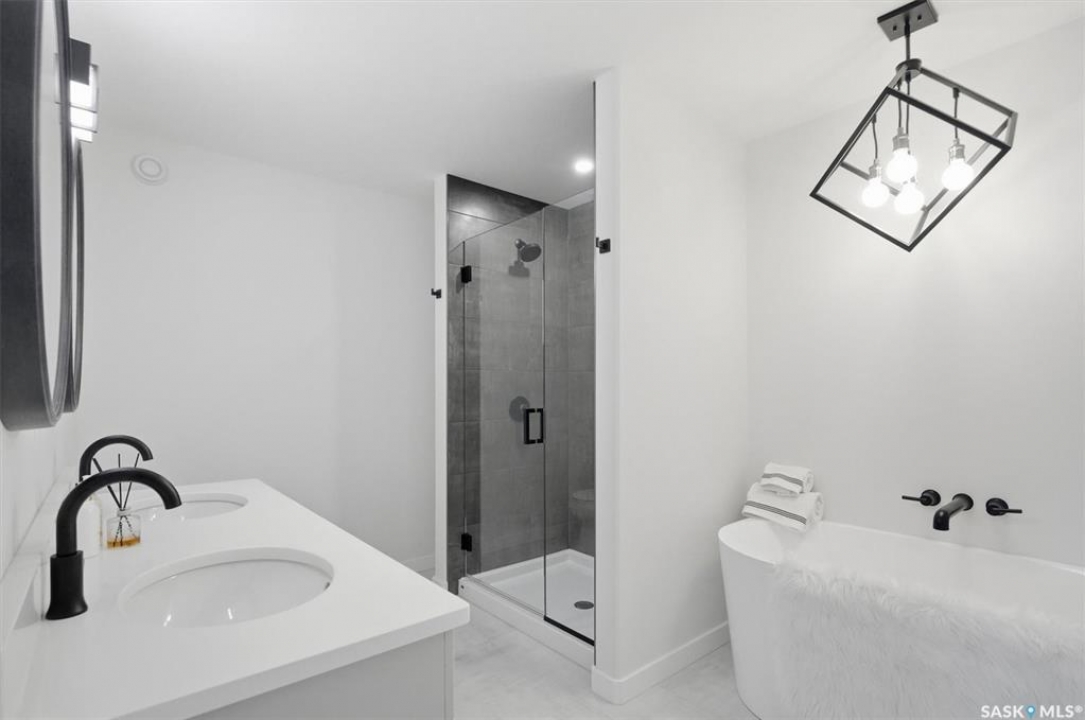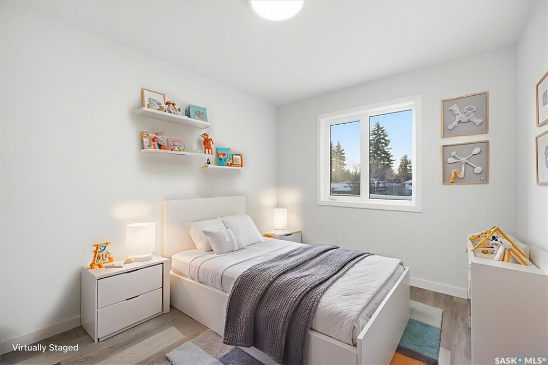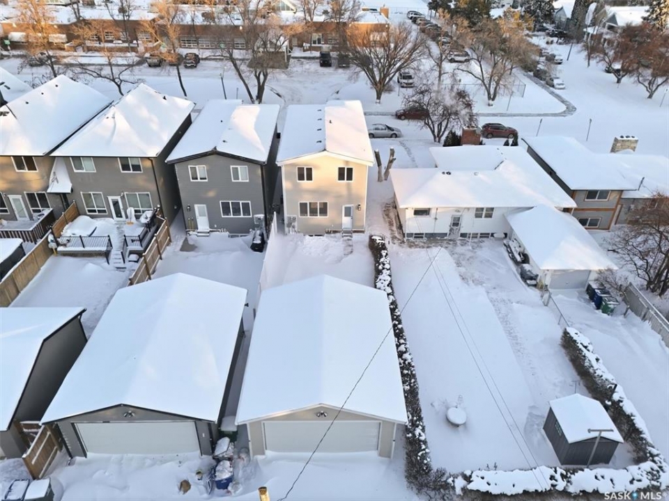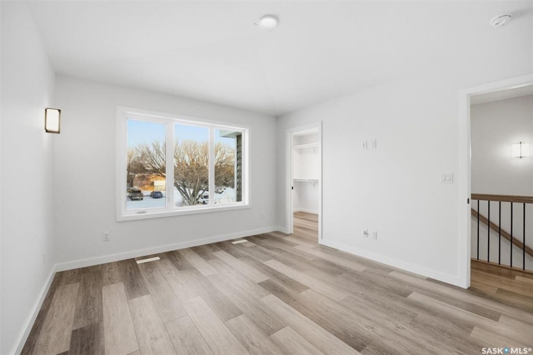 This free standing custom built 2 storey walkout home was built by Capilano Developments and is located in prime Varsity View. Given the unique opportunity of being within walking distance to the University of Saskatchewan the vision was to design a flexible plan appealing to professionals looking to be close to the hospital or University, & even students looking to get into the real estate market. The landscape of this street provided an opportunity to allow access to the basement from the front of the home, which is ideally set up for a suite, home based business, area for extended family visiting, or to use for your own enjoyment. With 1700 sqft on the 2 floors, the main level is spacious and offers a living room with feature gas fireplace with Venetian Plaster surround, dinging room, 2 tone staggered height kitchen cabinets with soft close features / tiled backsplash / garbage/recycle pullout, walk-in pantry, 2 Pc bathroom, and rear mud room with bench seating/storage. The second floor has 3 bedrooms, with the primary bedroom featuring vaulted ceilings, 5 Pc ensuite with soaker tub, walk-in tiled shower, dual sinks, and a walk-in closet. There are two more bedrooms with vaulted ceilings, 4 Pc bathroom, and walk-in laundry area with built-in cabinetry. The basement level is already set up with a secondary electrical panel, future kitchen and laundry rough-ins if a basement suite is of interest, Air B and B, Other features include: luxury waterproof laminate, quartz ctops, A/C, 20'x26' double detached garage with utility door access, majority of yard fenced, rear landscaping with underground sprinklers, front driveway for additional parking.