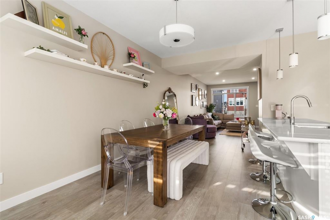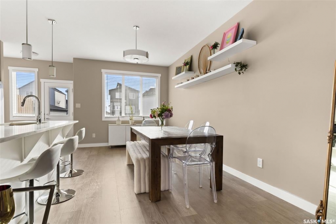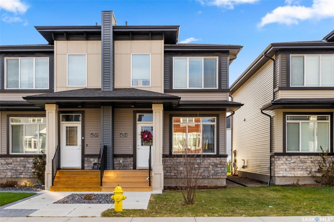 Welcome to 4233 E Keller Avenue, a beautifully designed freehold townhome with no condo fees located in The Towns. This property offers incredible value, modern finishes, and the ease of move-in-ready living. The exterior features contemporary curb appeal with low-maintenance siding and eye-catching stone accents. Step inside to a spacious front foyer with a double closet for convenient storage. The main floor boasts an airy, open-concept layout finished with 9 ft ceilings and luxury vinyl plank flooring. A large picture window brightens the living room, which flows seamlessly into the dining area overlooking the fully fenced backyard. The stylish kitchen is equipped with crisp white cabinetry, a generous sit-up island, quartz countertops, a double sink, accent lighting, and a full stainless steel appliance package. A 2-piece powder room, mudroom and access to the backyard complete the main level. Upstairs, plush carpet leads you to a cozy loft—perfect for a home office or reading nook. The primary bedroom offers plenty of space, complete with a walk-in closet and a 4-piece ensuite featuring a deep soaker tub and quartz-topped vanity. Two additional bedrooms, a second 4-piece bath, and convenient second-floor laundry complete this floor. The basement is framed and insulated along exterior walls, includes a rough-in for a future bathroom, and offers excellent storage or development potential. Outside, the fully fenced PVC yard includes a gate leading to the double parking pad with laneway access—making a future garage a great option. Added features include central air, owned water softener (2019) and new rented water heater (2025). Move in and enjoy!