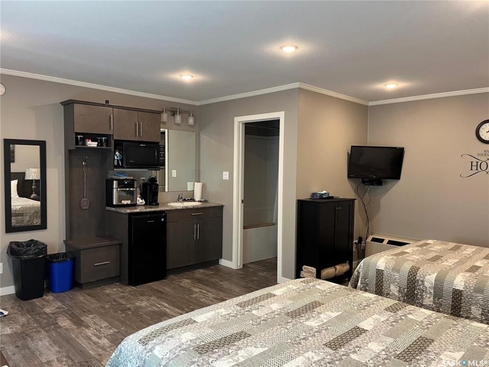 This Business Opportunity can be yours, very reasonably priced, and its ready for you to make it your own. This immaculate , very well cared for Motel, Suite, Car Wash, laundry room, and Garage is located in the community of Leoville. This unit is equipped with 10 rooms, 1 wheel chair accessibility, and 1 laundry and utility room. These rooms are beautifully decorated, and all rooms have all the amenities, coffee pot, utensils, air fryers, dishes and more. As you walk thru this property you can see the seller is very meticulous and cares for the property. Take your tour today.