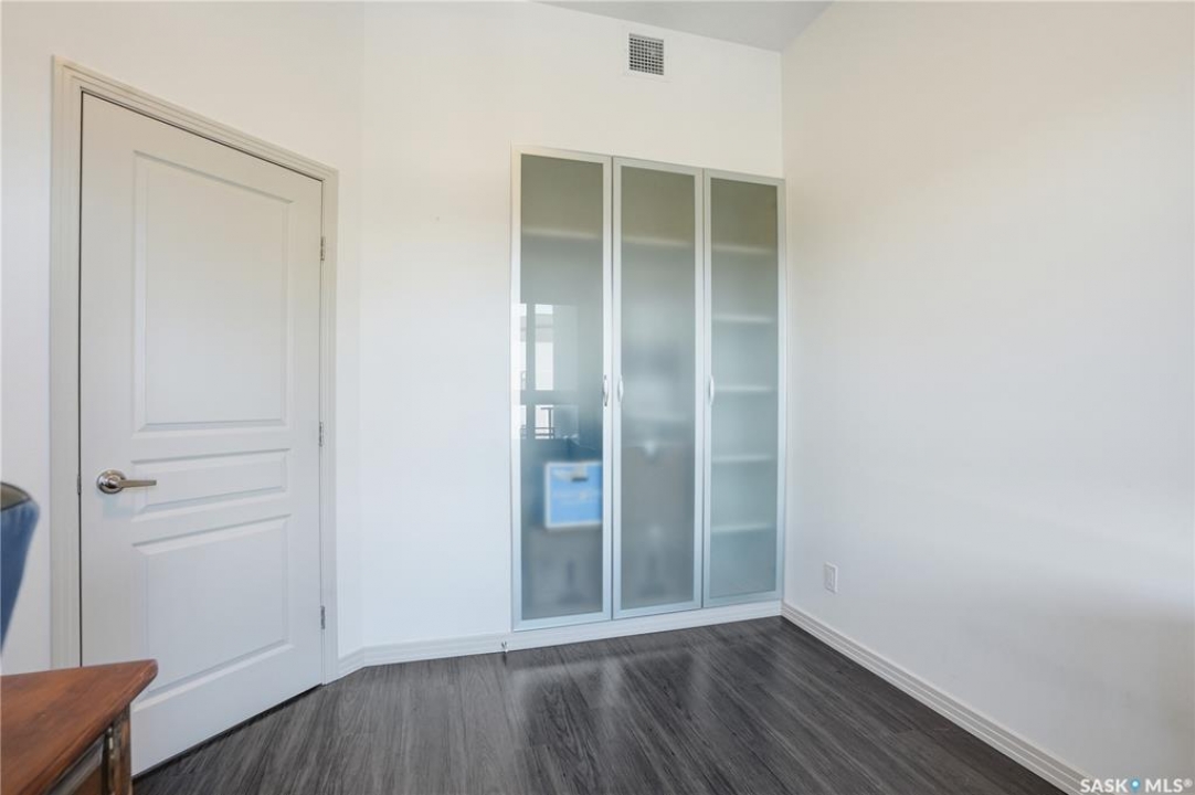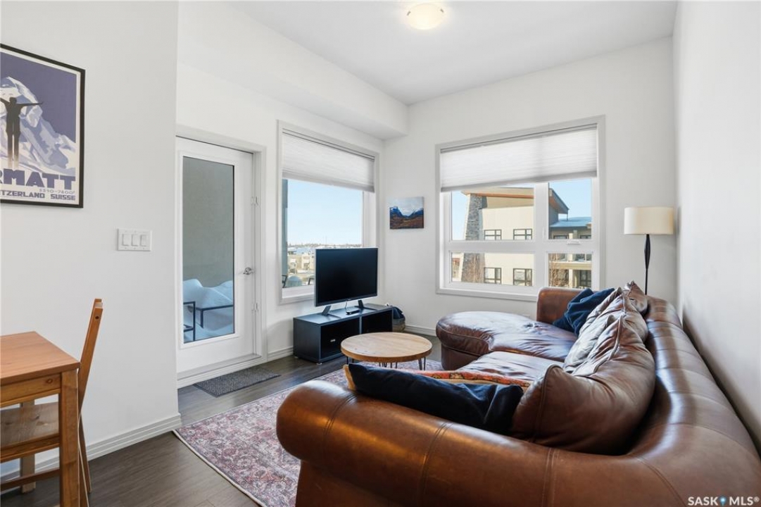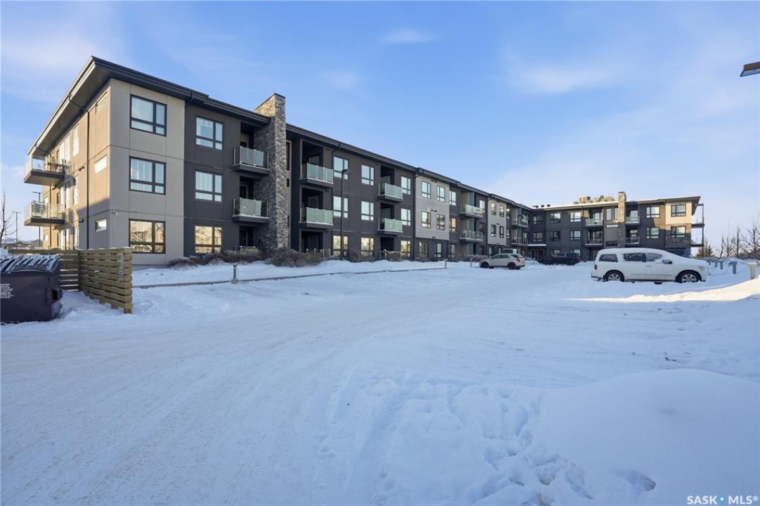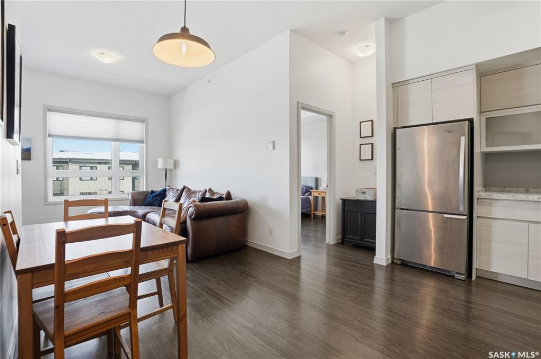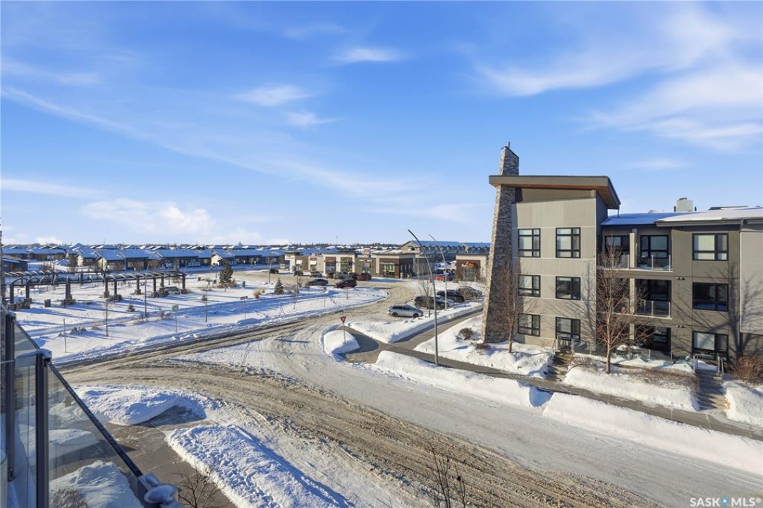 Spectacular top-floor condo in Sequoia Square! This impressive 2-bedroom, 2-bathroom residence features 10-foot ceilings and oversized windows that flood the space with natural light. The open-concept floor plan is beautifully finished and includes in-floor heating throughout for year-round comfort. The kitchen is designed to impress with quartz countertops, soft-close cabinetry, stainless steel appliances, and seamless flow into the dining and living areas. The primary bedroom is a true retreat, offering large windows, a sophisticated dressing/closet area, and a modern en-suite with double sinks, heated tile flooring, and a walk-in shower. A second bedroom, four-piece bathroom, and convenient laundry/storage room complete the interior. Additional highlights include a spacious balcony, central air conditioning, one underground parking stall with storage cage, and one electrified surface parking stall. Both parking spots are close to doors and elevator. The building offers a welcoming main lobby and recreational rooms on each floor. Ideally located with easy access to the University of Saskatchewan and surrounding amenities.