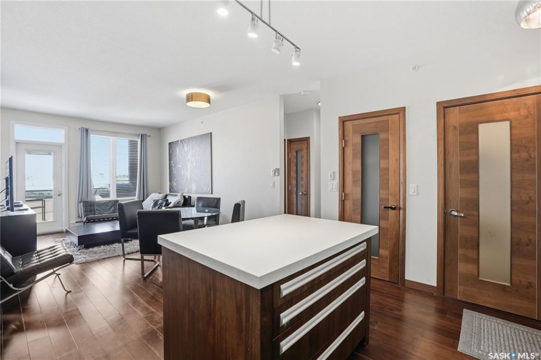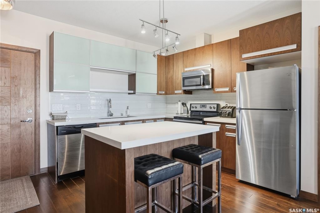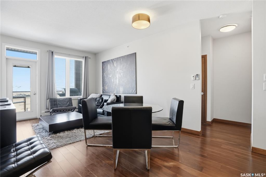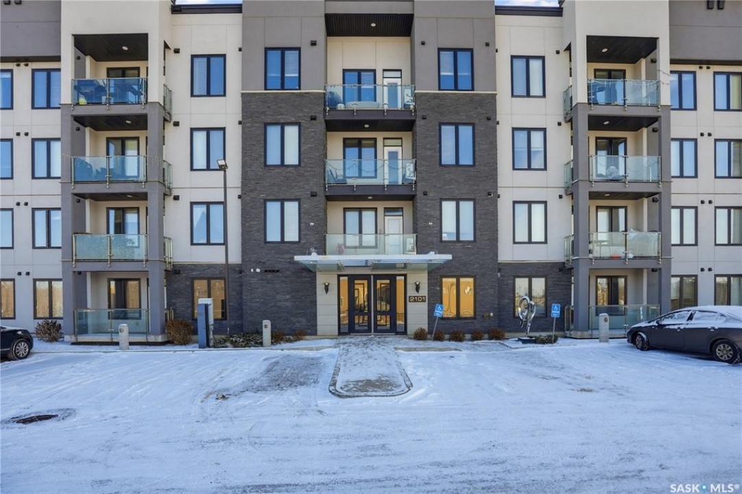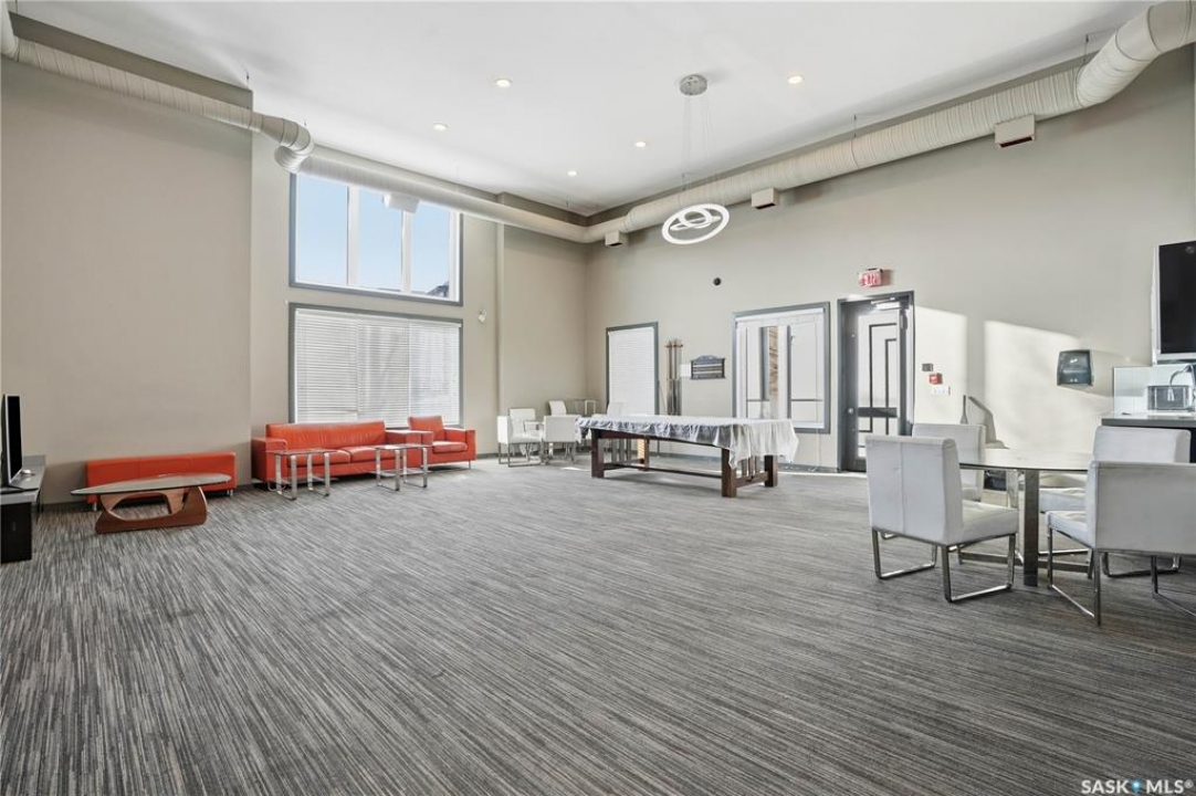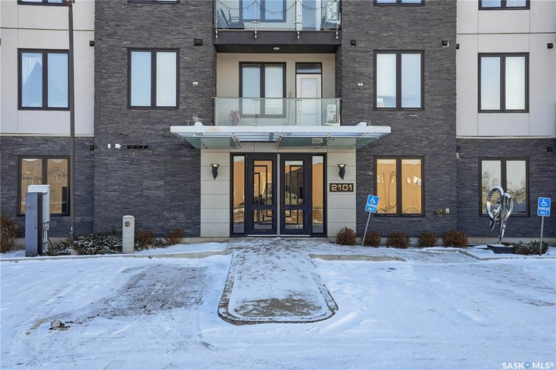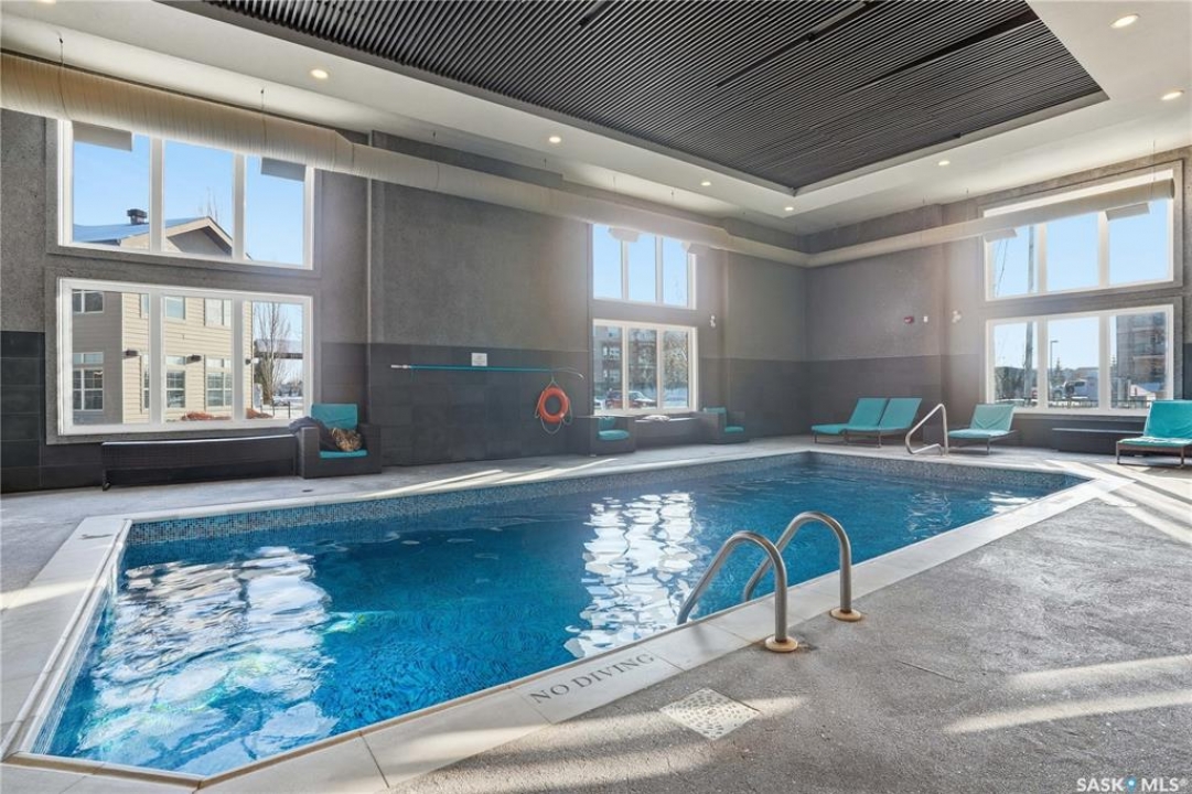 Welcome to Unit 414 at 2101 Heseltine Road, a well-designed condo in Regina's east end that balances comfort, style, and convenience. This bright unit offers two bedrooms and two bathrooms, with a functional layout that works for everyday living. The open-concept kitchen and dining area flow into a comfortable living room, with large windows and a balcony that looks out over the water — a great spot to unwind at the end of the day. The kitchen features stainless steel appliances and plenty of workspace, and in-suite laundry adds to the overall convenience. The building offers a solid list of amenities, including an indoor pool, gym, amenities and party rooms, along with one underground and one above-ground parking stall. A great option for anyone looking for a low-maintenance lifestyle