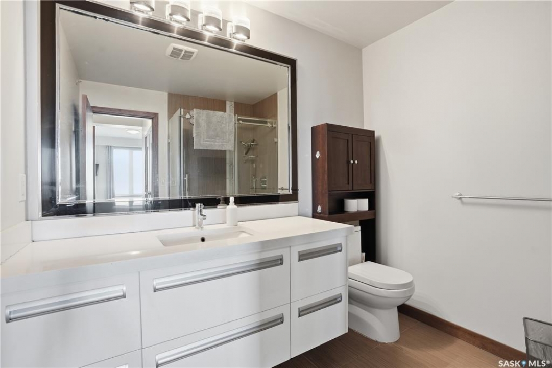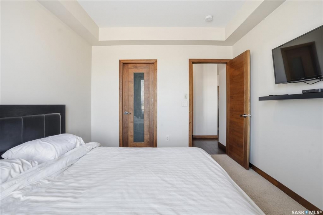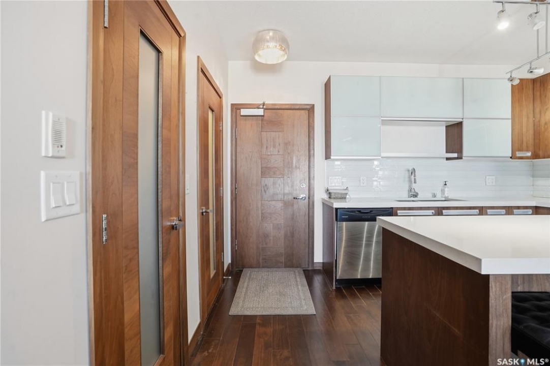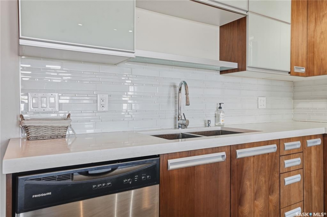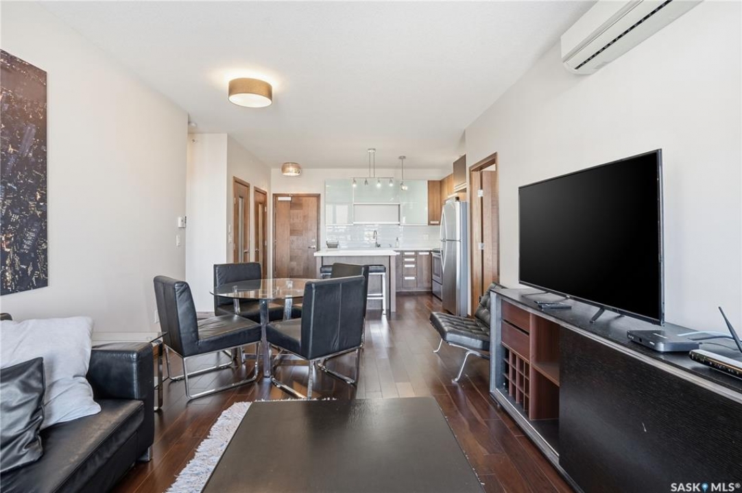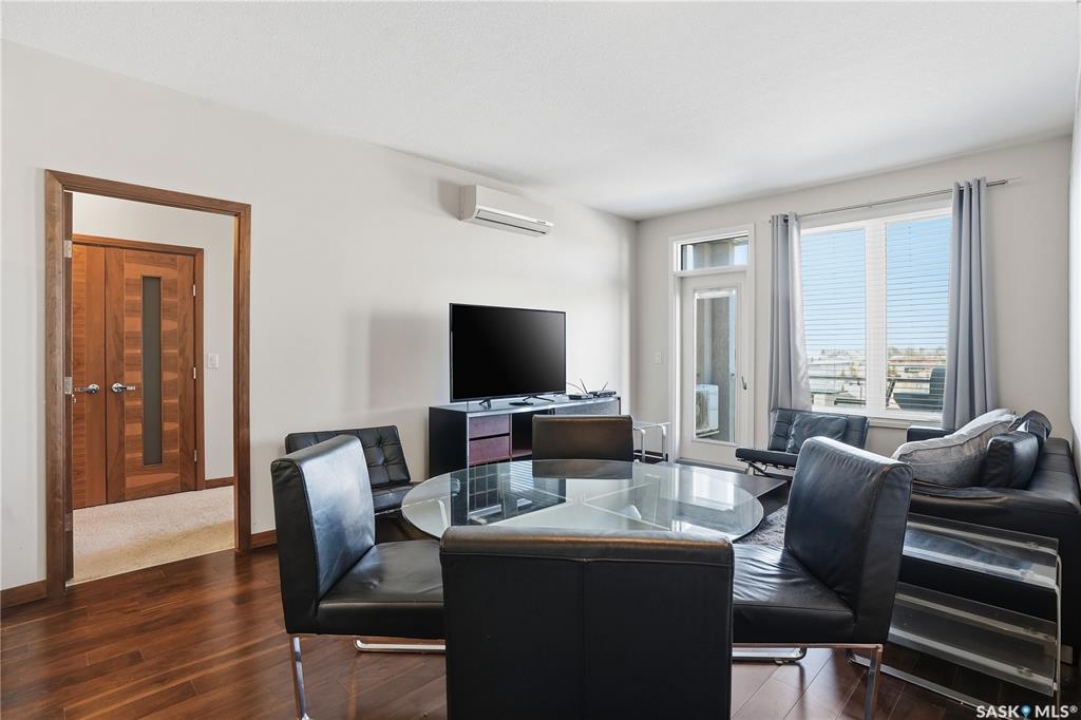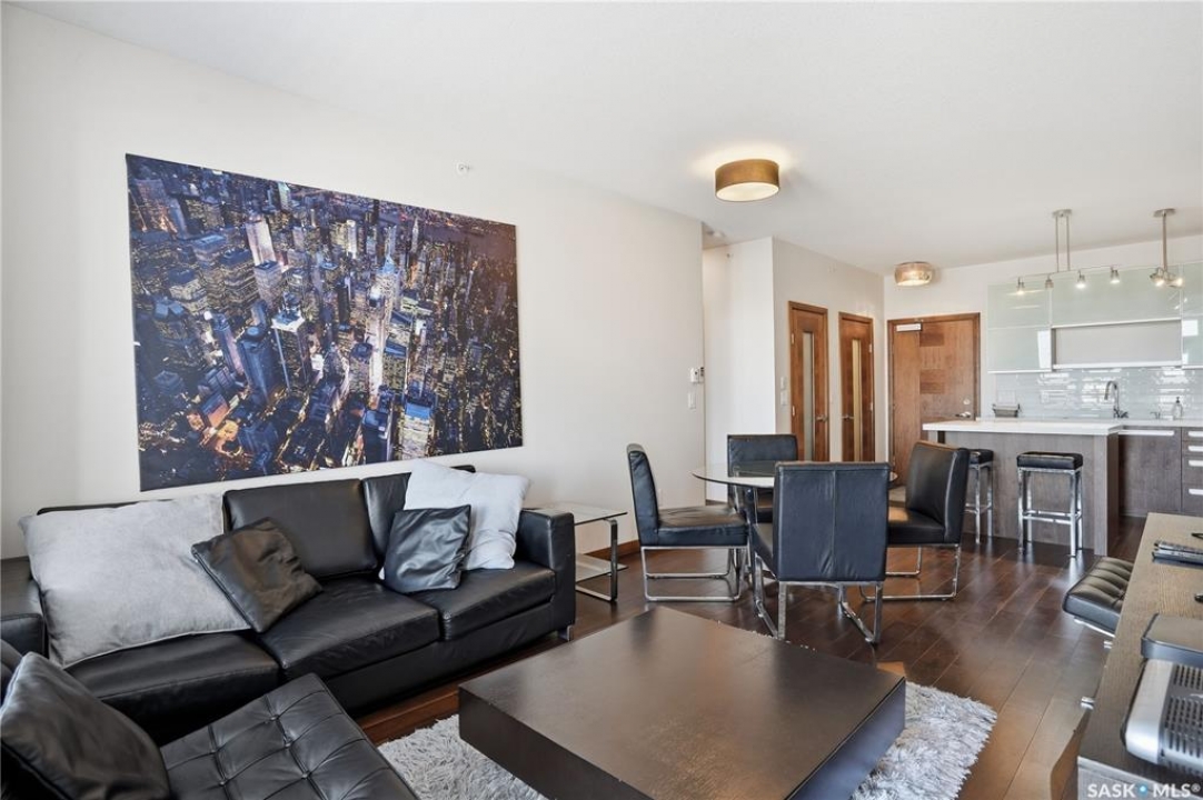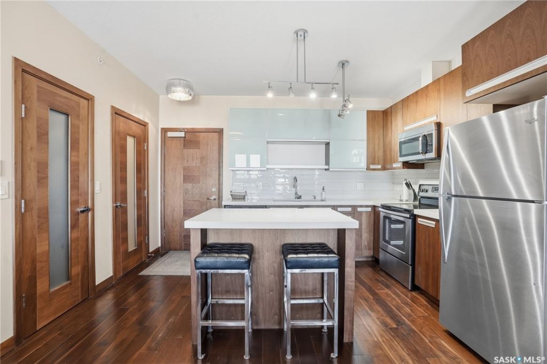 Welcome to Unit 414 at 2101 Heseltine Road, a well-designed condo in Regina's east end that balances comfort, style, and convenience. This bright unit offers two bedrooms and two bathrooms, with a functional layout that works for everyday living. The open-concept kitchen and dining area flow into a comfortable living room, with large windows and a balcony that looks out over the water — a great spot to unwind at the end of the day. The kitchen features stainless steel appliances and plenty of workspace, and in-suite laundry adds to the overall convenience. The building offers a solid list of amenities, including an indoor pool, gym, amenities and party rooms, along with one underground and one above-ground parking stall. A great option for anyone looking for a low-maintenance lifestyle