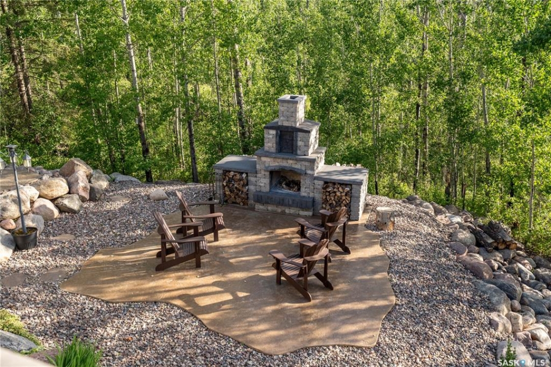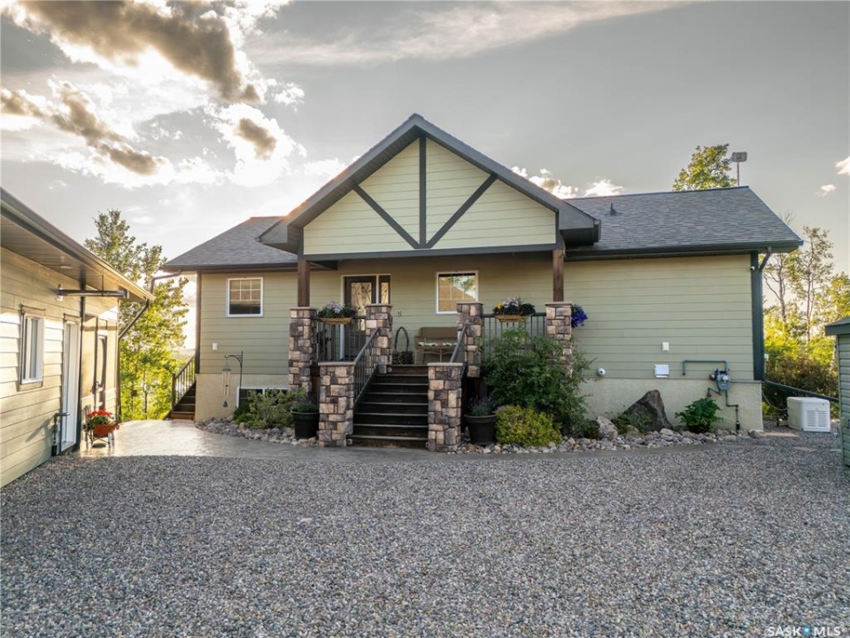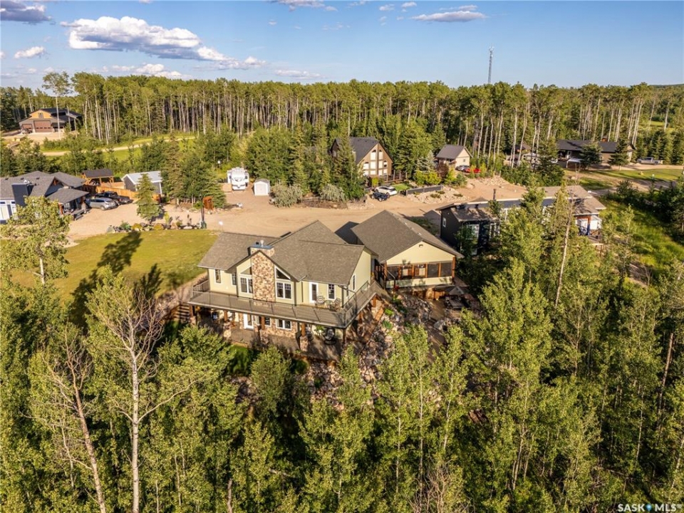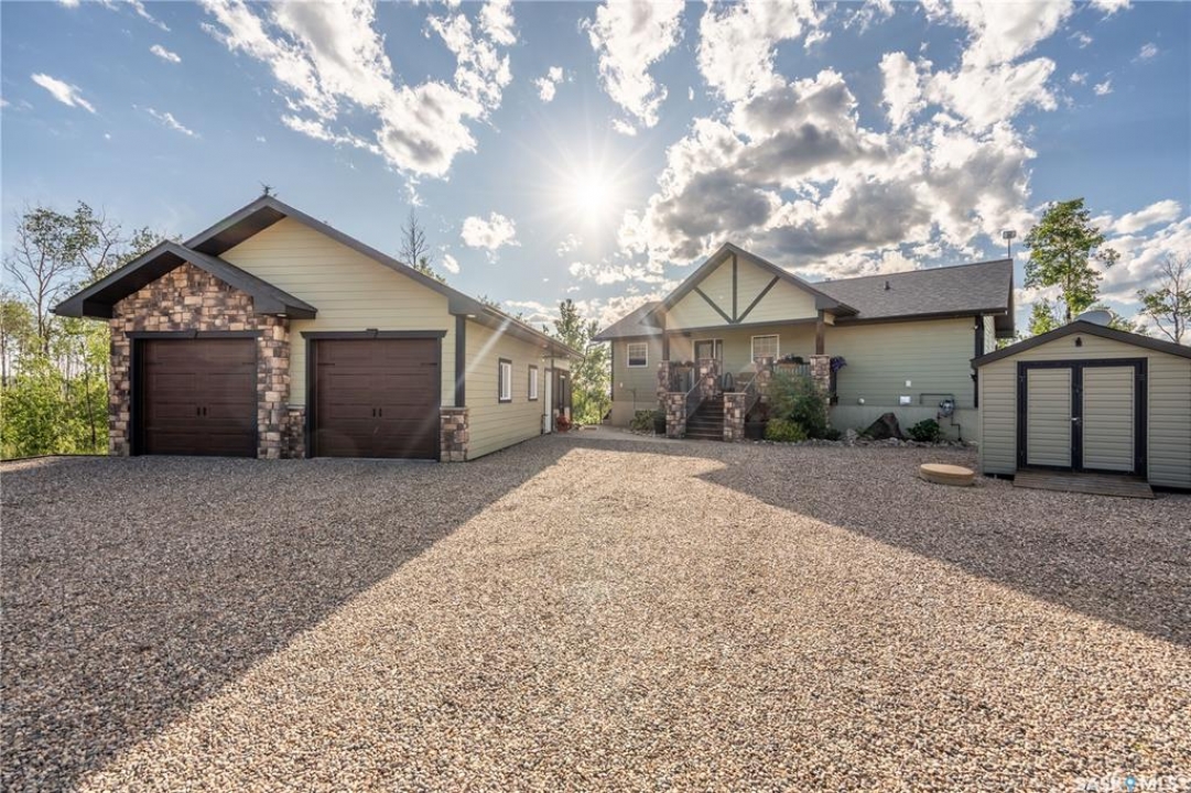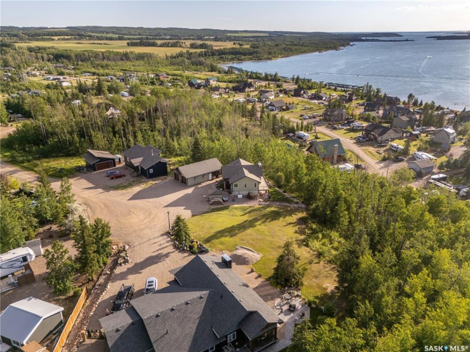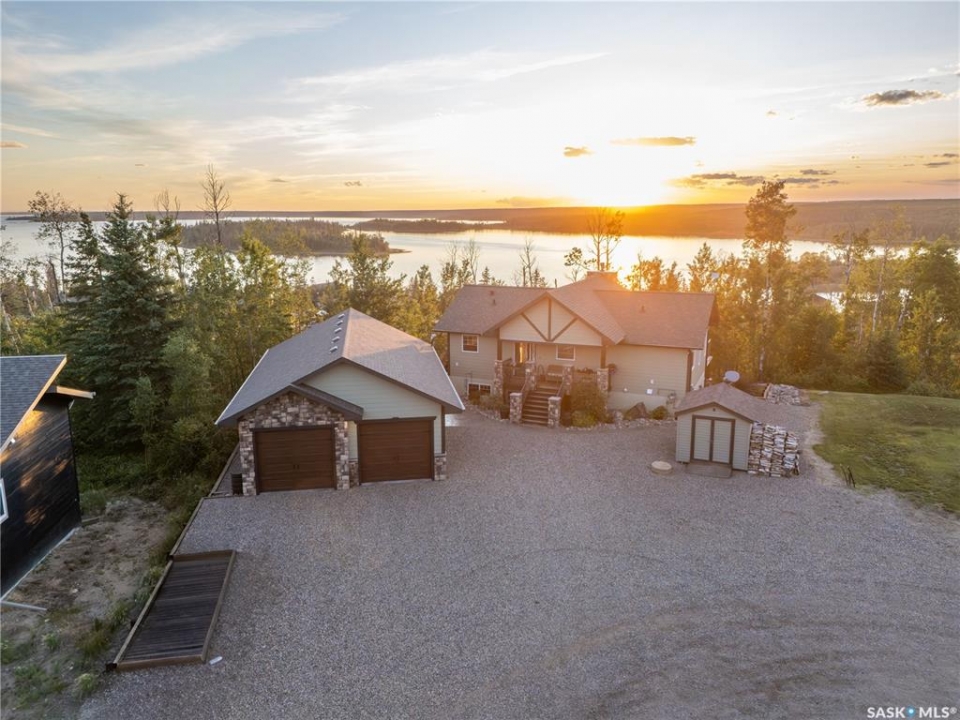 Luxurious 2,200 sq. ft. year-round home in Laumans Landing at Lac des Îles Lake, offering panoramic lake views and a bright open-concept layout. This exquisite 4-bedroom, 3-bathroom residence features vaulted ceilings, vinyl plank flooring throughout, a gourmet kitchen with a spacious butler's pantry, and a natural gas fireplace. The main-level primary suite includes a spa-like ensuite, while the fully developed walkout basement offers a private entrance, three additional bedrooms, a full bathroom, a comfortable family room, heated floors throughout, and ample storage. Year-round comfort is ensured with hot water on demand (supplied by the subdivision's reverse osmosis system), air conditioning, and a 15 kW auto-transfer Generac generator. Outdoor living shines with a 12' x 24' screened-in area with electrical and water, overlooking a seating area with a built-in rock fireplace, plus over 500 sq. ft. of Duradek decking. Built to last with Hardie Board siding and 50-year Malarkey shingles, the property also includes a 24' x 30' detached garage and storage shed, with the adjacent lot available for added privacy. Enjoy easy access to the boat launch and community playground, just 5 minutes from Northern Meadows 18-hole Golf Course, all within Meadow Lake Provincial Park—ideal for fishing Northern Pike, Walleye, Yellow Perch, and Whitefish. Conveniently located approximately 2 hours north of Lloydminster, 4 hours north of Saskatoon, and 3 hours and 45 minutes northeast of Edmonton.