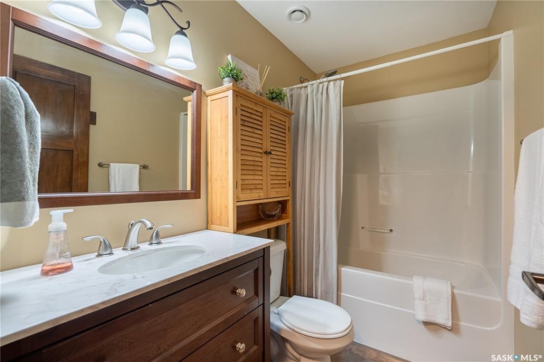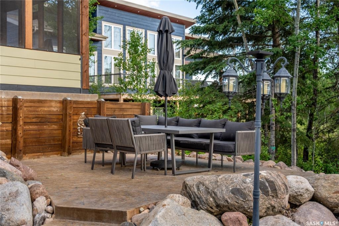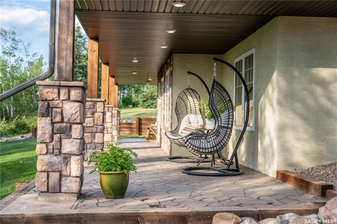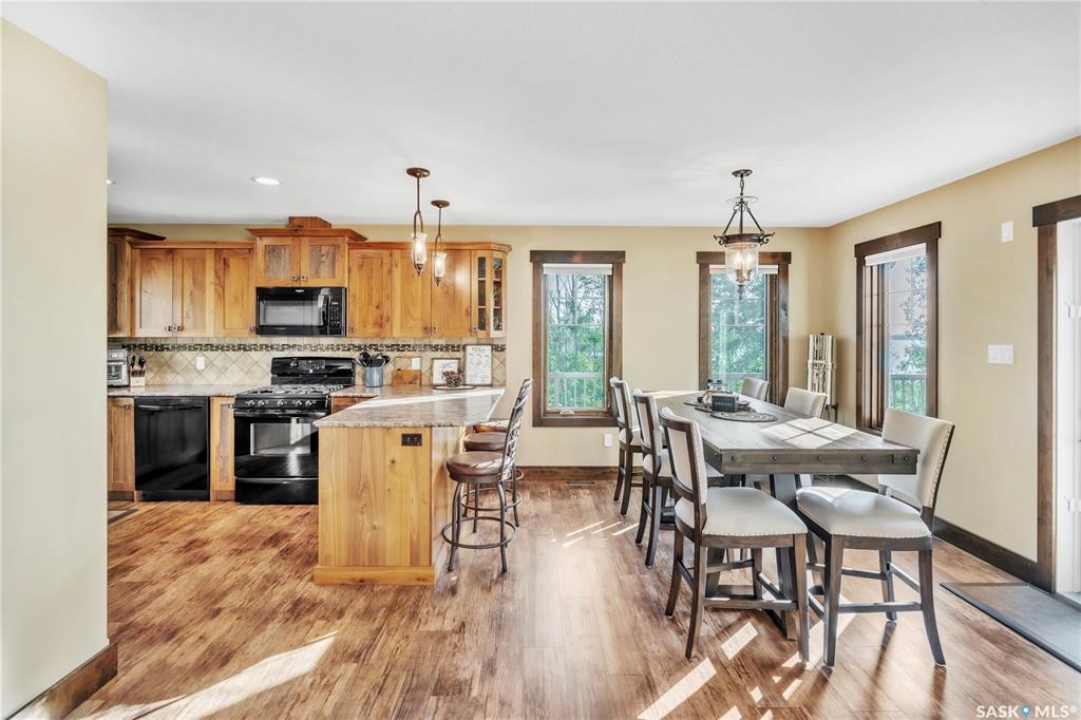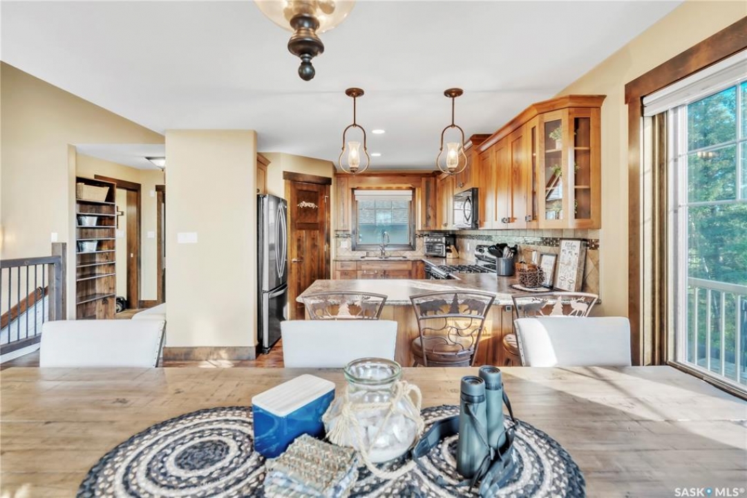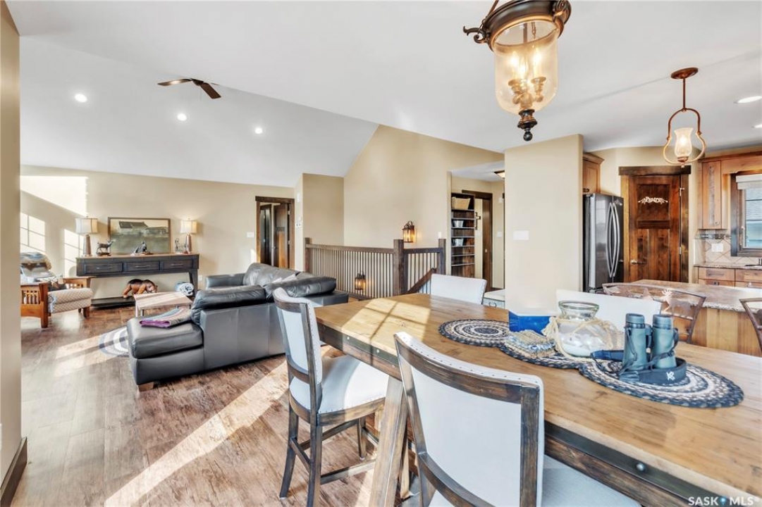 Luxurious 2,200 sq. ft. year-round home in Laumans Landing at Lac des Îles Lake, offering panoramic lake views and a bright open-concept layout. This exquisite 4-bedroom, 3-bathroom residence features vaulted ceilings, vinyl plank flooring throughout, a gourmet kitchen with a spacious butler's pantry, and a natural gas fireplace. The main-level primary suite includes a spa-like ensuite, while the fully developed walkout basement offers a private entrance, three additional bedrooms, a full bathroom, a comfortable family room, heated floors throughout, and ample storage. Year-round comfort is ensured with hot water on demand (supplied by the subdivision's reverse osmosis system), air conditioning, and a 15 kW auto-transfer Generac generator. Outdoor living shines with a 12' x 24' screened-in area with electrical and water, overlooking a seating area with a built-in rock fireplace, plus over 500 sq. ft. of Duradek decking. Built to last with Hardie Board siding and 50-year Malarkey shingles, the property also includes a 24' x 30' detached garage and storage shed, with the adjacent lot available for added privacy. Enjoy easy access to the boat launch and community playground, just 5 minutes from Northern Meadows 18-hole Golf Course, all within Meadow Lake Provincial Park—ideal for fishing Northern Pike, Walleye, Yellow Perch, and Whitefish. Conveniently located approximately 2 hours north of Lloydminster, 4 hours north of Saskatoon, and 3 hours and 45 minutes northeast of Edmonton.