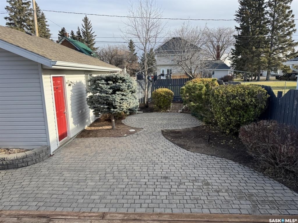 Beautifully updated 3 bedroom, 2 bathroom home in Wilkie with an incredible, low-maintenance backyard. Offering 1,488 sq. ft. on the main level plus a finished basement, this well-cared-for home features a spacious living room with gas fireplace and garden doors to a deck overlooking the professionally landscaped, fully fenced yard with cobblestone patio, firepit area, shrubs, trees, and perennials—no lawn to cut! The updated kitchen offers quality cabinetry, newer countertops, pantry, lunch counter, and opens to a large dining area. Two bedrooms, an updated full bathroom, and a convenient laundry/mud room with backyard access complete the main level. The basement includes a family room with gas fireplace, additional bedroom, 3-piece bath, and den/storage room. Extras include central air, underground sprinklers with drip system, water softener, � some newer windows added in 2022, and a 24' x 24' double detached garage built in 2000 with new shingles in 2020. Appliances included.