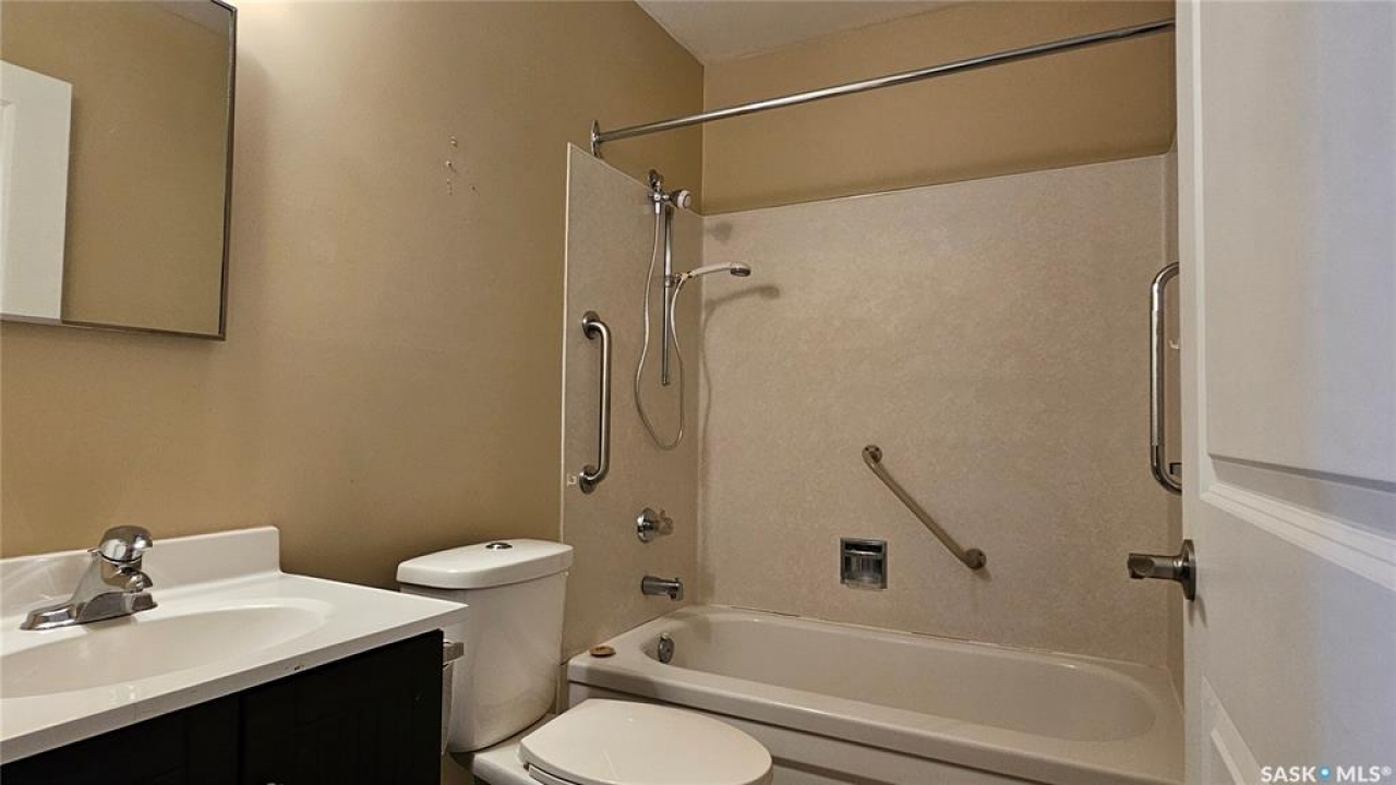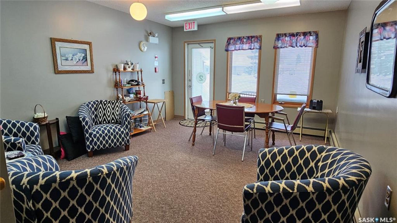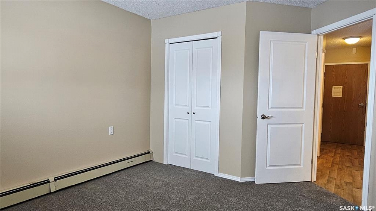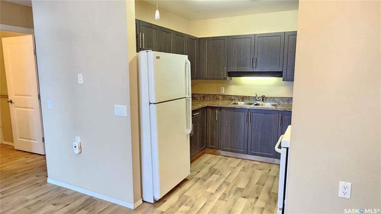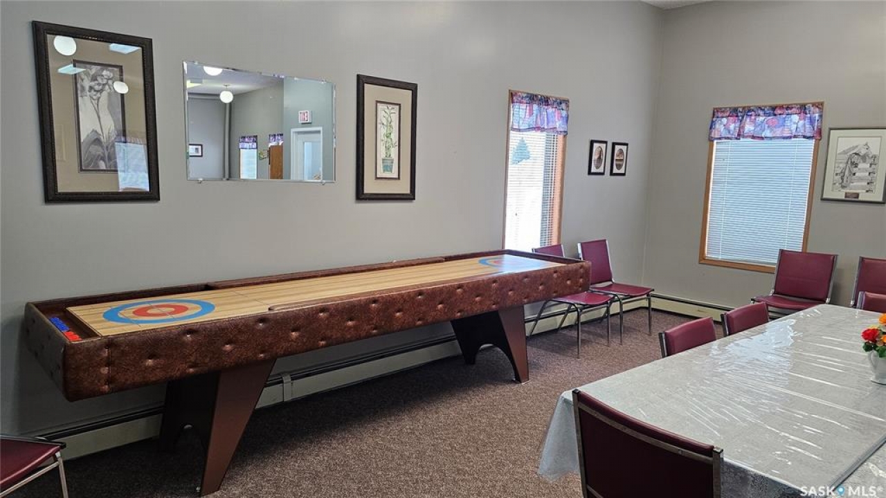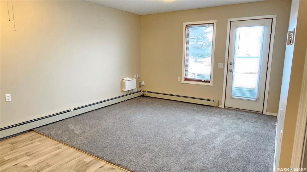 #103 Kinsmen Court, Humboldt. Affordable 55+ condo offering 595 sq. ft. of comfortable, low-maintenance living. This east-facing 1-bedroom, 1-bath unit overlooks the courtyard and is in great condition with new carpet and an updated kitchen. Functional layout includes a 4-piece bathroom and a convenient in-suite storage room. The building is wheelchair accessible and features two amenities rooms, complimentary shared laundry, and one electrified parking stall. Vacant and ready for quick possession. Ideal for downsizers or anyone seeking quiet, affordable living in a well-managed building.