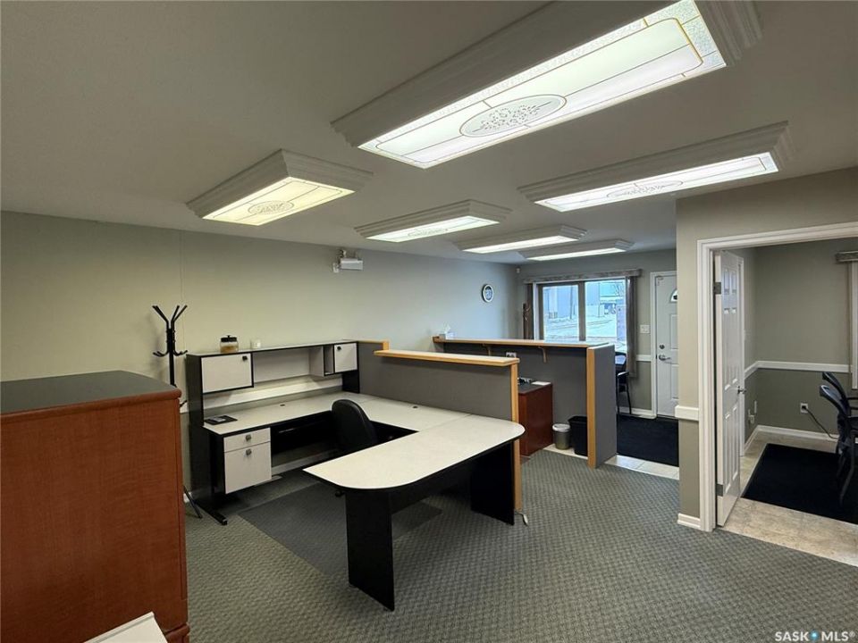 Available for immediate rent, this prime office space total 1358 sqft on 2 levels. Features 3 pvt offices spaces, 4 cubical office spaces, a reception area, kitchenette, 2 baths, comes with 7 parking stalls, and is suitable for a variety of office uses, making it a perfect opportunity for entry-level to mid-sized office complex. Previously operated as Accounting firm for many yrs. Exterior signage space on front pedestal available. Lease is gross lease inclusive of all operating costs and utilities includes snow removal + GST. Located in Martensville North commercial district.