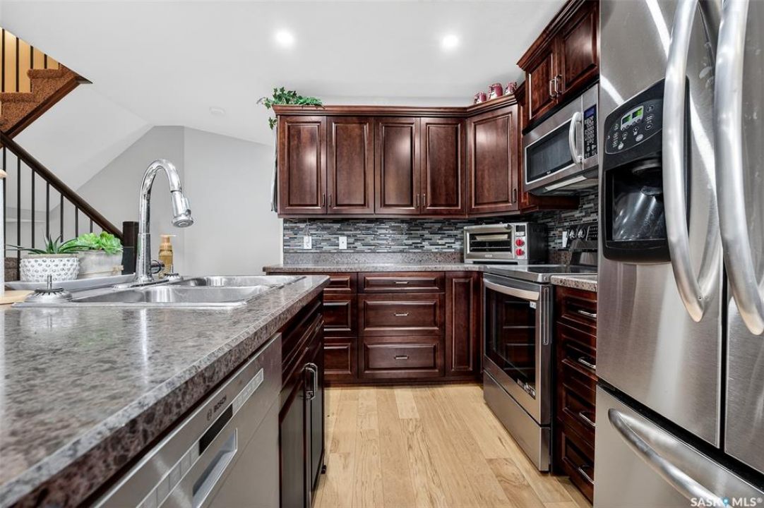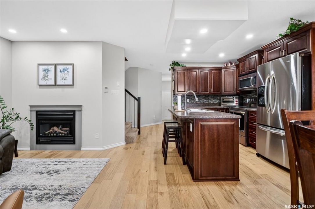 Beautiful 3-BEDROOM CONDO offers an exceptional blend of comfort and convenience, featuring 4 BATHROOMS (!) and impressive 9-foot ceilings accented by gorgeous luxury vinyl plank flooring throughout the main living area. The elegant foyer welcomes you into the home, leading to a stylish powder room and a sun-filled kitchen (includes all appliances - dishwasher & stove approx 1 year old) enhanced with sleek cordless window coverings and ample space for both everyday living and entertaining. The inviting living room is anchored by a cozy gas fireplace and opens onto a private, south-facing deck where you can relax or host guests while enjoying the convenience of a natural gas BBQ hookup. The upper level is highlighted by a serene primary retreat complete with a generous closet and roomy four-piece ENSUITE, offering a peaceful space to unwind. Downstairs, the FULLY FINISHED basement expands your living options with a versatile flex area ideal for a media room, home gym, or office, along with a den, additional storage, and a modern three-piece bathroom. Practical luxury continues with central air conditioning to ensure year-round comfort, as well as an attached single-car garage. Thoughtfully managed by a proactive ownership group, the condominium fees of $350 per month include water, sewer, snow removal, and professional maintenance of the green spaces. With guest parking and nearby transit routes providing easy access to shopping and employment hubs, this refined home offers both upscale living and everyday convenience.