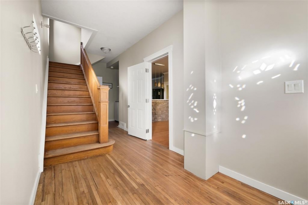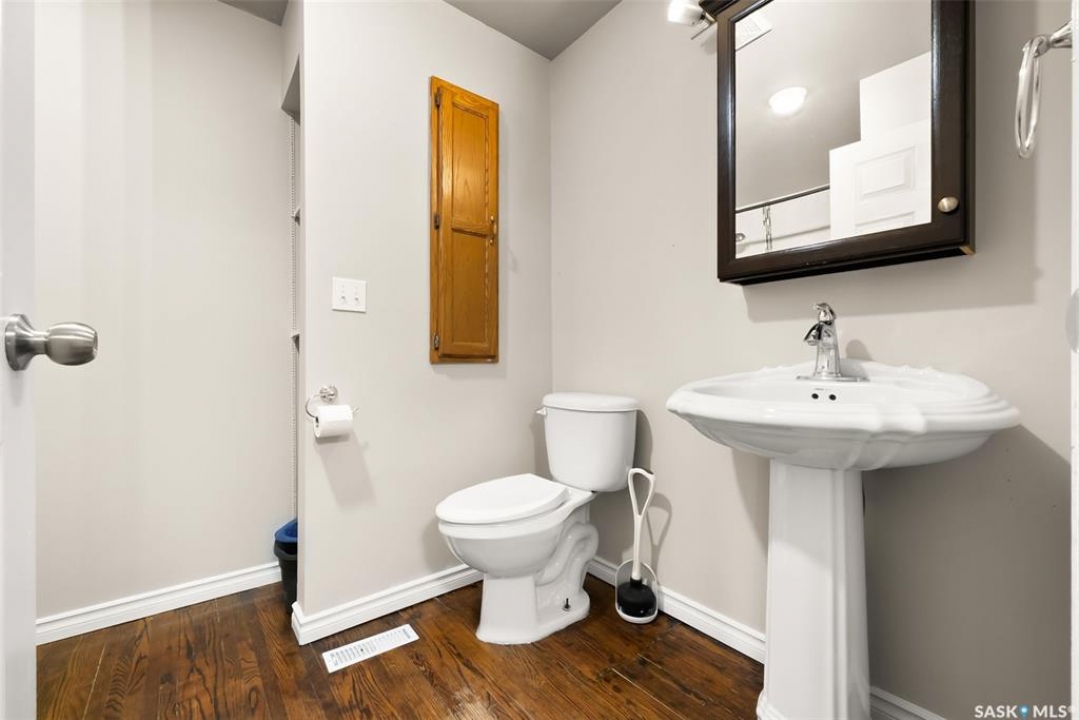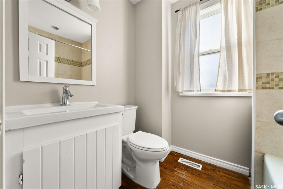 Welcome to 1230 Victoria Avenue, a spacious and well-maintained home offering modern upgrades while retaining timeless character. Located in a convenient central area, this property combines functionality, comfort, and value—ideal for families, first-time buyers, or investors seeking a move-in-ready opportunity. Inside, you'll find a bright open-concept main floor featuring hardwood and laminate flooring, high ceilings and large windows that bring in abundant natural light. The main living space flows into a generous dining area and an impressive kitchen with brown cabinetry, tile backsplash, and modern appliances. The home offers three bedrooms, including a comfortable primary suite with 2-piece ensuite and well sized closet. The bathroom features tiled walls with accent detailing and updated fixtures for a clean, modern look. The laundry with shelving provides added convenience, while the full basement—currently undeveloped—offers ample space for storage or future development. The property sits on a mature lot with a single detached garage, providing secure parking and additional storage space. With over 1,500 sq. ft. of living space, fresh paint, and move-in readiness, this home offers outstanding value in a location close to downtown amenities, schools, and transit. Don't miss your chance to own this charming and versatile property.