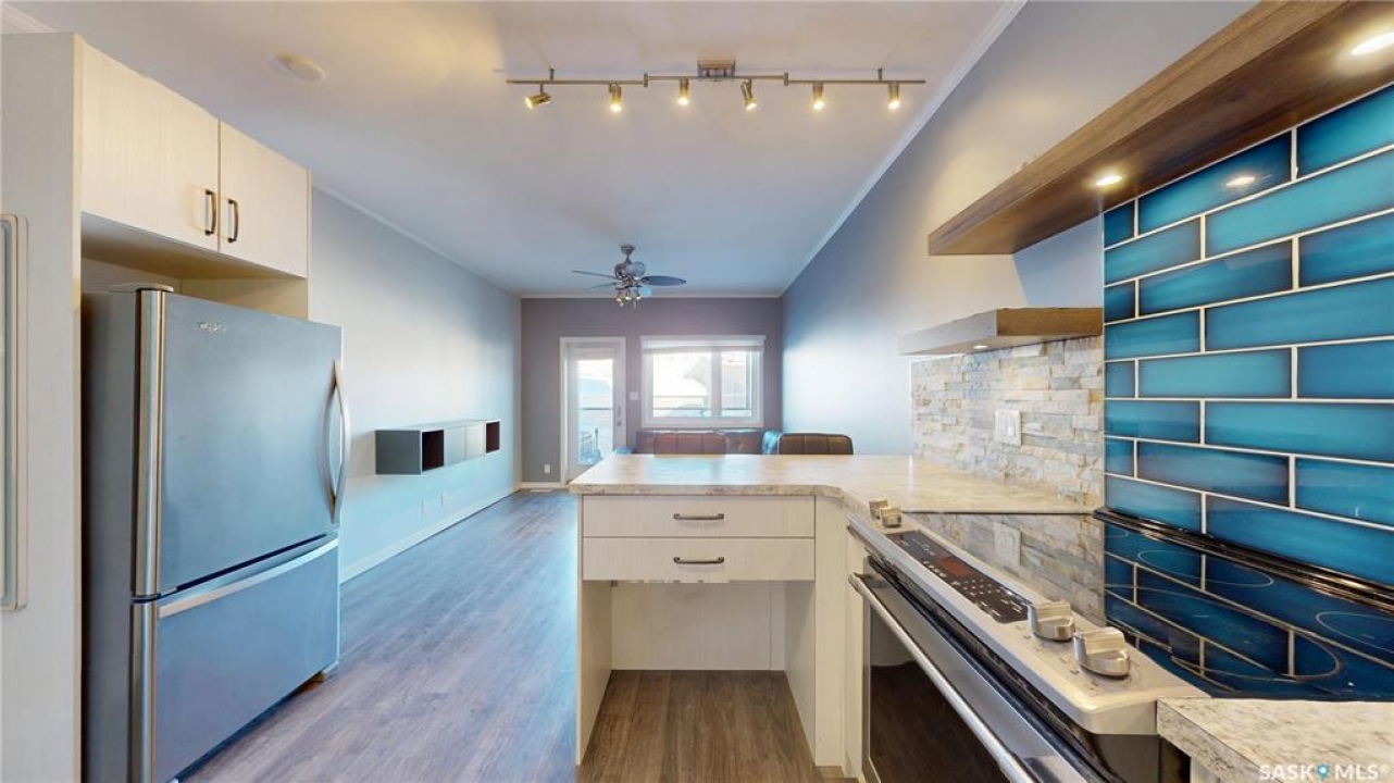 Awesome pet-friendly condo with 2 bedrooms, 2 full bathrooms, and 2 parking spaces ready for immediate possession! Please view the Matterport 3D virtual tour in this listing. You'll love the stylish kitchen with floating shelves, stone wall tile, and sleek stainless steel appliances. The open-concept kitchen, dining area, and living room have an airy feel with nine-foot ceilings, a ceiling fan, and durable laminate flooring. A garden door leads to the balcony with a glass railing, where you can relax with your morning coffee and enjoy the fresh air. In-suite laundry, forced air heating, and central air conditioning are more desirable amenities. The primary bedroom has a 3pc ensuite with a shower and a walk-in closet. This ground-floor unit is located right next to a building exit hallway, leaving you with one less adjacent neighbour, and the surface parking stall is right outside the door for added convenience. The heated underground parking stall will keep your car warm through the winter, and additional storage is located in front of the underground stall. The kitchen and the main bathroom feature universal design and accessibility enhancements, offering comfortable functionality for all users. A professional home inspection report and a Property Condition Disclosure Statement (PCDS) are available for review, giving buyers the opportunity to make a more informed offer. Call now for your own private viewing.