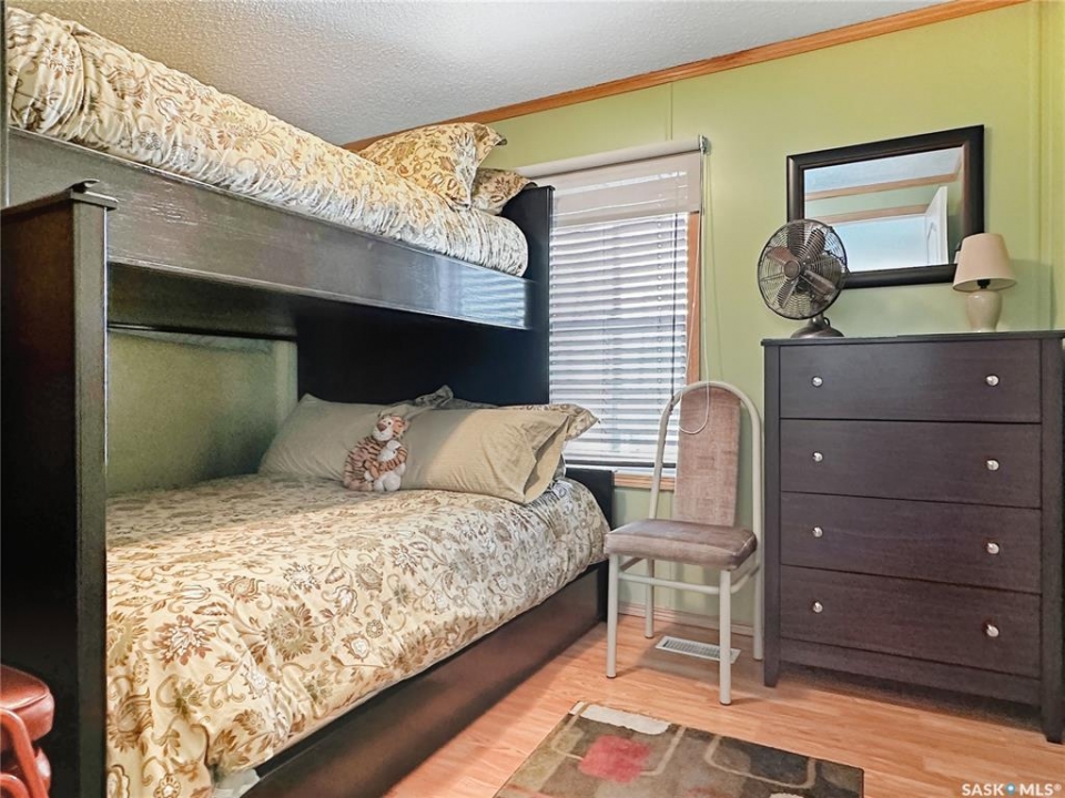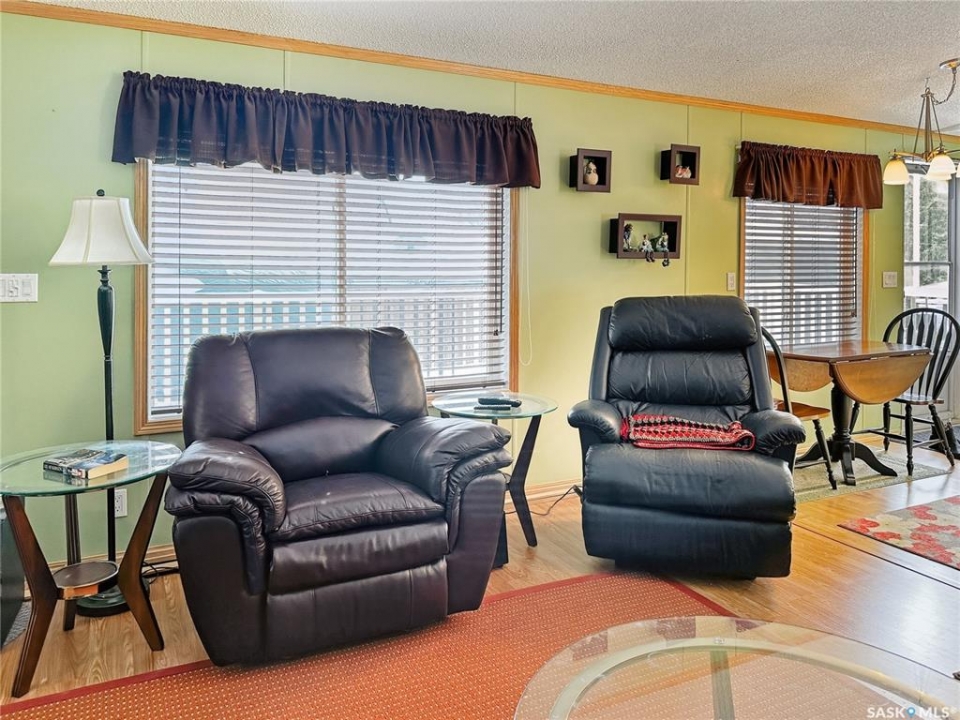 Year-Round Lake Life at Bayview Heights! Discover your perfect escape in Battleford's Provincial Park—just steps from the public beach! This fully renovated, turn-key property offers all the perks of lake living without the hassle of waterfront upkeep. Inside, you'll find 2 cozy bedrooms, a full bathroom, laundry, and a beautiful solid oak kitchen overlooking the living room. Built with 2x6 construction, this home is well-insulated for year-round comfort and low utility costs. Everything you need is included—furnishings, TVs, dishes, cutlery, and more. Just bring your clothes and move in! The detached, heated, and insulated single garage adds extra convenience and is being upgraded with a 2-piece bath. The fully fenced yard is private and low maintenance, featuring a composite deck (no sanding or staining!), a wood shed, and a charming firepit area—perfect for relaxing evenings. A massive driveway offers plenty of parking, including space for RVs. Plus, there's a 220V plug and rear-lot RV dump for added convenience. Enjoy all the amenities of the park: a stunning beach, playground, and the nearby Jackfish Lodge with its 18-hole golf course and fantastic restaurant. Whether you're looking for a summer retreat or a winter getaway, this home has it all. Don't miss your chance to own a slice of paradise at Jackfish Lake—call today for a viewing!