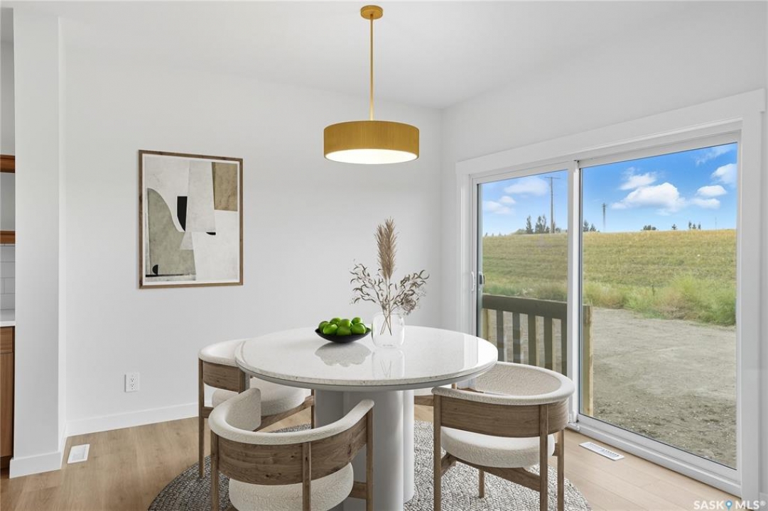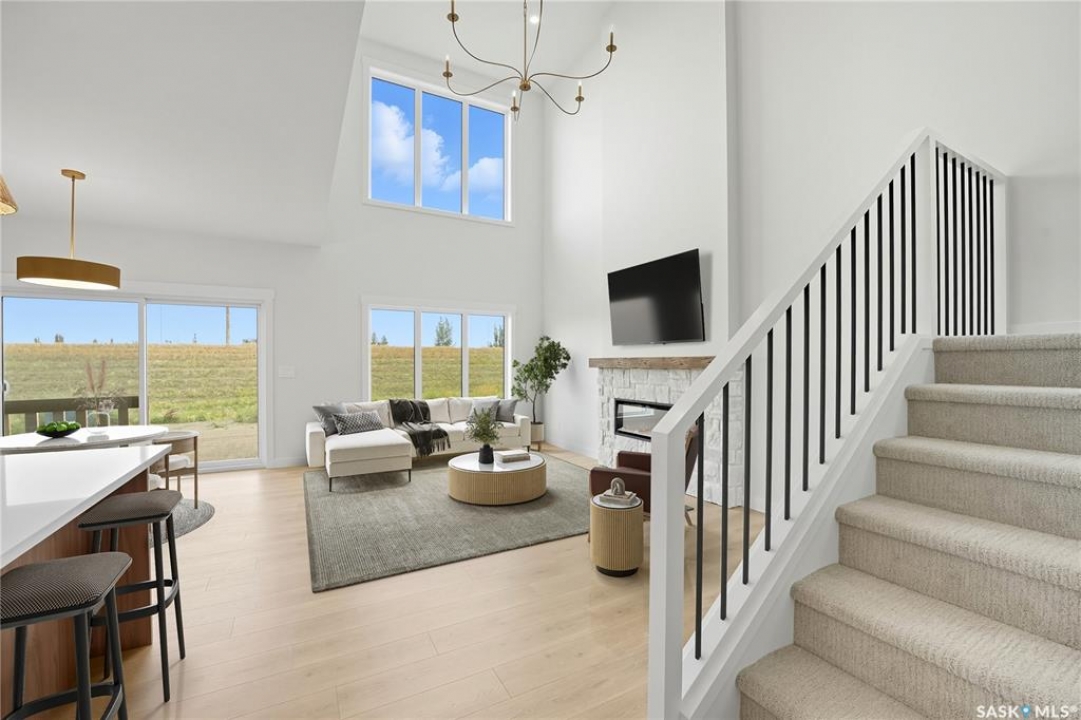 Welcome to the "Summit" Edgewater's newest plan in the desirable neighbourhood of Brighton. This 2 storey is sure to impress. Entering from the drywalled and insulated garage, you step into a mud room with a bench and hooks to store your outerwear. You continue through the walk through pantry into the spacious kitchen has lots of cabinets, quartz countertops and beautiful tiled backsplash. The island is 7' long with an eating ledge. Over sized patio doors in dining room. The living room has 18' ceilings, giving the home a very large presence and large windows in the living room create a spacious light filled area. The fireplace centers the room and finishes it nicely. On the second floor, the Primary bedroom includes a feature wall, the ensuite has double sinks in the vanity and a beautifully tiled shower and a stand alone tub. You will find 2 secondary bedrooms and a 4 piece bath as well. 2nd floor laundry completes this floor. All Pictures may not be exact representations of the home, to be used for reference purposes only. Errors and omissions excluded. Prices, plans, specifications subject to change without notice. All Edgewater homes are covered under the Saskatchewan New Home Warranty program. PST & GST included with rebate to builder.