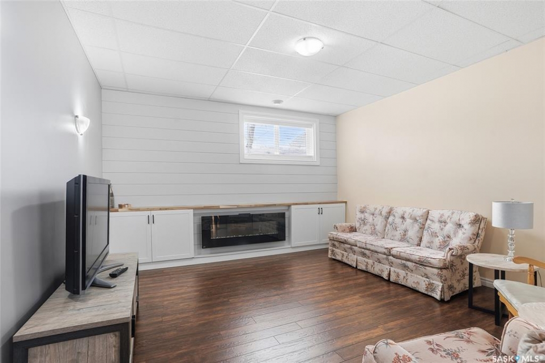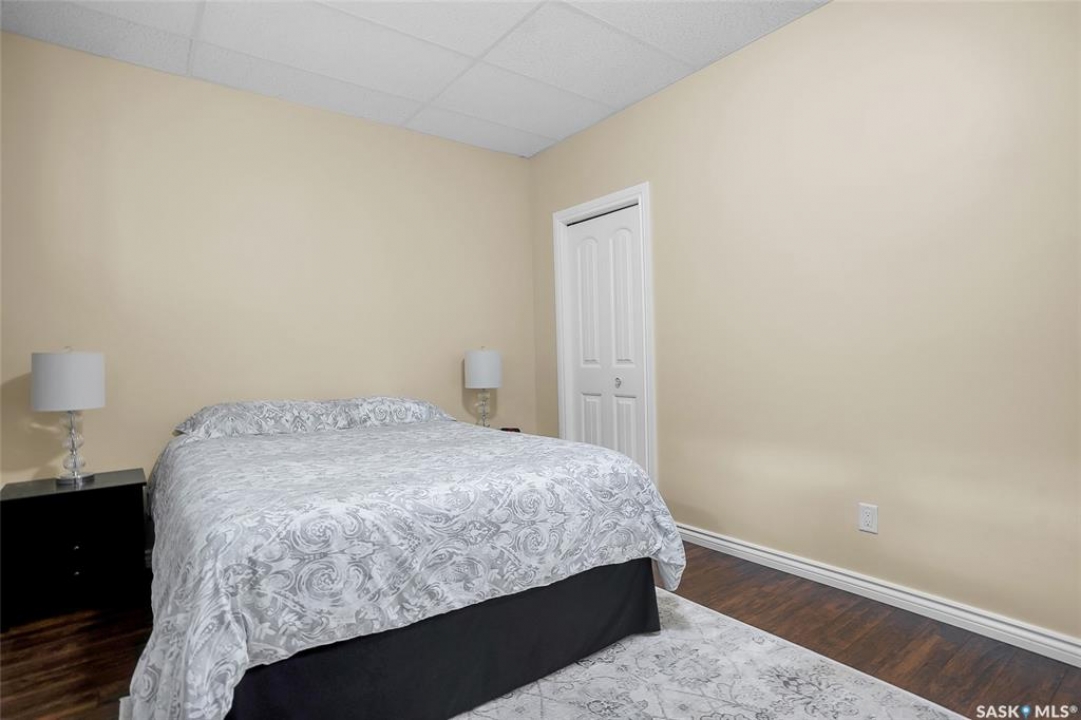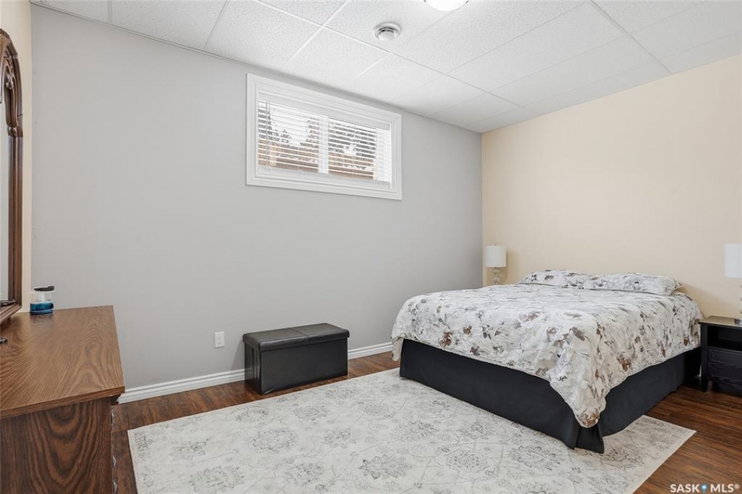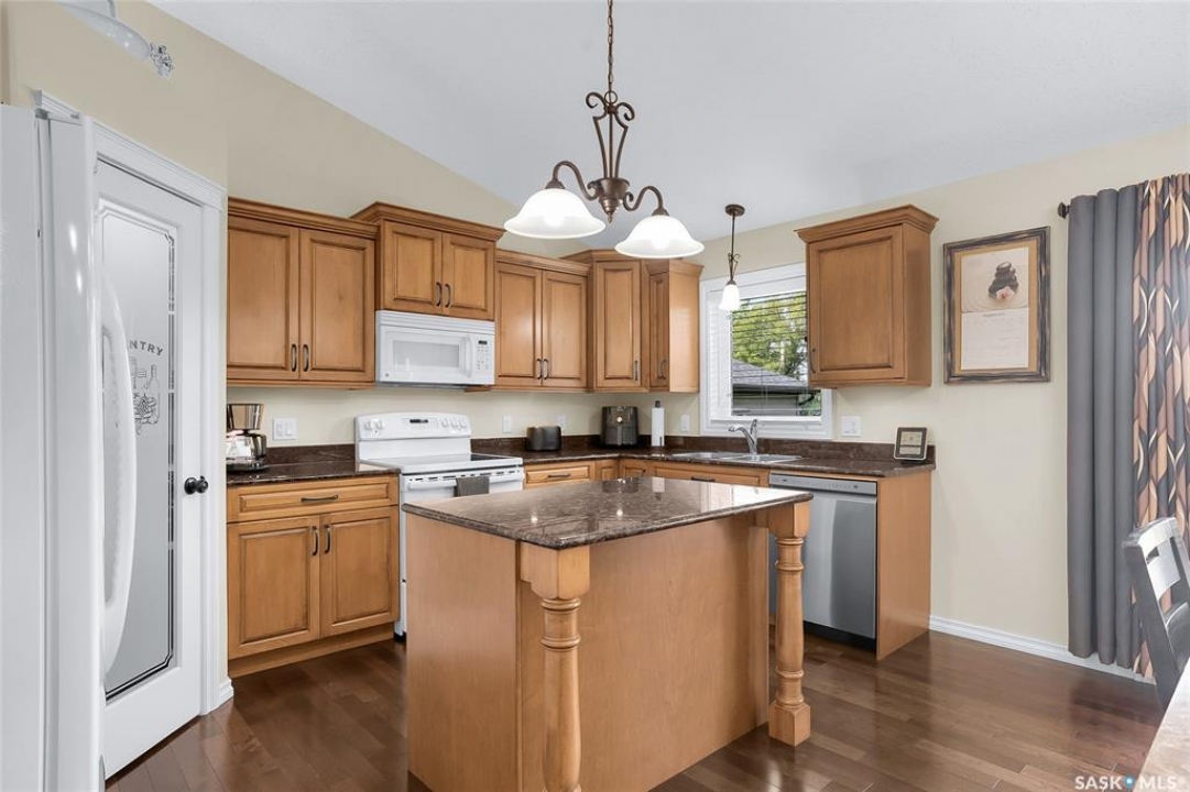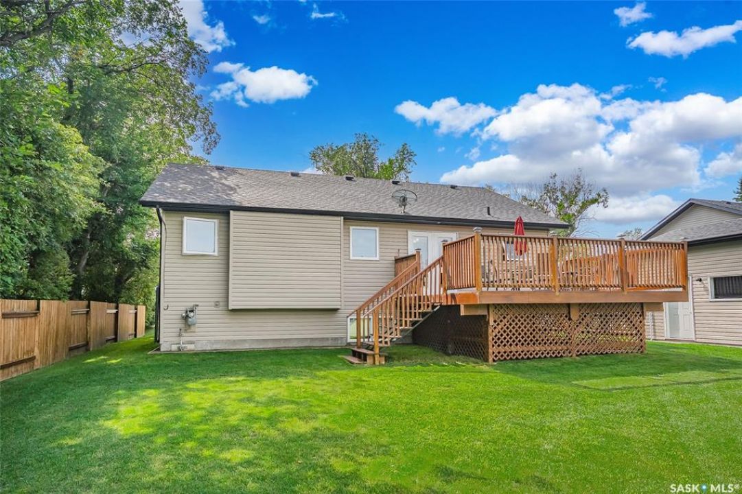 Stunning Executive Home Just 30 Minutes to Saskatoon! Discover luxury living in this absolutely gorgeous home where quality and craftsmanship are evident from the moment you arrive. Nestled on an oversized, fully landscaped 81.5 x 200-foot lot offering exceptional privacy, this property is a beauty. Step inside to vaulted ceilings and an open floor plan that seamlessly blends elegant living with everyday comfort. Beautiful hardwood floors flow throughout, while the kitchen showcases granite countertops and rich maple cabinetry. The thoughtfully designed layout includes three spacious bedrooms, with the primary suite featuring a 4-piece ensuite and generous walk-in closet. The open-concept basement expands your living space dramatically, boasting impressive 9-foot ceilings making you feel like you are not in a basement! Here you will find a games room, family room with electric fireplace, an oversized bedroom, large storage room, 3-piece bathroom, and laundry room with additional storage solutions. Entertain in style on the oversized deck, perfect for gatherings and quiet relaxation. Vehicle and storage enthusiasts will appreciate the exceptional 24x24/26-foot attached garage with 10-foot ceilings and 8-foot doors, PLUS a fully insulated 16x30-foot detached garage. New shingles 2025. Conveniently located near the school, park, and post office, this home offers the perfect blend of peaceful country living with easy access to urban amenities. This is more than a house, it's a lifestyle.