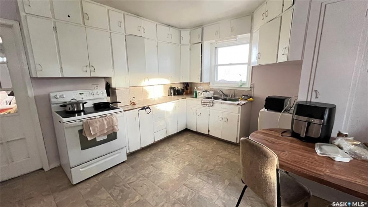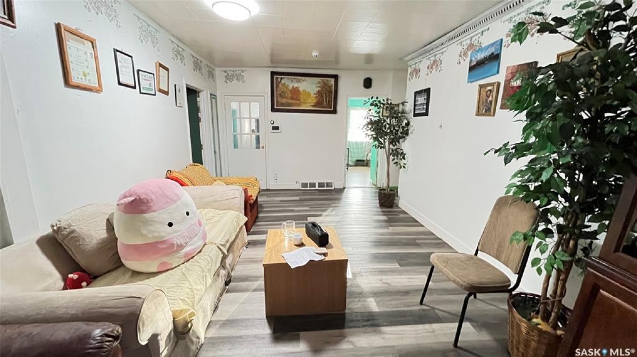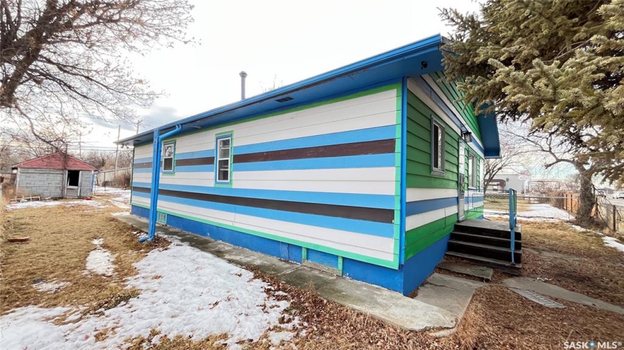 This delightful 4-bedroom, 1-bathroom home in Maple Creek's commercial district is sure to pleasantly surprise you. With updated floors and a spacious kitchen currently housing the laundry, you'll find plenty of potential to reimagine the space—whether by creating a dedicated laundry room or expanding the bathroom to include laundry facilities. Easy access to plumbing from the approximate 6.5 foot crawl space another bathroom could be added as well. The generous yard features two garages that, with some TLC, could become great assets. Zoned commercial yet grandfathered as a residential non-conforming property, this home offers unique flexibility and is perfectly situated just steps from the grocery store and local shopping amenities. Stop paying rent and buy this affordable starter home or open your own business with 21 highway exposure. Opportunities are endless. Call for a tour.