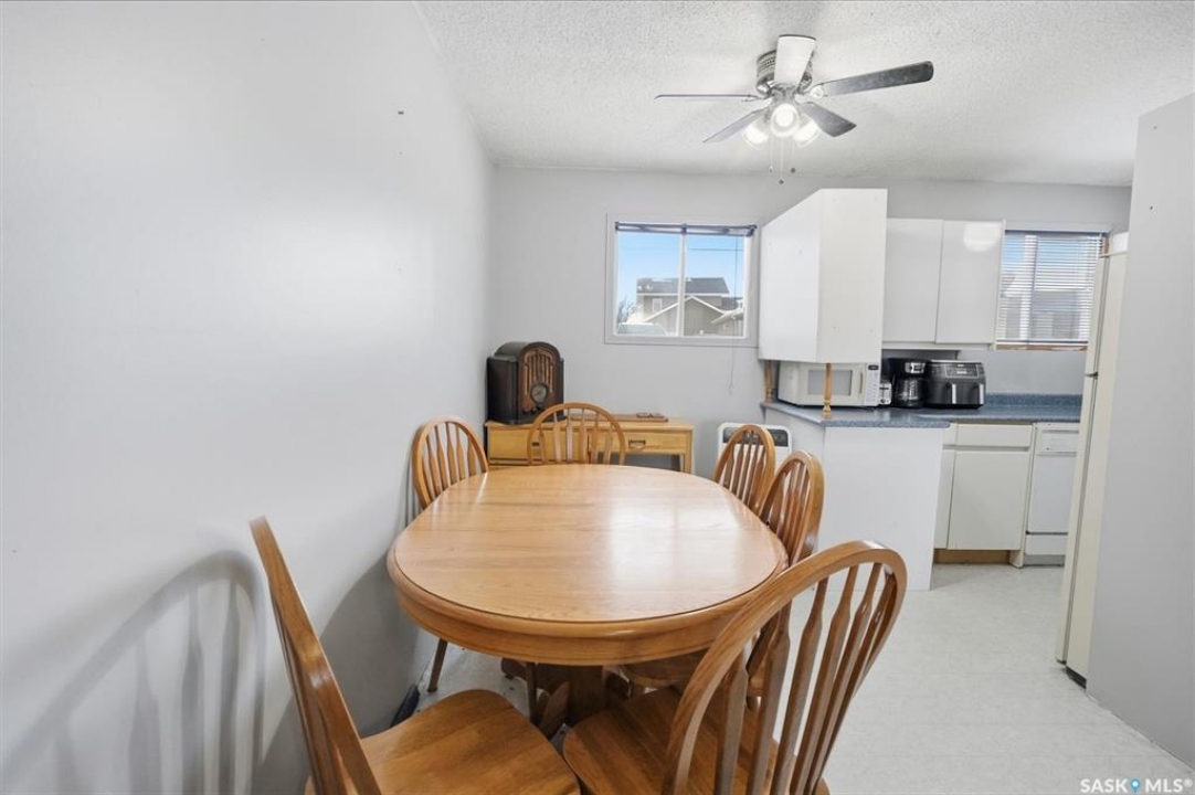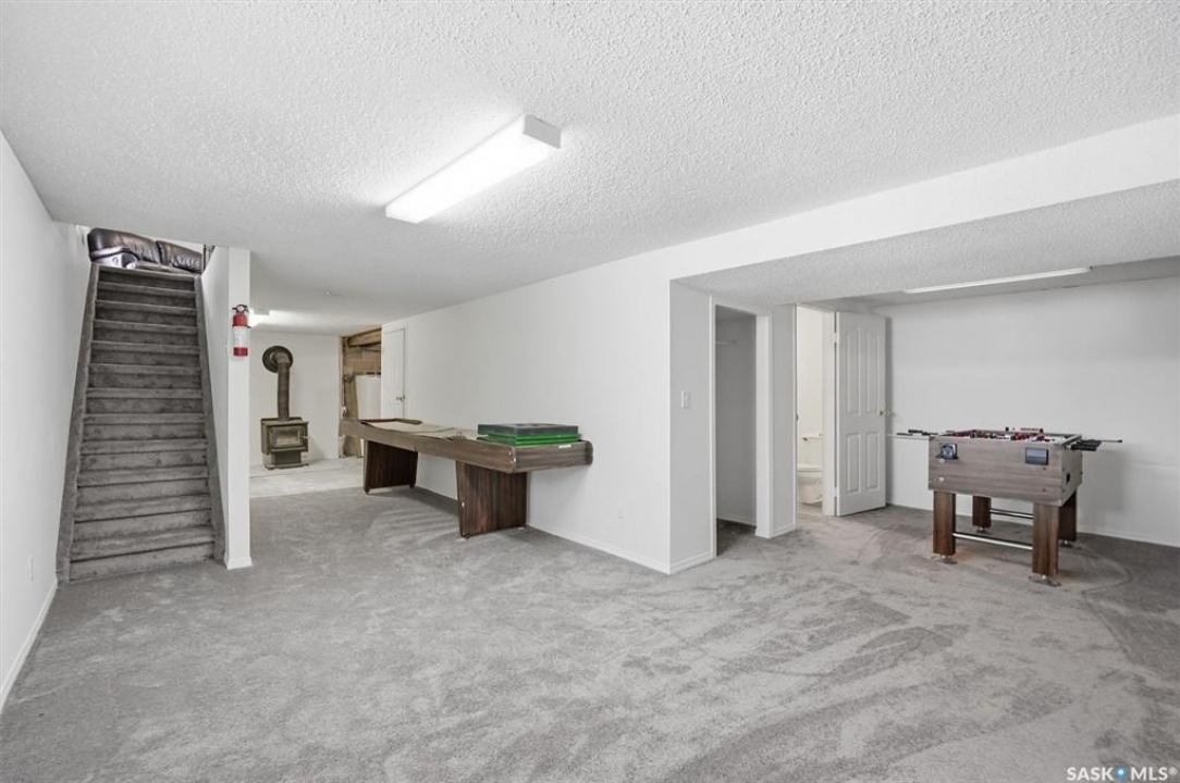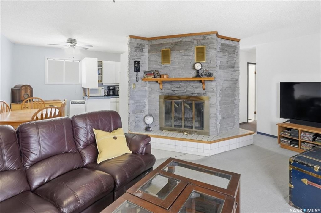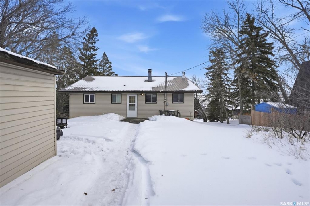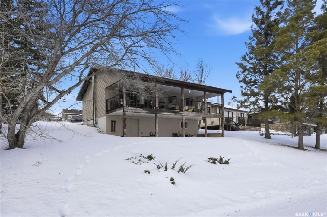 Welcome to 48 Procter Drive, located in the charming Resort Village of Shields at Blackstrap. This beautiful four-season home offers stunning lake views from its spacious 36' x 11' covered balcony, complete with updated railing — the perfect spot to relax or entertain. Inside, the main level features three comfortable bedrooms and a full four-piece bathroom. The cozy living room boasts a wood-burning fireplace and patio doors leading out to the deck, creating a warm and inviting atmosphere. The galley-style kitchen offers ample cabinetry and includes all appliances for your convenience. The lower level features a walkout with double doors to a covered patio, brand new carpet in the rec room, and an updated two-piece bathroom with a shower rough-in for future completion. The large utility room/laundry room has tons of room for additional storage. Recent upgrades include a new furnace (2025) and hot water heater (2023), making this home move-in ready and efficiently updated. Please note: the wood stove in the lower level is not included.