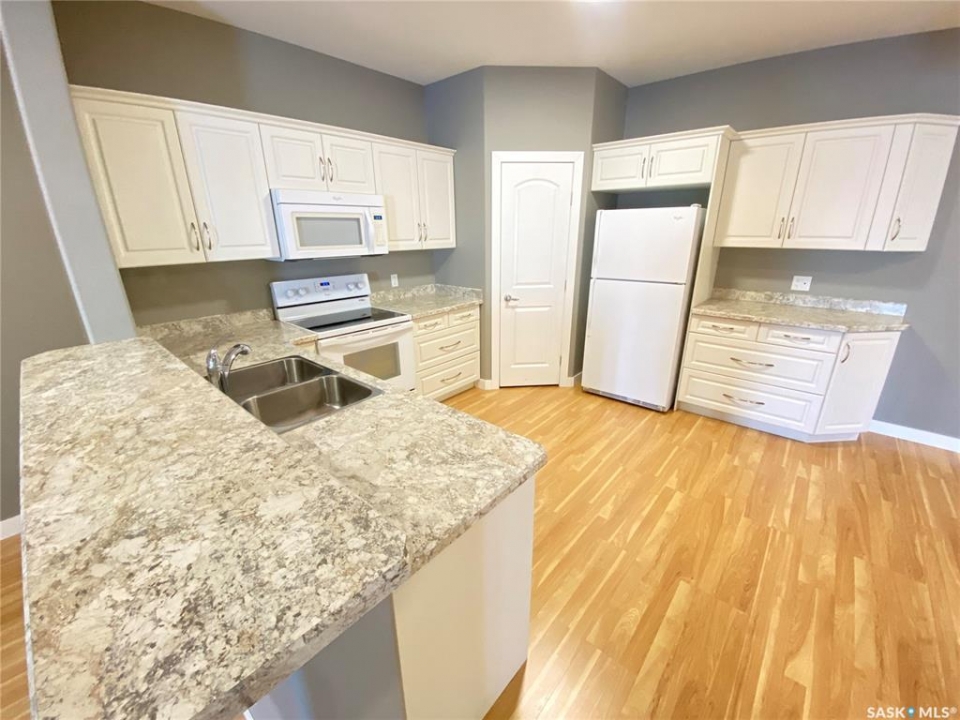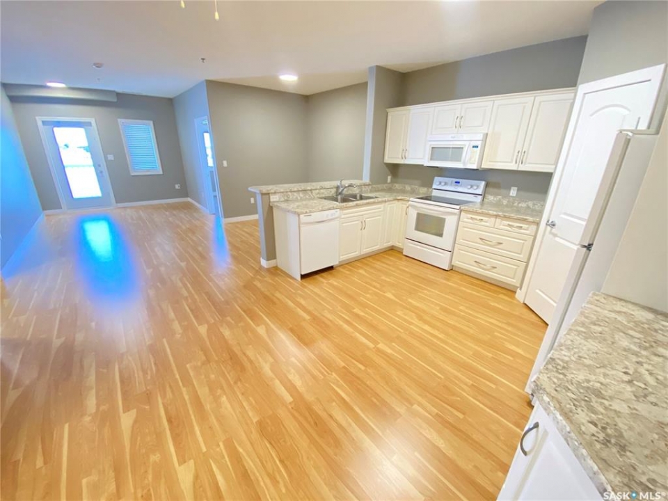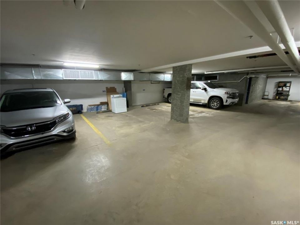 Welcome to the Abbey and unit 303. This 947 sq ft condominium is situated on the third floor with an east facing balcony which gives you an unobstructed view of the city. The open concept design features an abundance of cabinets and countertops along with a walk-in pantry space. Sit up island along with a full line up of appliances including built in dishwasher. The main bedroom allows for king-size furniture and is adjacent to your 4-piece main bath. The secondary bedroom or a great home office space is across the living room area. In suite laundry room and gives you extra storage space. Central air conditioning along with underground heated parking. Condominium fees are $465 a month and include your heat, water, sewer, maintenance exterior along with snow, lawn care, common insurance, and reserve fund. The property received upgraded laminate flooring and is in pristine condition and ready for immediate possession. Enjoy the rooftop terrace in the summer overlooking the city landscape. A quiet, secure building. Make it yours today!