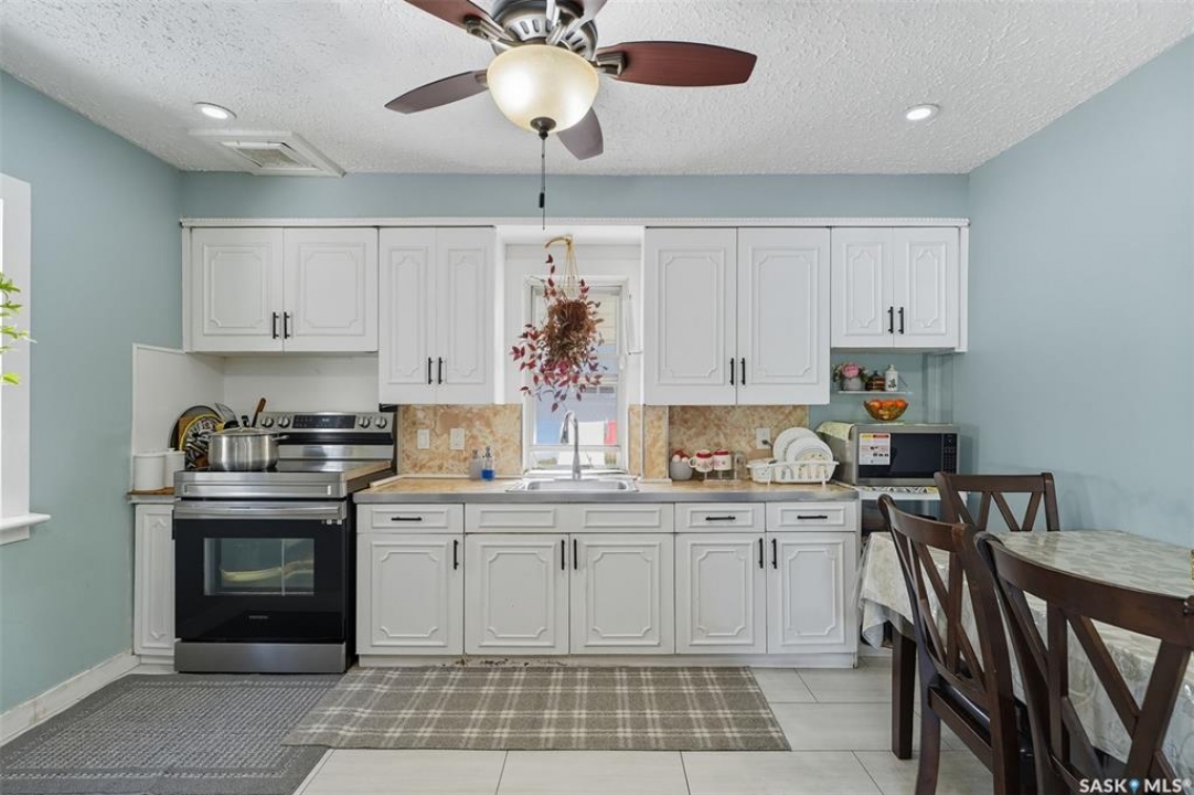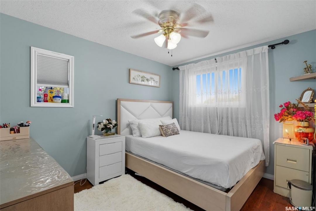 Bright, well-kept 1969 bungalow on a 50×130 corner lot in Meadowgreen—~2-min walk to the Dawah & Community Centre, steps to 22nd St transit/amenities, and an easy stroll to St. Paul's Hospital. Main level offers 3 bedrooms, a gorgeous eat-in kitchen (tile flooring, ceiling fan, LED pot lights, long run of cabinetry), a comfortable living room, and an updated 4-pc bath with tiled surround/niche (see photos). Bedrooms show warm wood tones; vinyl plank runs through most of the main for easy care. The enclosed back porch adds year-round utility—cold-room storage in winter, gear space in summer. Finished lower level features a bedroom + windowed den (use as office/flex), a bathroom with in-bath laundry (see photos), and extra storage. Outside, enjoy a fully fenced, extra-deep backyard with rear gate access and a single detached garage with opener and space for a workbench. Mature city trees are beyond the rear fence—so you get privacy and shade without giving up usable yard area. Possession March 2025.