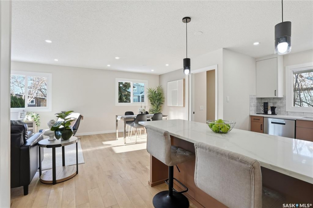 Extensively and professionally renovated, this stunning Brevoort Park home is truly move-in ready. Set in one of Saskatoon's most sought-after neighbourhoods, you'll love the convenience of being close to schools, parks, Circle Drive, and the amenities of 8th Street. The main floor offers a bright, open, and functional layout featuring three generous bedrooms, a stylish and practical kitchen, and a beautifully sunlit living room that flows seamlessly into a spacious dining area. A modern five-piece bathroom completes this level. With a separate entrance, the lower level offers excellent flexibility and revenue potential. The thoughtfully designed non-conforming suite is ideal for extended family, a nanny suite, rental income, or Airbnb. It includes a brand-new kitchen, comfortable living and dining space, two bedrooms (one bedroom window may not meet current egress requirements), a three-piece bathroom, and a dedicated laundry area. A separate laundry and mechanical room serve the main floor. Upgrades are extensive and include: new flooring throughout, windows, furnace, central air conditioning, appliances (one set of laundry currently in use), bathrooms, paint, trim and baseboards, exterior paint, and new electrical and plumbing fixtures. Outside, enjoy a fully fenced yard complete with a fire-pit area and storage shed. The property also offers a three-car driveway, carport, rear alley access, and ample space to build a future double garage. A beautifully updated home in an exceptional location — perfect for families, investors, or those looking for flexible living options.