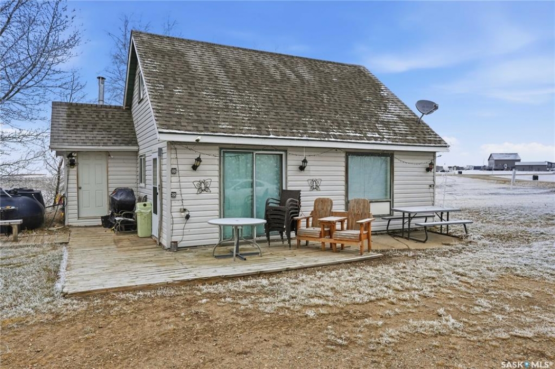 Experience the ultimate in lakeside living with this extraordinary four-season retreat, where architectural innovation meets breathtaking natural beauty. This unique 1 1/4 story home is defined by its striking panoramic arc, featuring a continuous span of large windows along the north and west elevations that frame stunning views of the water. This architectural masterpiece flows seamlessly through the den, living room, and master suite, while a massive 10-foot-wide covered and screened deck mirrors the curve outside, offering a protected sanctuary to enjoy the lake breeze and beach views. The main level welcomes you with a sun-drenched living room and a kitchen equipped with an abundance of cabinetry and pantry storage. This floor also hosts two spacious bedrooms, a flexible den, and a generous five-piece bathroom featuring a luxurious soaker tub with direct access from the master suite. For those seeking a quiet escape, the upstairs loft serves as a private sanctuary, complete with its own west-facing balcony—the perfect vantage point for watching the sunset. Built for longevity, the home features Insulated Concrete Form (ICF) construction for the full basement and main floor walls, providing superior energy efficiency. Comfort is guaranteed year-round with a gas boiler system providing cozy in-floor heat across all levels. The lower level offers immense potential, already featuring electrical and drywall work for two expansive recreation areas, an additional bedroom and funtional three piece bathroom. The expansive 22,000 sq. ft. lot offers incredible space for gardening and play, bordered by the lake and a public green space. This property also includes a separate guest house (appliances included), making it an ideal setup for visitors. Conveniently located just 15 minutes from K-12 schooling in Strasbourg and 25 minutes from Bulyea, this home is the perfect blend of robust construction and serene lakefront luxury.