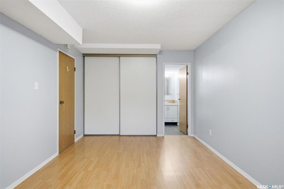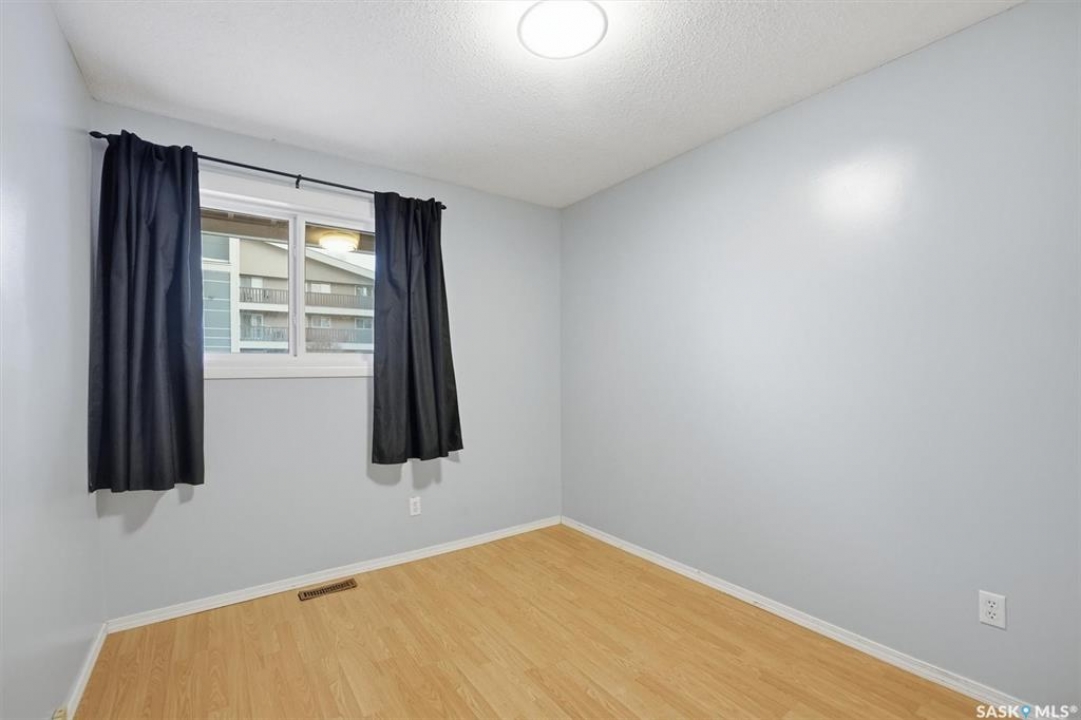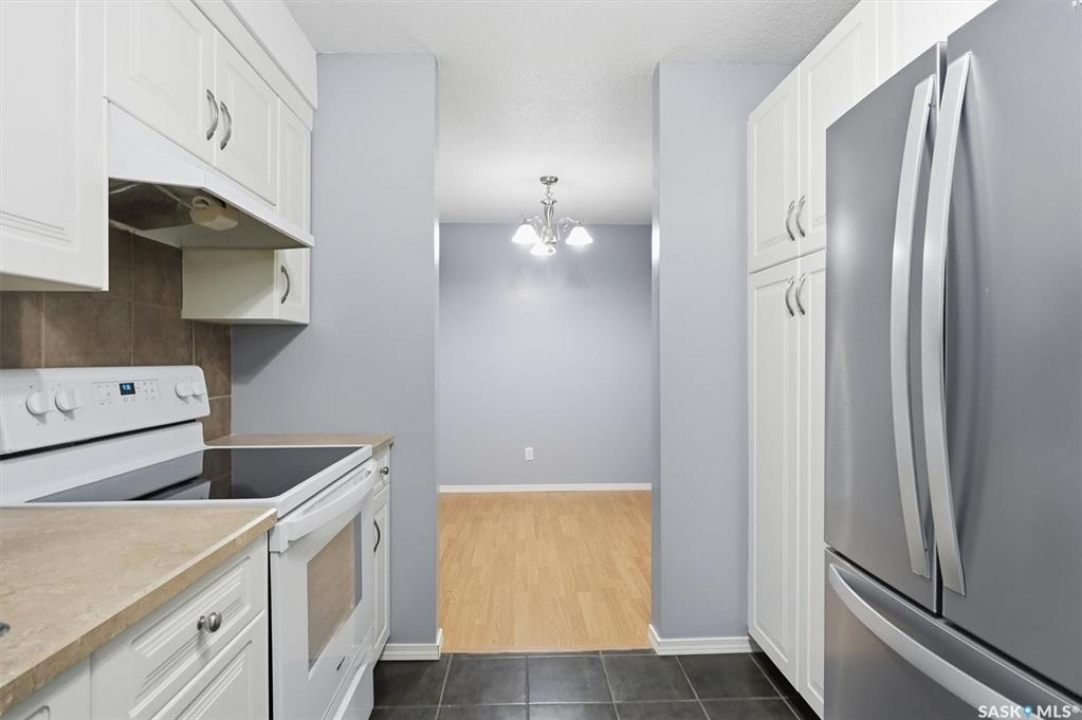 Spacious main-floor condo, offering a generous 1,313 square feet of beautifully maintained living space. From the moment you step inside, you will notice the seamless blend of comfort and modern updates that make this home truly move-in ready. The upgraded kitchen features sleek tile flooring and a full set of reliable appliances, including a fridge, stove, and dishwasher. Transitioning into the expansive family room, you are greeted by laminate flooring and a charming wood-burning fireplace. Large sliding doors open directly onto your private deck and patio area, extending your living space into the fresh air. The layout is thoughtfully designed with three spacious bedrooms, including a massive master suite that serves as a private retreat with its own convenient two-piece ensuite. A full four-piece bathroom serves the rest of the home, while a dedicated utility and storage room, complete with a washer and dryer. This property has been cared for, with significant exterior upgrades completed in 2017 including new windows and doors, alongside a newer furnace and water heater. Located in a prime Forest Grove location, this condo offers more than just a beautiful interior. Residents enjoy access to a common amenities room, perfect for hosting larger gatherings. The home is perfectly positioned within walking distance of local schools and picturesque walking paths, and its proximity to major bus routes provides a quick and easy commute to the University of Saskatchewan. This is a rare opportunity to secure a large, fully updated condo where every detail has been handled for you.