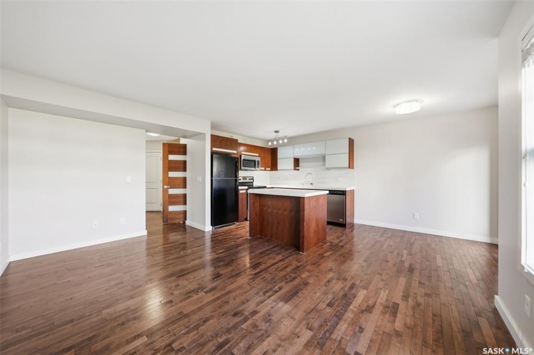 This townhouse is move-in ready, bright, and has a layout that just makes sense. The main floor has an open concept design with plenty of natural light, quartz countertops, hardwood floors throughout, and a great flow between the kitchen, dining, and living spaces. The kitchen has tons of storage, stainless steel appliances, and a large island that works perfectly for cooking or gathering around with friends. Upstairs, the primary bedroom gets lots of sunlight from the south facing windows and has a spacious walk-in closet along with a clean, four piece bathroom. The two additional bedrooms up here are a good size, great for kids, guests, or even a home office setup. The basement has been professionally developed and has never been lived in. It's bright and open, with space for a family room or workout area, plus a modern three piece bathroom and a separate laundry area tucked at the back. Outside, you've got your own private patio, perfect for BBQs or morning coffee, and access to a large well-kept community green space that gives you that extra bit of outdoor room without the maintenance. The one-car attached garage is a nice bonus for parking or extra storage. This townhouse really blends convenience, comfort, and modern style, all in a great Willowgrove location close to schools, parks, and walking paths.