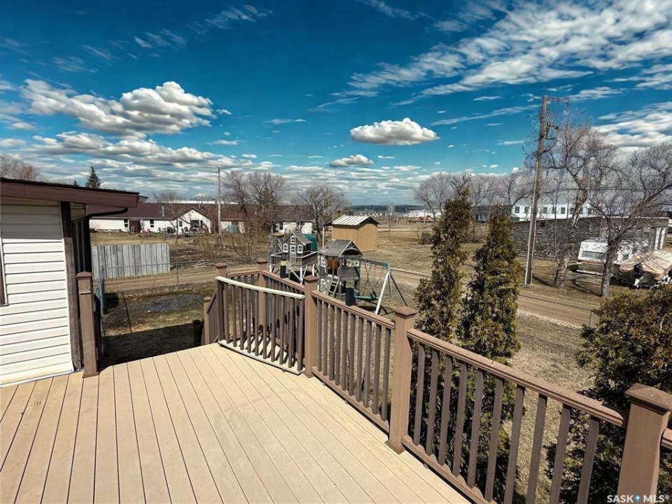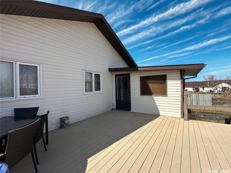 Welcome to this well-maintained 4-bedroom, 3-bathroom family home located on a corner lot in the friendly community of North Weyburn, just minutes from the City of Weyburn. Situated on a spacious lot, this property offers an excellent balance of comfort, functionality, and small-town charm. Outdoor living is a highlight, featuring a raised deck with storage underneath and a three-season screened sunroom—ideal for morning coffee or relaxing evenings. The fully fenced backyard includes ample green space, a separate fenced area suitable for a future pool, and a custom-built catio, perfect for pet lovers. There is also plenty of parking available for family and guests. Inside, the home is bright and welcoming, with large windows throughout that allow natural light to flow in. The open-concept kitchen offers generous space and includes all major appliances, making it well suited for both everyday living and entertaining. The primary bedroom features a private ensuite with shower, while two additional bedrooms and bathrooms complete the main level. The fully developed basement provides additional living space with a fourth bedroom, a dedicated home office, and a spacious utility and laundry room offering excellent storage. Located in a quiet, family-friendly neighbourhood with a local park and rink nearby, this home offers a strong sense of community with the convenience of an easy commute to Weyburn. A great opportunity to enjoy peaceful living in a welcoming area.