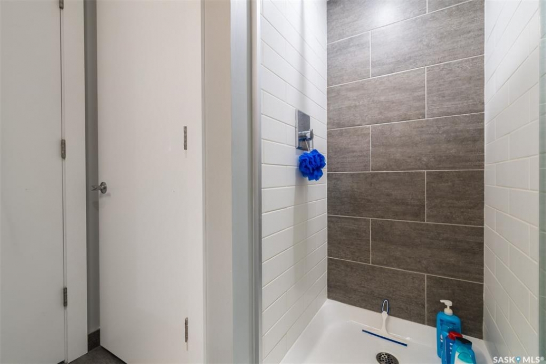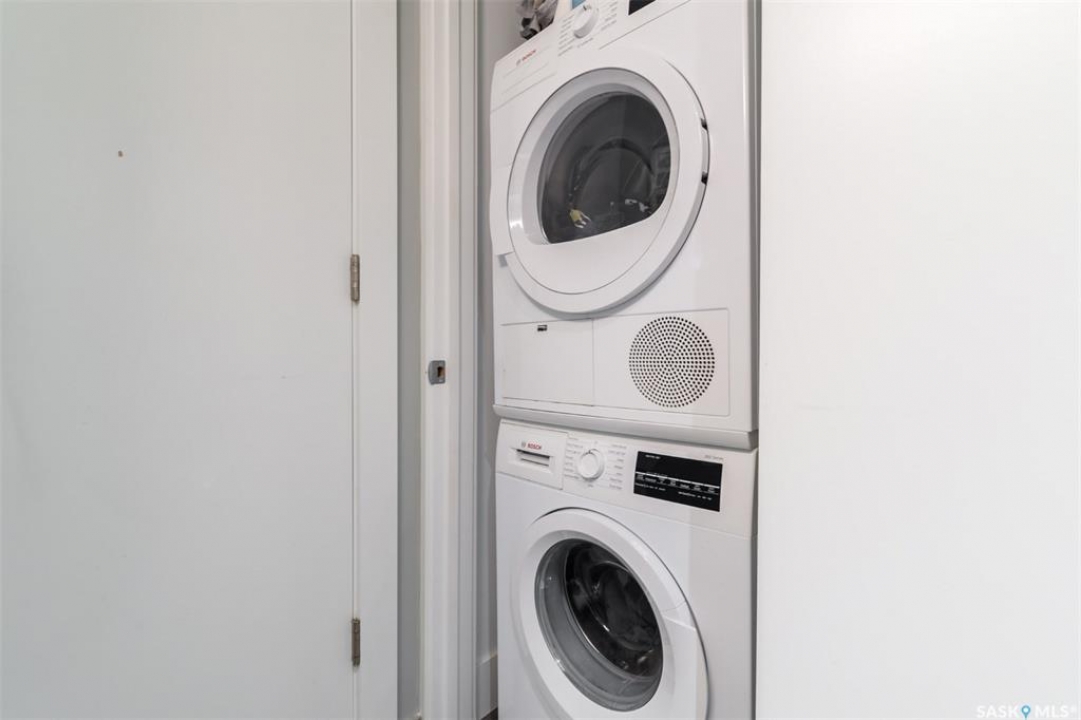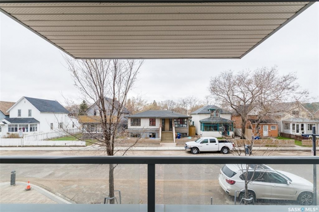 Enjoy downtown living in this newer, modern townhome located steps to the river. Well constructed and completed in 2017, this home is part of the popular Banks complex. Featuring 2 bedrooms, 3 bathrooms, an open concept layout on the main floor with lots of cabinetry and quartz countertops as well as stainless steel appliances, a Napoleon fireplace with new surround in the living room, a concrete feature wall and a two piece modern bath. Upstairs you will find a three piece bath with tiled shower and glass door, a Bosch washer and dryer, spacious primary bedroom with 4 piece en-suite and an additional bedroom both with balcony doors leading to a covered deck overlooking Avenue C. Brand new carpet throughout the upstairs and on the staircase. The townhome comes with TWO titled, heated underground side-by-side stalls and a storage unit. Other features include central air, natural gas hook-up for bbq, underground parking for your guests, rooftop deck and bike room. With only a few of these two-story style townhomes built, this is definitely a rare find. Enjoy the convenient location with many amenities close by including the newest restaurants, boutique shops and coffee spots.