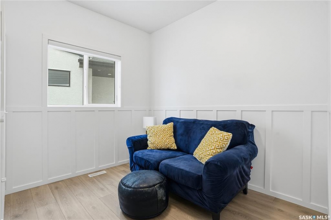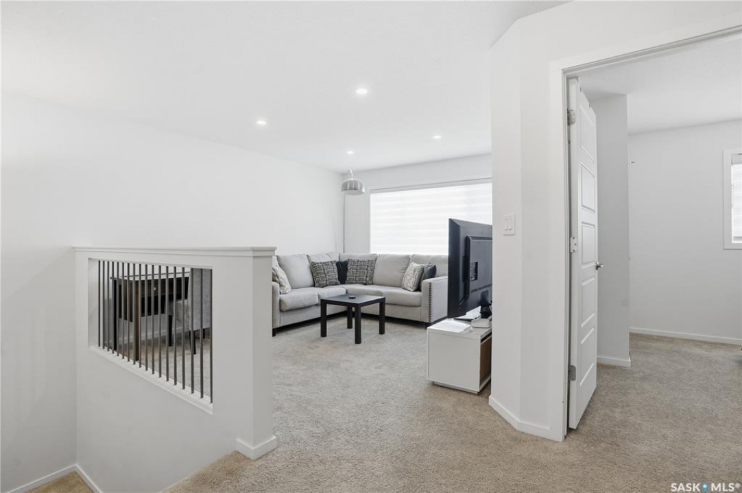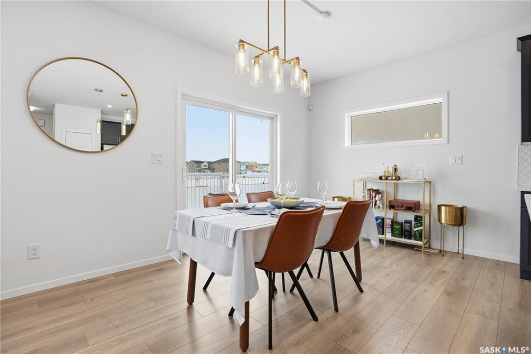 Located on a quiet crescent in East Regina's desirable Eastbrook neighbourhood, this beautiful two-storey home backs directly onto green space, offering privacy, peaceful views, and one of the area's most sought-after floor plans. A spacious front entry welcomes you into a bright, open-concept main floor flooded with natural light from large windows throughout. Designed for both entertaining and everyday living, the kitchen features quartz countertops, stainless steel appliances, a large island, and abundant cabinetry, flowing seamlessly into the dining area with patio doors leading to the backyard. The living room is centred around a modern electric fireplace, creating a warm and inviting focal point. A versatile main-floor office or flex space, convenient half bath, and direct access from the double attached garage complete this level. Upstairs offers a generous bonus room, two well-sized bedrooms, second-floor laundry, a full bathroom, and a spacious primary retreat with a walk-in closet and an ensuite with a shower and double sinks. The fully finished basement includes a beautiful one-bedroom legal suite with its own kitchen, laundry, and private entrance, providing excellent flexibility for extended family living or rental income as a mortgage helper. Additional highlights include 9' ceilings on the main floor, laminate flooring throughout main living areas, tile in all wet spaces, upgraded stair railings with metal spindles, a gold kitchen faucet and cabinet handles, rear deck with skirting, and fully fenced and landscaped yard. Backing naturalized green space and located in a quiet, family-friendly setting, this home offers exceptional value, versatility, and long-term potential. (Some furniture are negotiable)