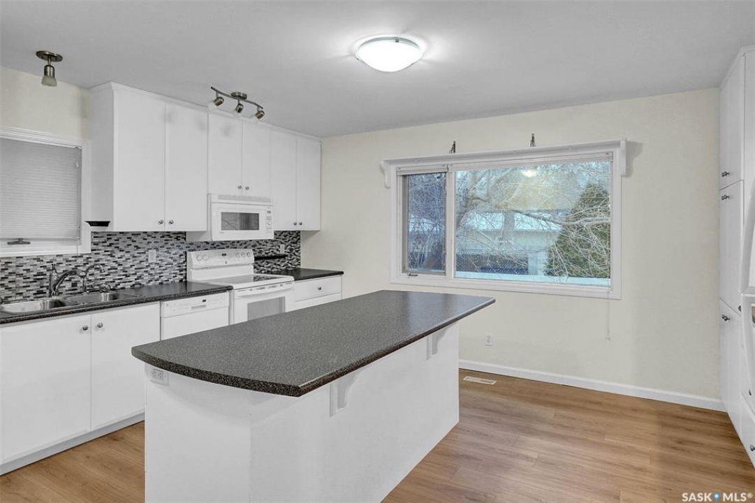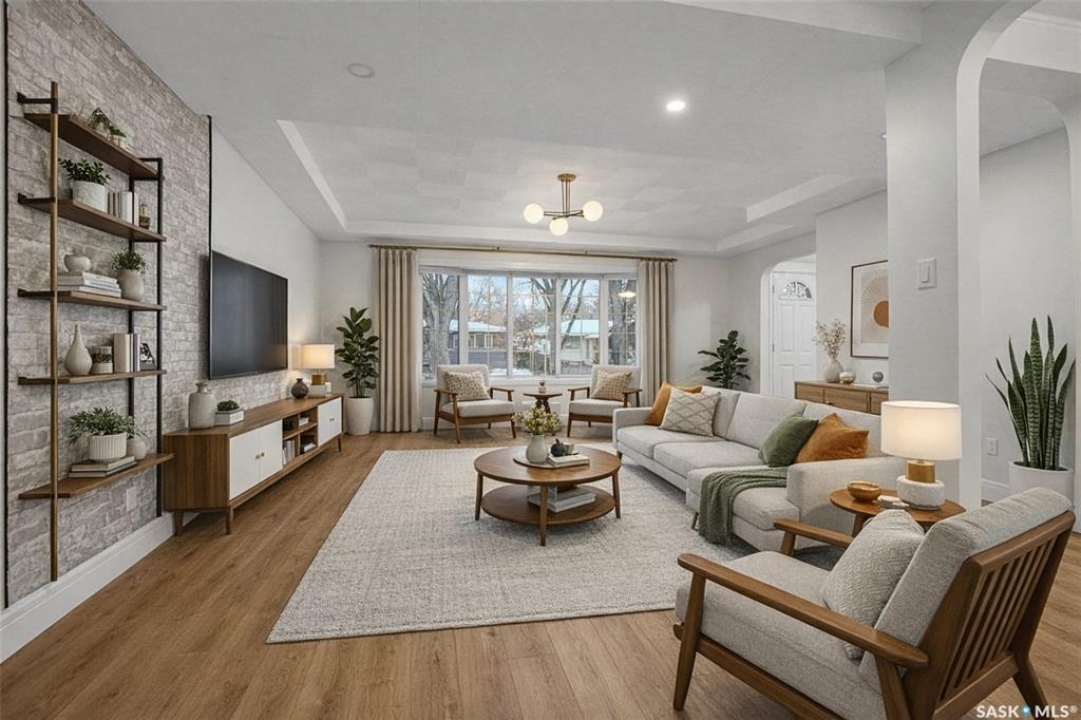 Located in the desirable Lakeview area. Bright, open, spacious, versatile floor plan! Crisp and fresh, ready for new owners. When you step inside there is a charming entry with 1953 character then modern updates: laminate flooring, updated windows, bathrooms, kitchen, sunroom and the list goes on and on. Functionality: the front room was a bedroom, and the owners added updated plumbing and venting for main floor laundry: the choice is yours'. The front living room with charming bay window extends to the sitting area with TV mount and then there is build in cabinetry for a dining area if you so desire. The custom designed kitchen pops with white cabinetry and tons of natural light. Lots of drawers and counter space plus a centre island. The primary bedroom can accommodate a king size bed plus it has 2 closets and entry to a main floor powder room. The two other bedrooms are a good size. A spacious main bath completes this level. Downstairs you find a room with a closet and window (it may not be standard egress size) that is insulated and drywalled: just needs ceiling and flooring. The family room is very large, has 3 windows and there is a 3/4 bath. A sunroom 23.11 x 11.9 (2012) with 2-person hot tub is off the kitchen. Sunroom floor is covered with a waterproof lawyer below the indoor/outdoor carpeting. Gas line for BBQ. The 24 x 24 garage (2006) is insulated and drywalled. Wired for 220V. Attached shelving and flip up worktables are included. Fully fenced back yard with artificial turf (new summer 2025), rubber tile patio, front deck is 8 x 16. Shingles updated June 2024. Drain lines under basement floor were replaced in the late 1990's. Main sewer line was replaced in the mid 2000's. (not City portion that goes under sidewalk). Permit and plans for the 576 sq addition from 1994 are available. Note: the last 4 pictures are AI generated and staged. The outdoor photos were taken prior to listing in the winter to show off the yard. Definitely a home to check out.