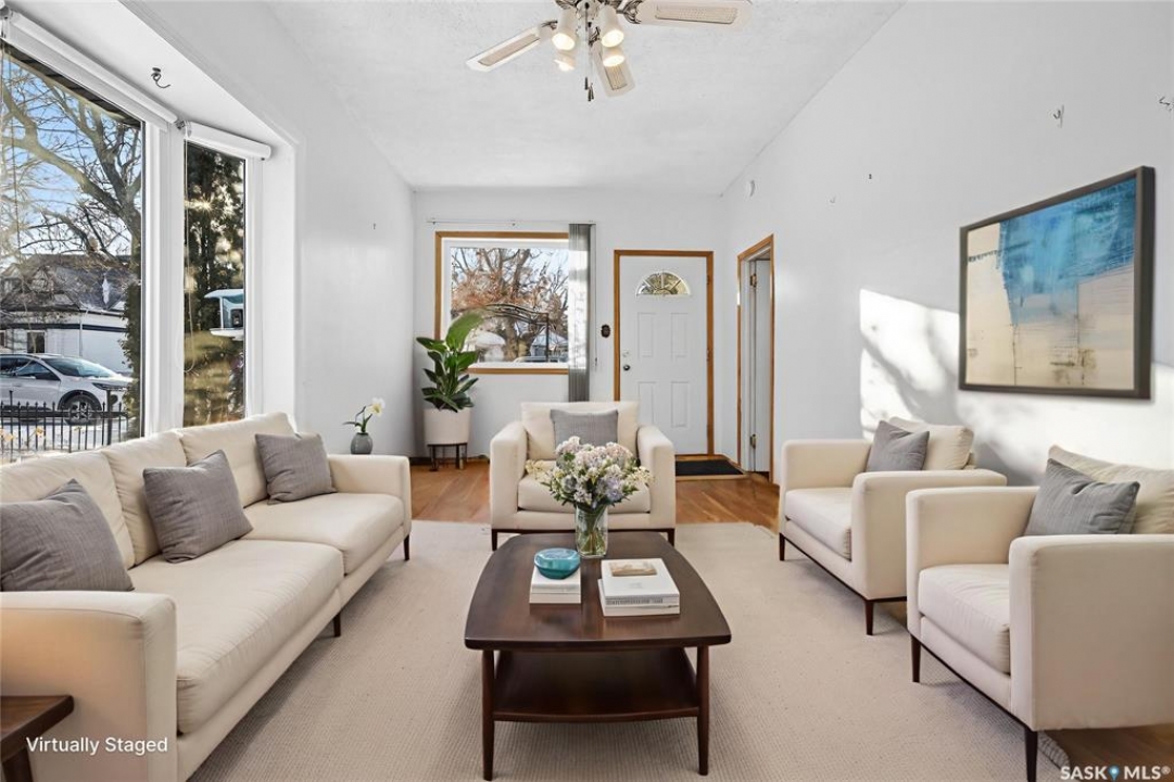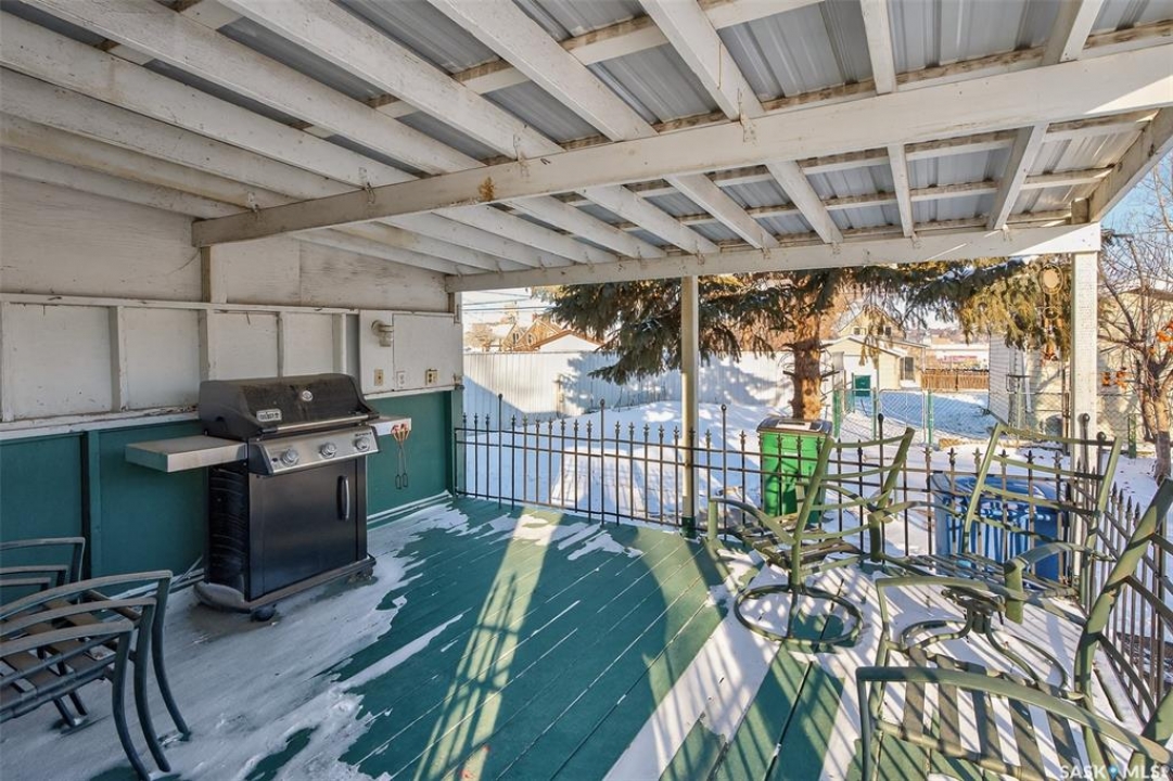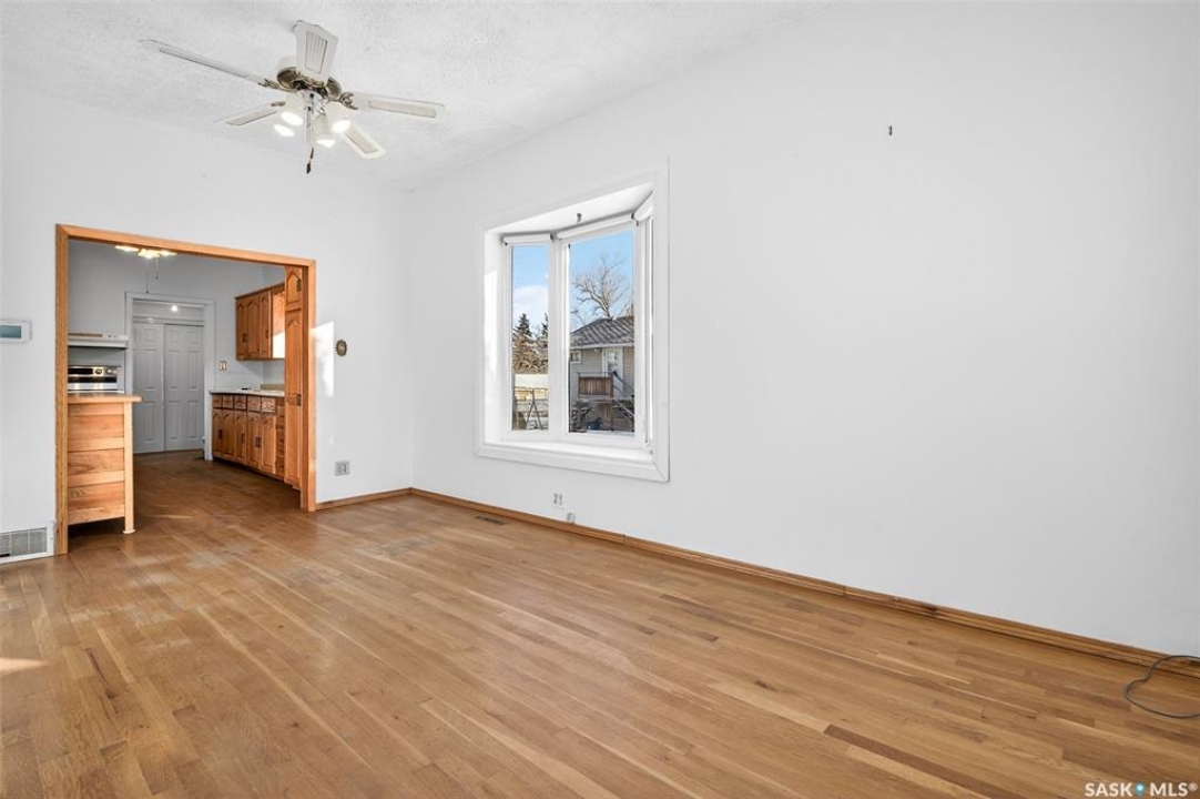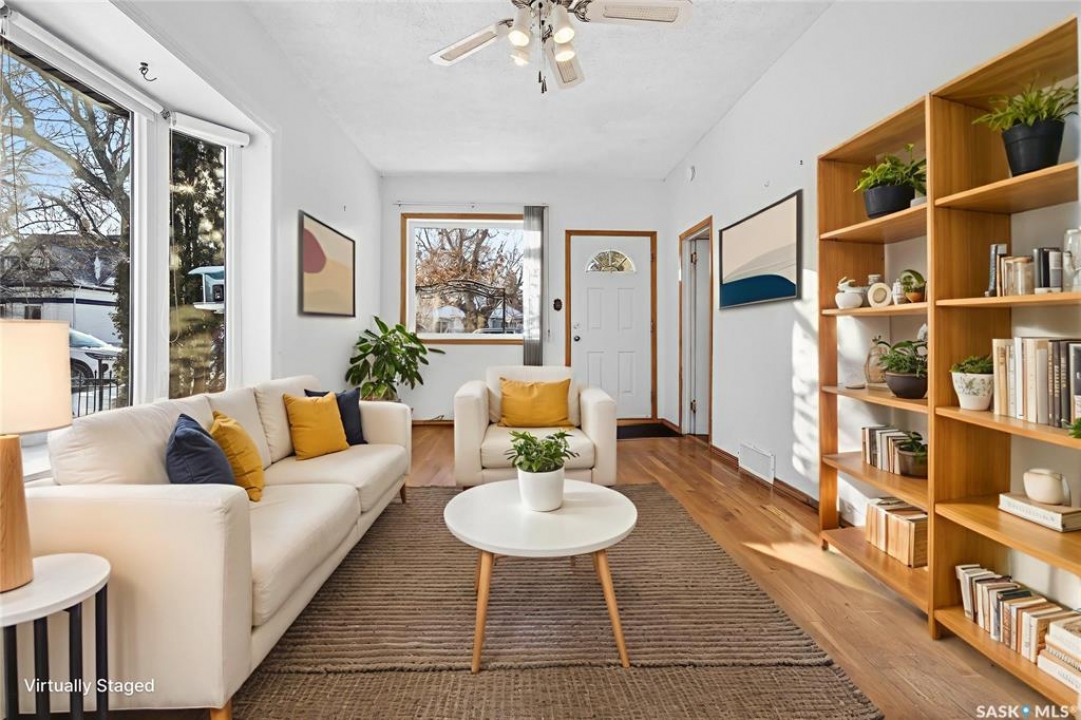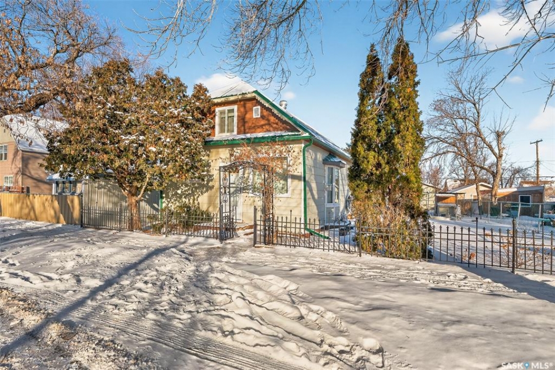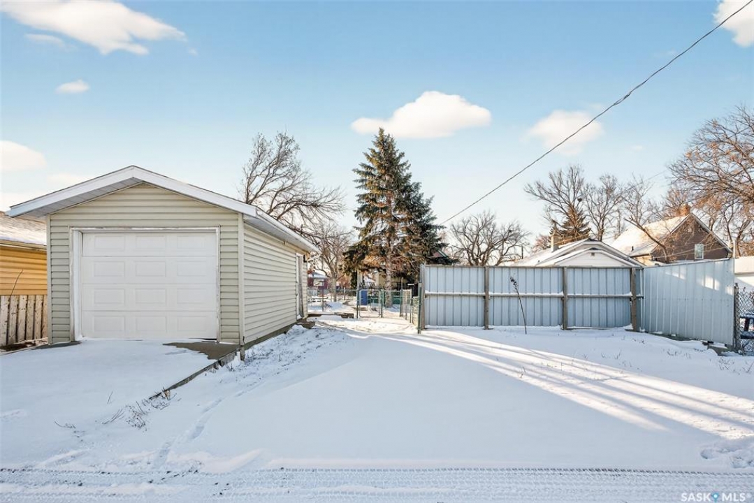 Are you looking for an excellent starter or family home? Pulling up you will notice the fenced yard and a nicely placed house on one side giving you lots of yard space on the side - bonus much of the side yard has had artificial turf installed. Heading in the side door you are greeted by a spacious mudroom with a large closet. Right off the mudroom is an updated 3 piece bath with a walk-in shower. Next we find a spacious kitchen with lots of cupboards and cabinet space. A separate formal dining room just off the kitchen is the perfect place for a family supper. You are sure to love the hardwood floors throughout the main living spaces. Towards the front of the home we have a large living room with a large bay window giving lots of natural light. Next we find the primary bedroom right at the front of the home. At the back of the home we have main floor laundry room that used to be a bedroom and could be converted back to one if you would like with laundry in the basement. On the second floor we have a den which could be used for many things - an office, bedroom or playroom and then a second bedroom. Down in the basement we find lots of storage space and utilities. Heading outside we find a nice covered deck with an included natural gas BBQ - which is sure to be a hit in the summer. As well as a large garden area and a single detached garage off the back. So many updates over the years including a sewer and water line replaced to street, newer windows, tin roof and tankless on demand hot water. Quick possession is available! Reach out today to book your showing!