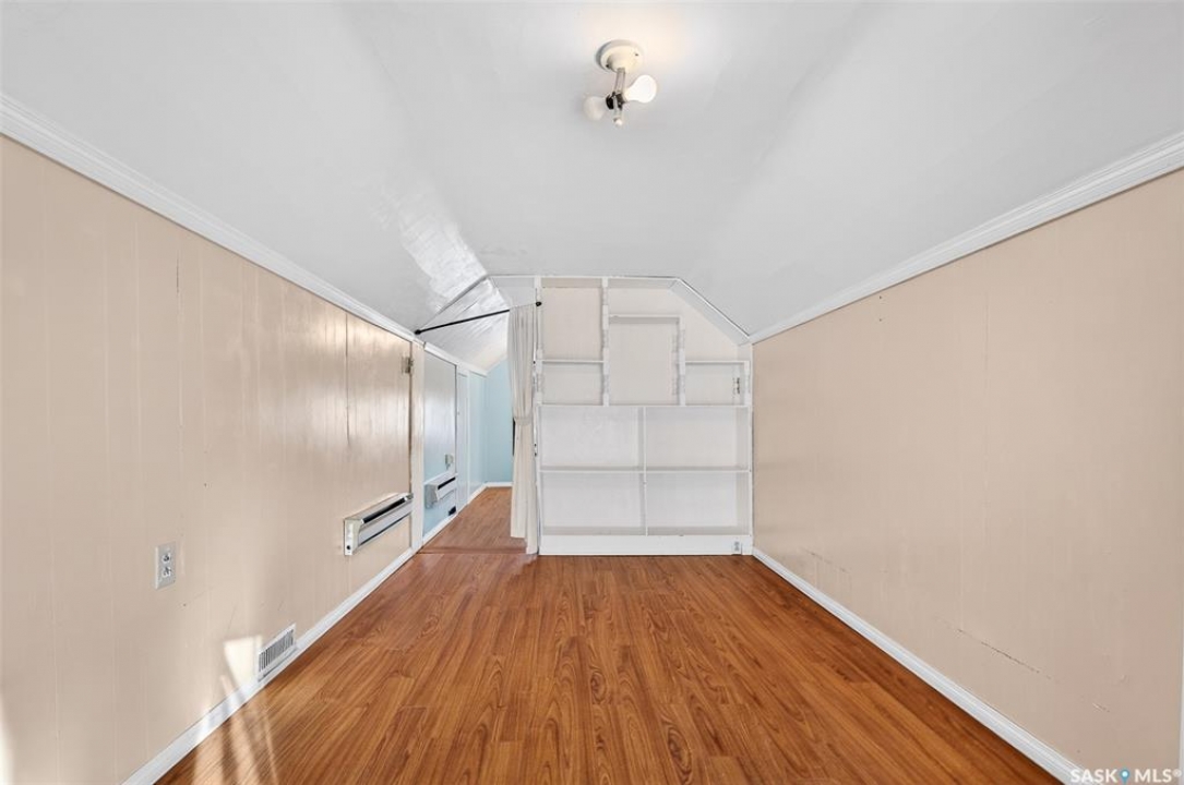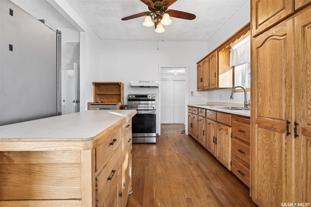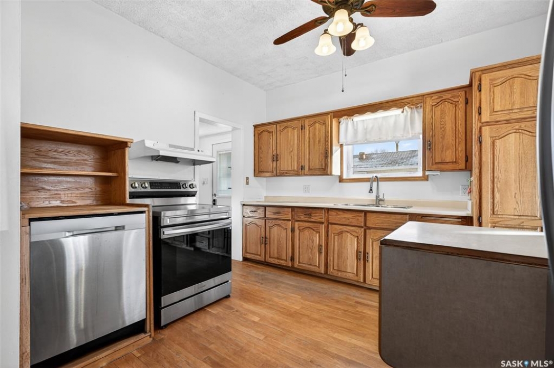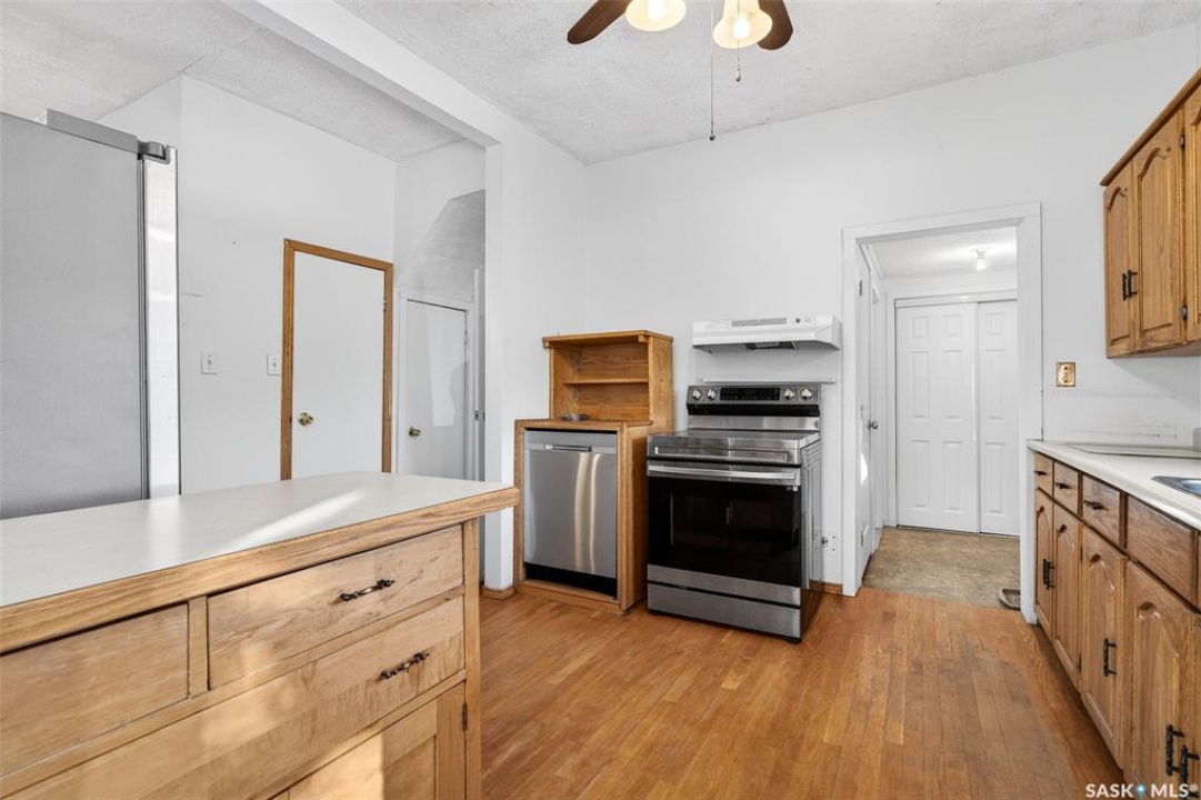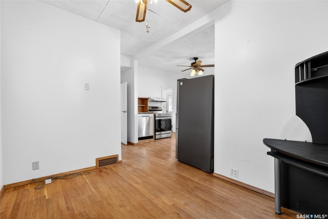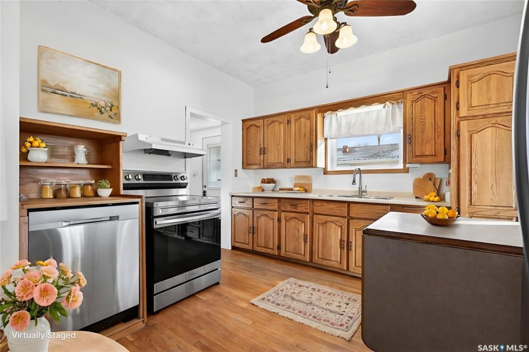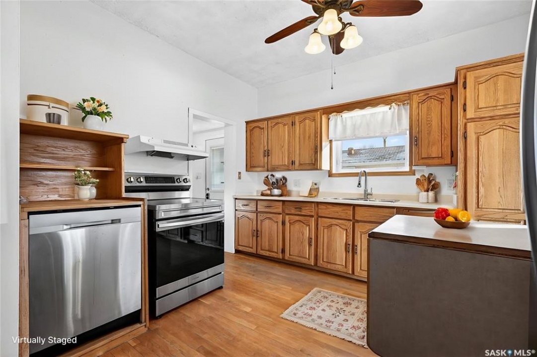 Are you looking for an excellent starter or family home? Pulling up you will notice the fenced yard and a nicely placed house on one side giving you lots of yard space on the side - bonus much of the side yard has had artificial turf installed. Heading in the side door you are greeted by a spacious mudroom with a large closet. Right off the mudroom is an updated 3 piece bath with a walk-in shower. Next we find a spacious kitchen with lots of cupboards and cabinet space. A separate formal dining room just off the kitchen is the perfect place for a family supper. You are sure to love the hardwood floors throughout the main living spaces. Towards the front of the home we have a large living room with a large bay window giving lots of natural light. Next we find the primary bedroom right at the front of the home. At the back of the home we have main floor laundry room that used to be a bedroom and could be converted back to one if you would like with laundry in the basement. On the second floor we have a den which could be used for many things - an office, bedroom or playroom and then a second bedroom. Down in the basement we find lots of storage space and utilities. Heading outside we find a nice covered deck with an included natural gas BBQ - which is sure to be a hit in the summer. As well as a large garden area and a single detached garage off the back. So many updates over the years including a sewer and water line replaced to street, newer windows, tin roof and tankless on demand hot water. Quick possession is available! Reach out today to book your showing!