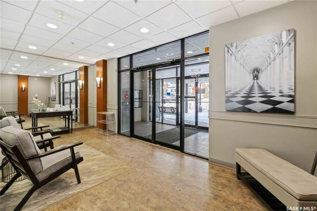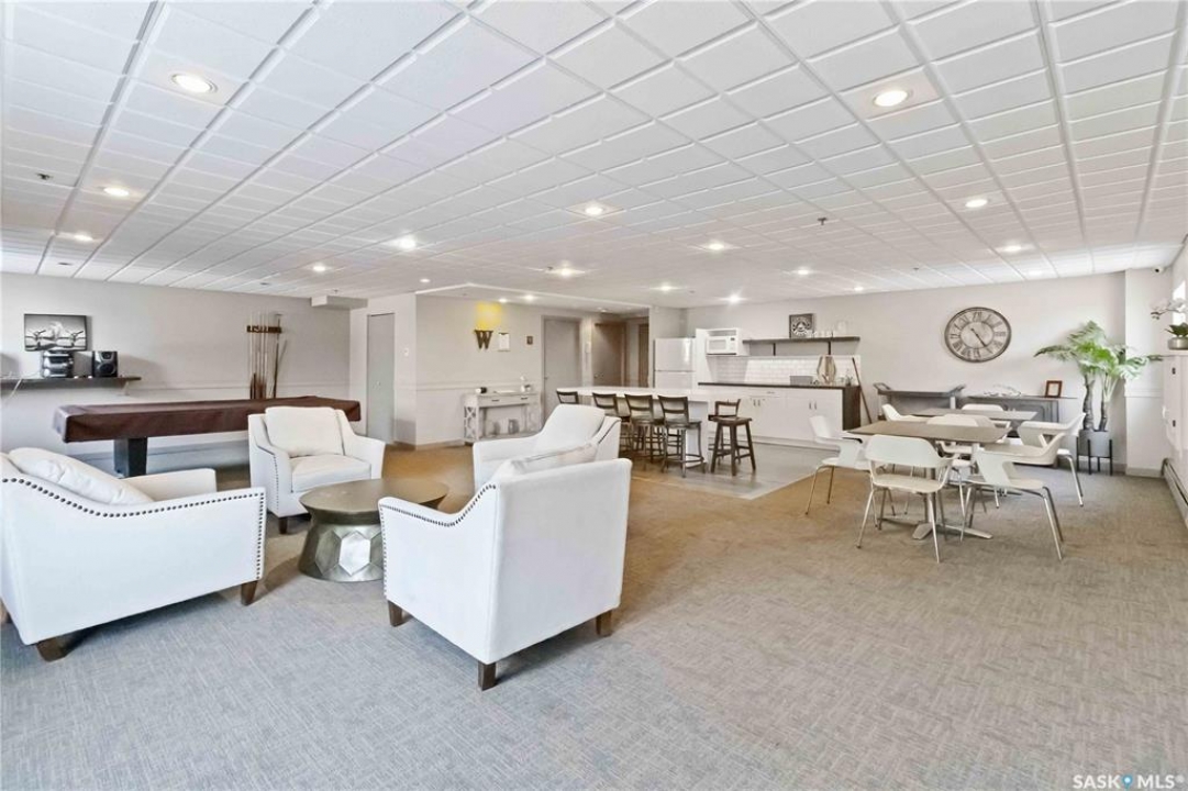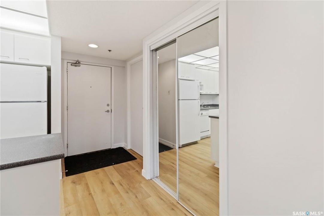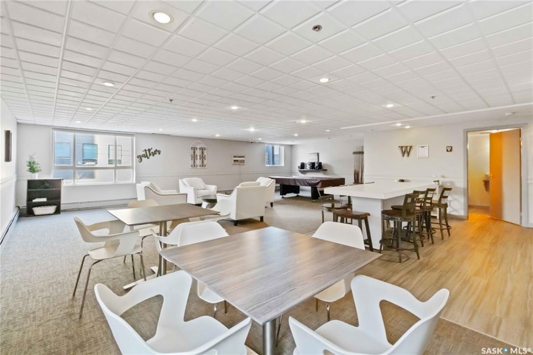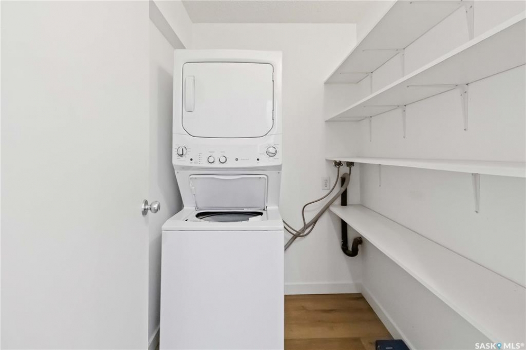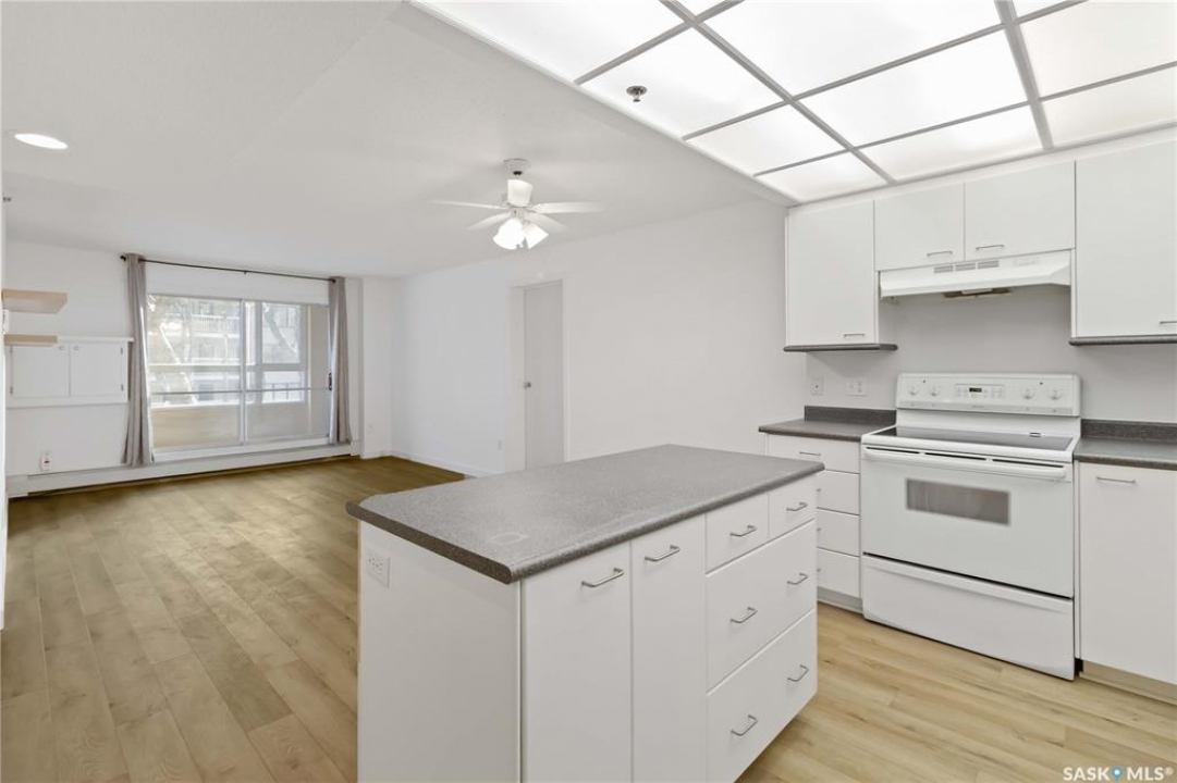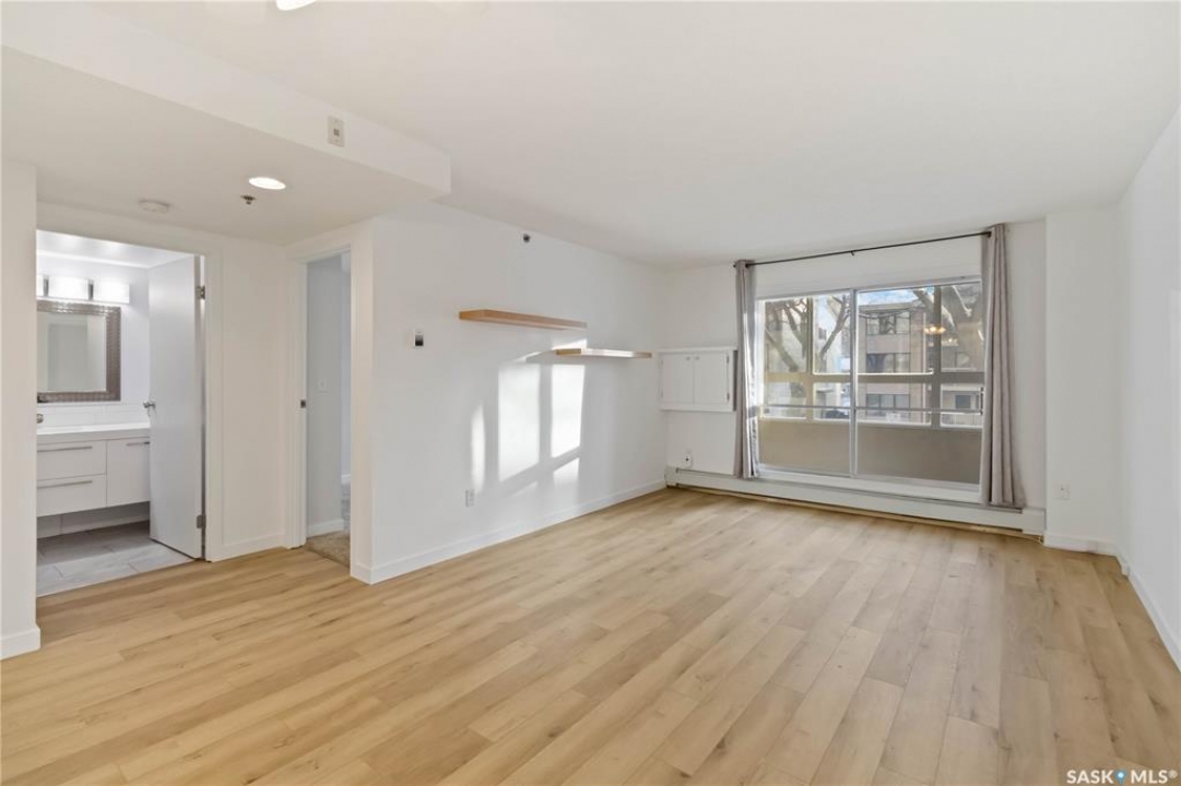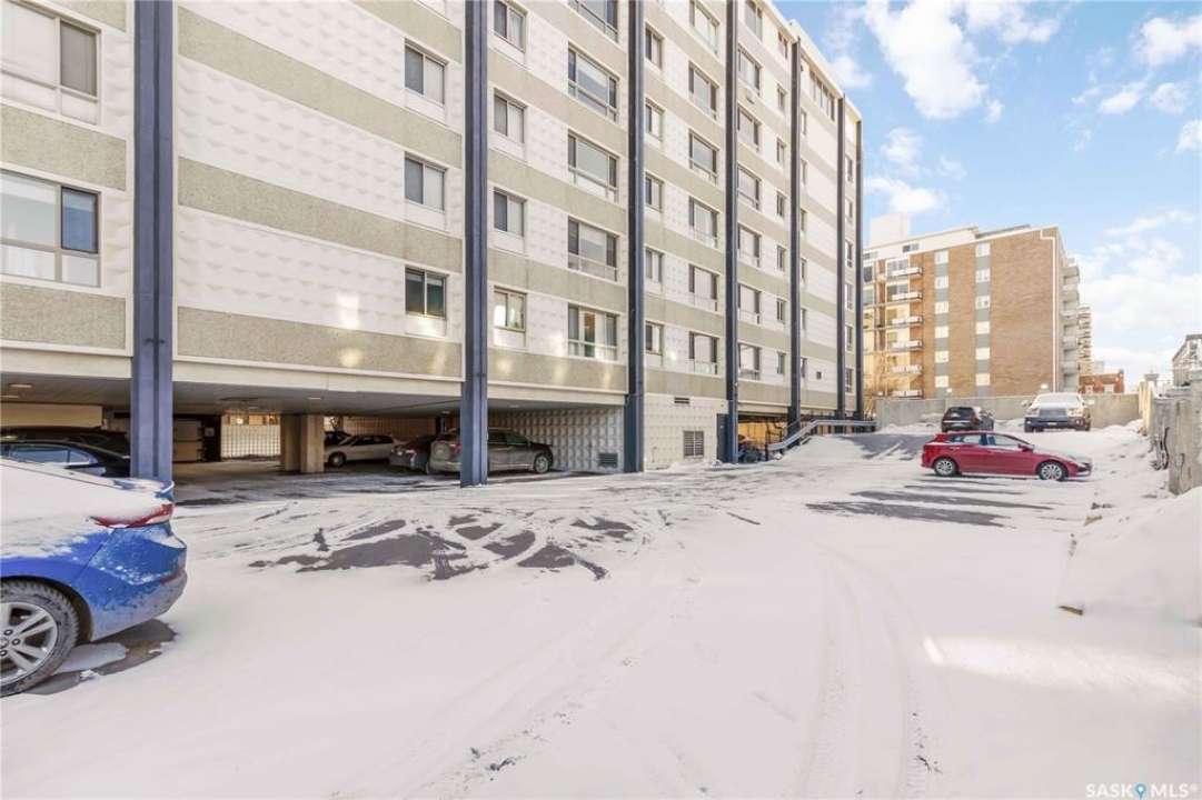 Spacious 990 sq. ft. two bedroom, two bathroom condominium apartment in the desirable City Park area. Generous primary bedroom with a renovated 3 piece ensuite and a second bedroom for a roommate or family member with a renovated 4 piece bathroom just down the hall. The kitchen boasts an island with a dining room/area. Laundry room with washer and dryer (2021) with storage area. All three exterior windows replaced new in (2024). Air Conditioner (2025) New vinyl plank flooring in (2026). Sun Room just off the living room for those bright summer days. One electrified parking spot included in behind the garage door for your security. Amenities room is on the same floor down the hallway for your use to have large groups over. There is also a roof top patio for entertaining friends or to have some downtime taking a view of the city. The City Park area is perfect for accessing downtown amenities, mere foot steps from City Hospital, Kinsmen Park, walking distance to the University of Saskatchewan, or some beautiful walks down by the South Saskatchewan River. Unique to the Building is the 1st floor elevated approximately 10 feet above ground level. NOTE: Bedrooms and Living Room are virtually staged. Give your REALTOR � a call today to view this beautiful property.