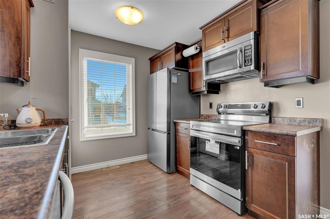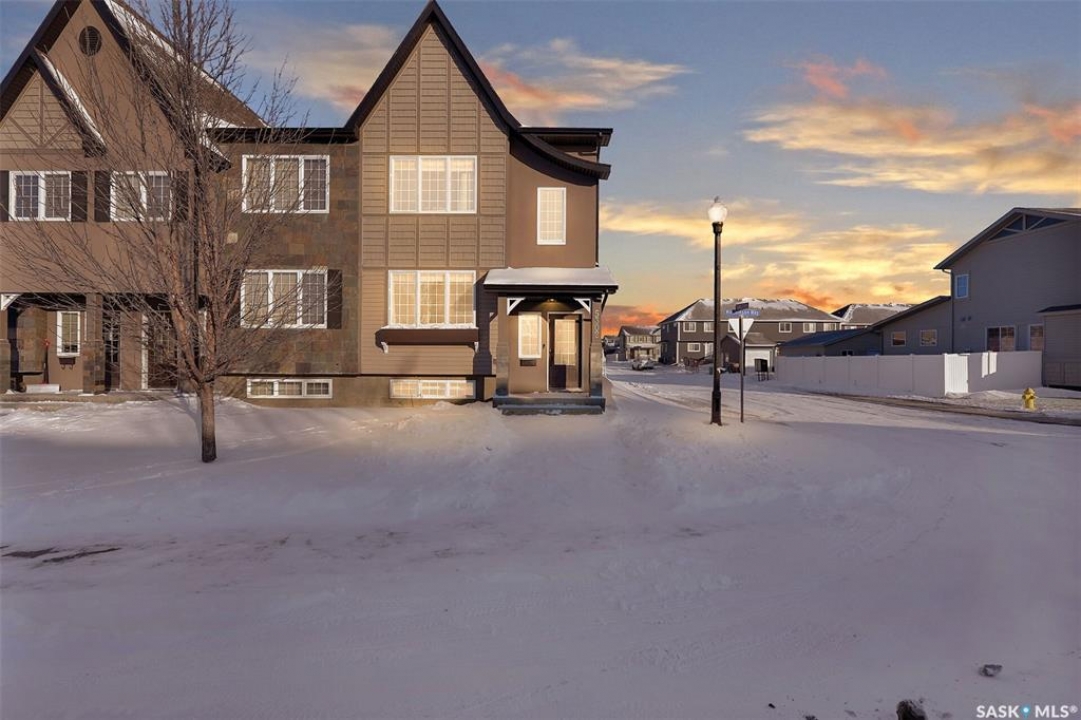 Welcome to this former show home end-unit townhouse located in Harbour Landing. This well-maintained property offers 4 bedrooms, 2 full bathrooms, and no condo fees. The open-concept main floor features extra windows for abundant natural light, maple cabinetry, upgraded lighting, and newer stainless steel kitchen appliances. The upper level includes 3 bedrooms, a full bathroom, and a convenient laundry area. The fully developed basement offers a den, an additional full bathroom, and ample storage space. The fully fenced yard features an exposed aggregate patio and sidewalk leading to a double detached garage that is insulated, drywalled, and wired. Built with high-quality materials including an ICF foundation, structured piles, detailed exterior finishes, and 30-year shingles. A great opportunity in a desirable community—don't miss out.
