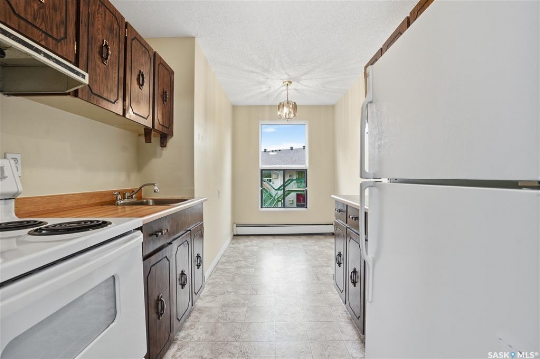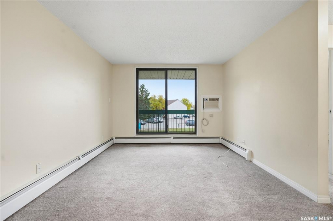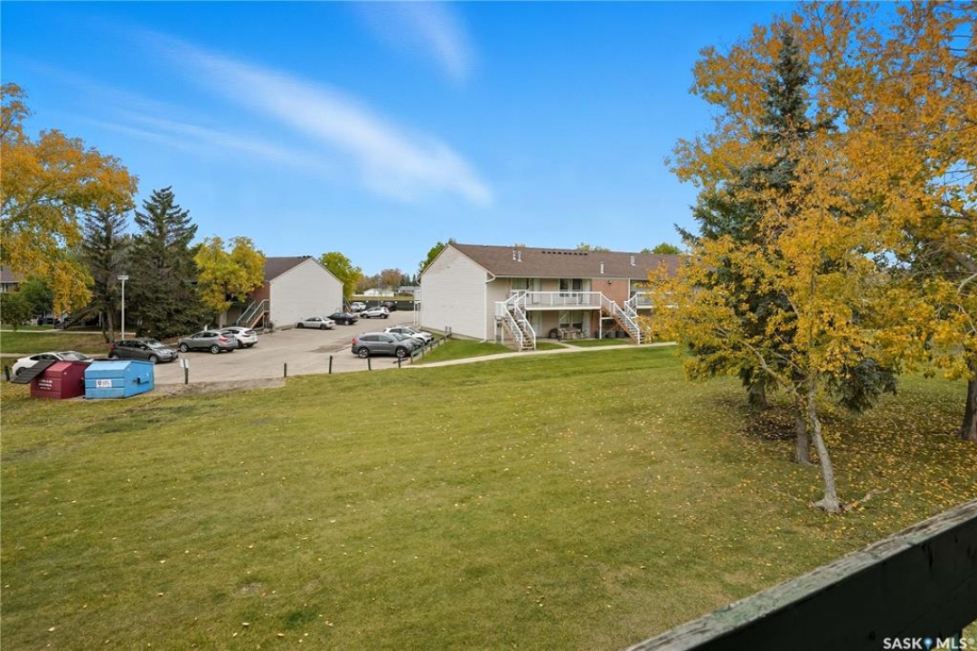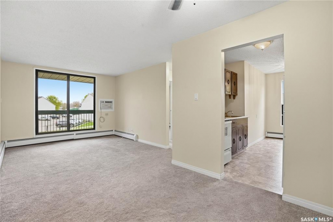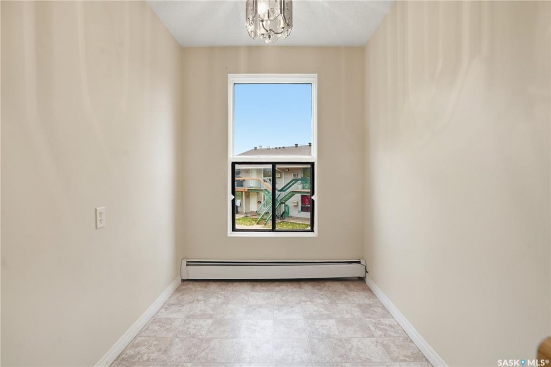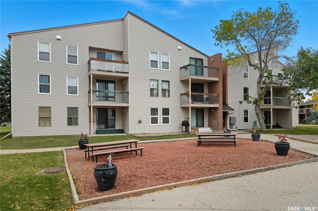 Searching for your first home or a solid investment opportunity? This well-kept, clean 1 bedroom, 1 bathroom corner-unit condo offers comfort, convenience, and excellent value. The bright open-concept living and dining area provides an inviting space to relax, with patio doors framing a pleasant view and allowing plenty of natural light. The galley-style kitchen is both practical and efficient, offering ample cupboard and counter space to make everyday cooking easy. Adjacent to the kitchen, the breakfast nook can easily double as a compact home office or workspace. The bathroom has been updated with a refreshed BathFitter tub surround. A generous in-suite storage room provides secure and convenient space for items such as a small deep freeze, bicycle, luggage, or seasonal tires. Step outside onto your private balcony to enjoy tranquil views of the landscaped greenspace—perfect for morning coffee or unwinding at the end of the day. Flooring throughout the main living areas was updated three years ago. The unit includes one electrified parking stall (stall #54) and is pet-friendly with restrictions. Monthly condo fees of $375.09 cover heat, water, exterior maintenance, building insurance, and contributions to the reserve fund, offering a low-stress lifestyle or easy rental management. A common laundry room is located on the main floor. Medford Mews is ideally situated close to Normanview Shopping Centre, public transit, a gym, grocery stores, restaurants, and Galaxy Cinema—everything you need just steps away. Whether you're ready to move out of the rental market or expand your real estate portfolio with a low-maintenance property, this condo truly delivers. Previously rented for $1,100 per month.