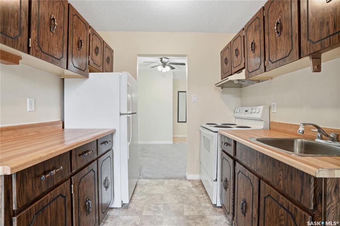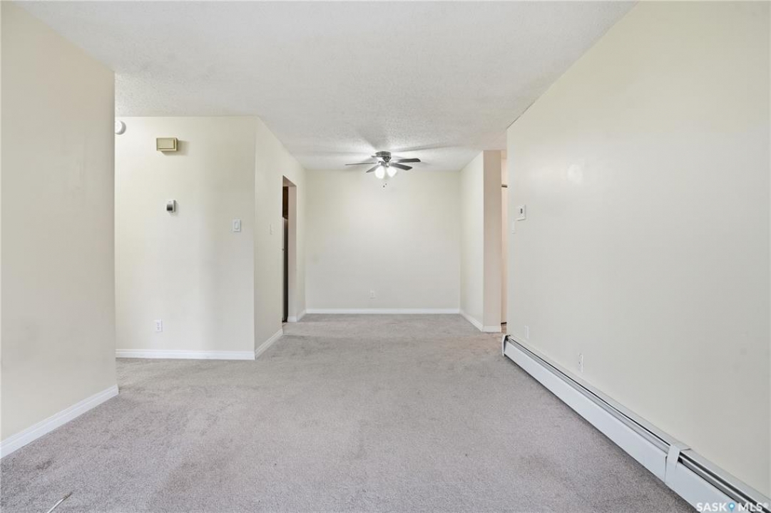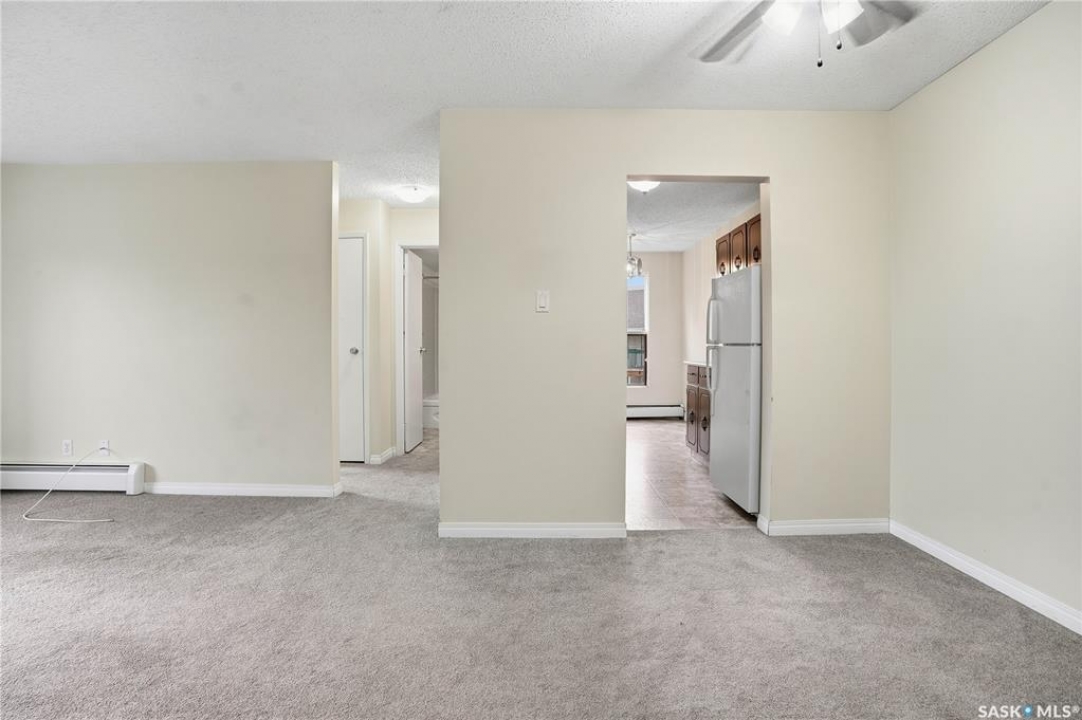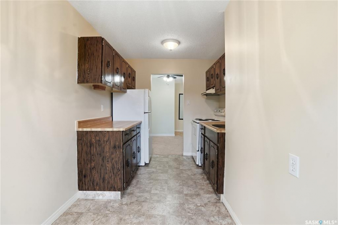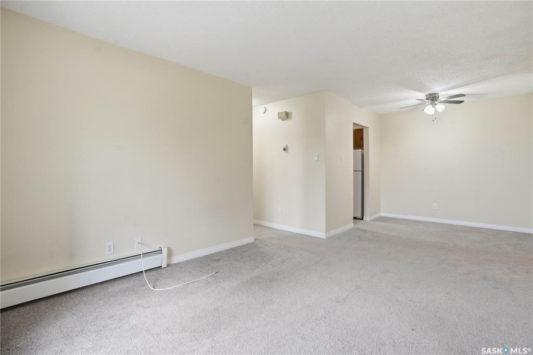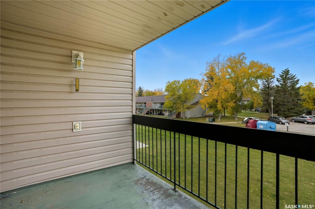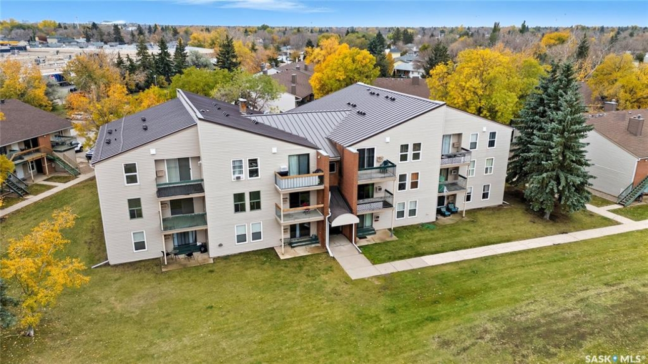 Searching for your first home or a solid investment opportunity? This well-kept, clean 1 bedroom, 1 bathroom corner-unit condo offers comfort, convenience, and excellent value. The bright open-concept living and dining area provides an inviting space to relax, with patio doors framing a pleasant view and allowing plenty of natural light. The galley-style kitchen is both practical and efficient, offering ample cupboard and counter space to make everyday cooking easy. Adjacent to the kitchen, the breakfast nook can easily double as a compact home office or workspace. The bathroom has been updated with a refreshed BathFitter tub surround. A generous in-suite storage room provides secure and convenient space for items such as a small deep freeze, bicycle, luggage, or seasonal tires. Step outside onto your private balcony to enjoy tranquil views of the landscaped greenspace—perfect for morning coffee or unwinding at the end of the day. Flooring throughout the main living areas was updated three years ago. The unit includes one electrified parking stall (stall #54) and is pet-friendly with restrictions. Monthly condo fees of $375.09 cover heat, water, exterior maintenance, building insurance, and contributions to the reserve fund, offering a low-stress lifestyle or easy rental management. A common laundry room is located on the main floor. Medford Mews is ideally situated close to Normanview Shopping Centre, public transit, a gym, grocery stores, restaurants, and Galaxy Cinema—everything you need just steps away. Whether you're ready to move out of the rental market or expand your real estate portfolio with a low-maintenance property, this condo truly delivers. Previously rented for $1,100 per month.
