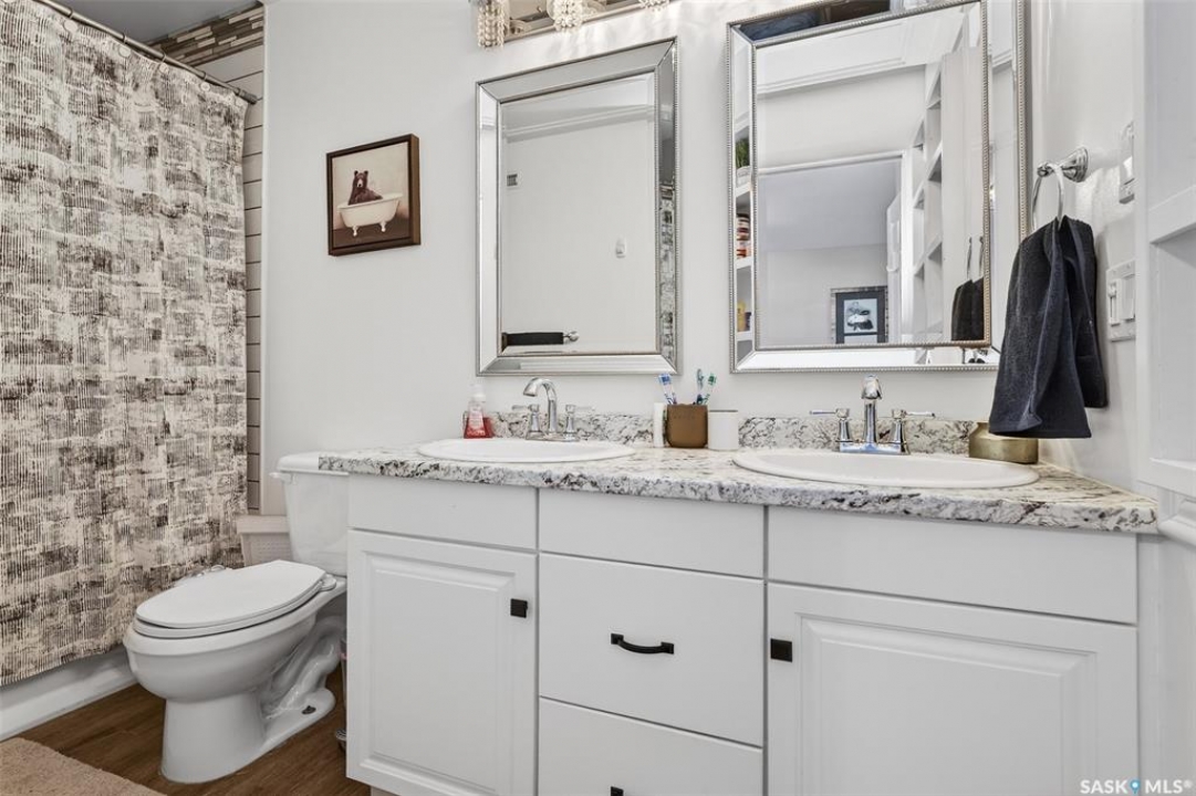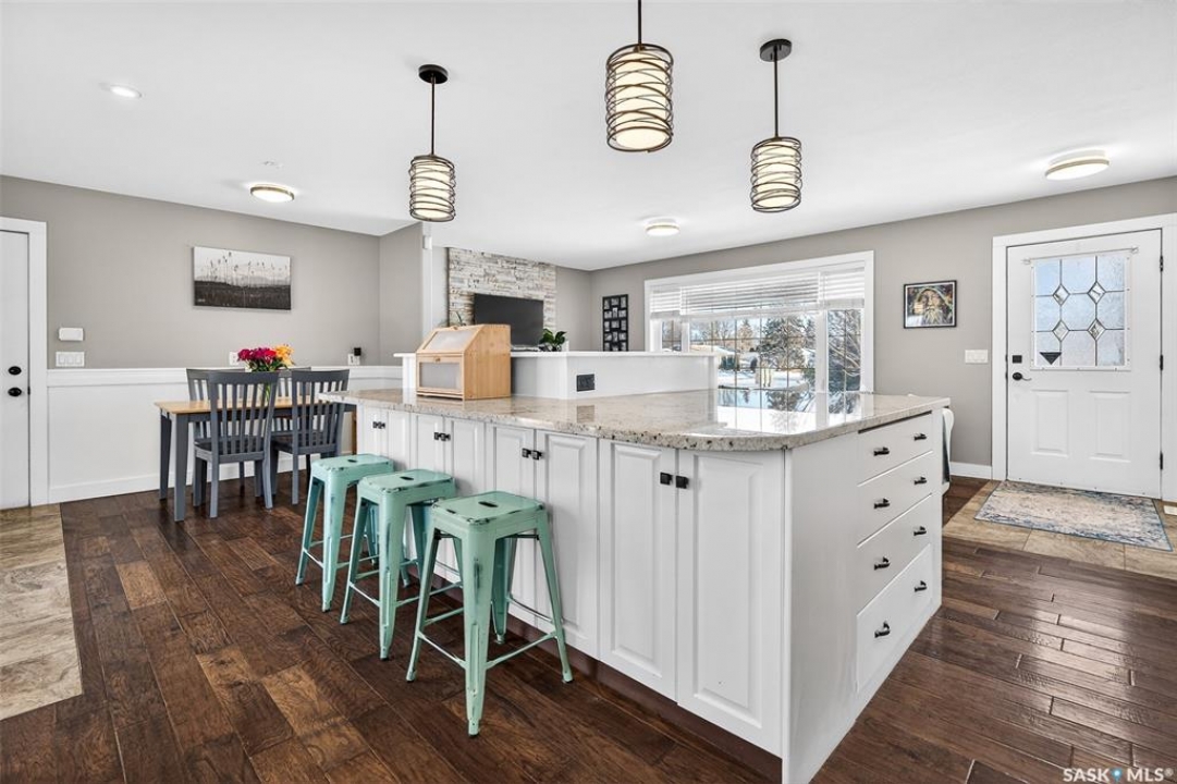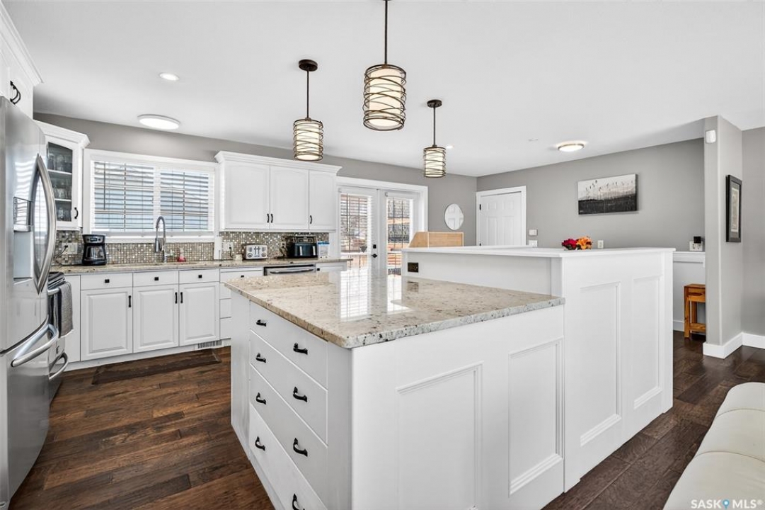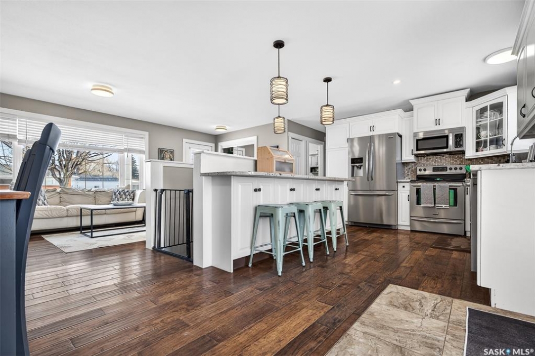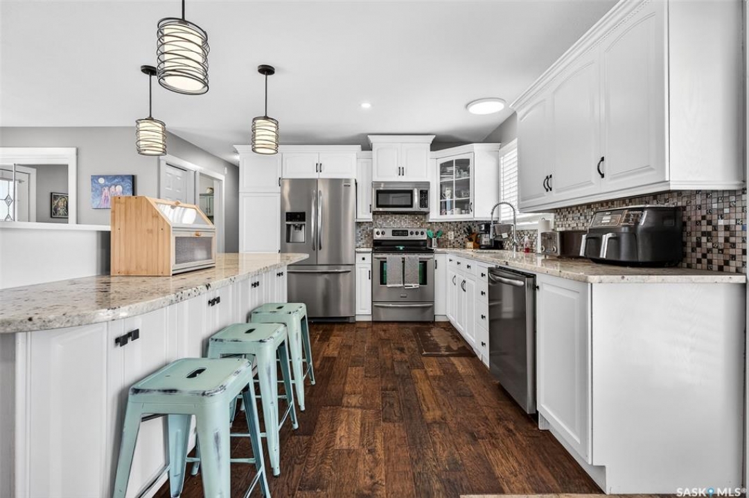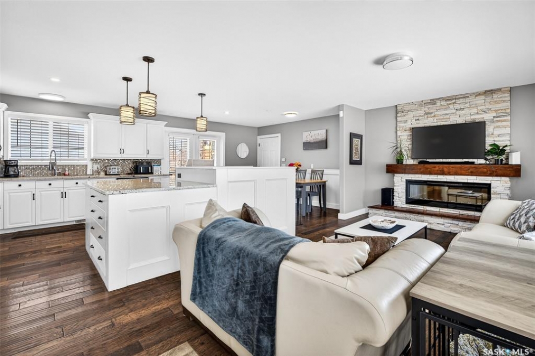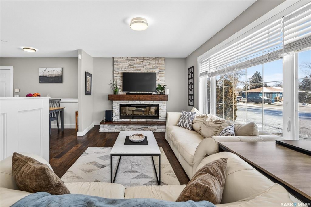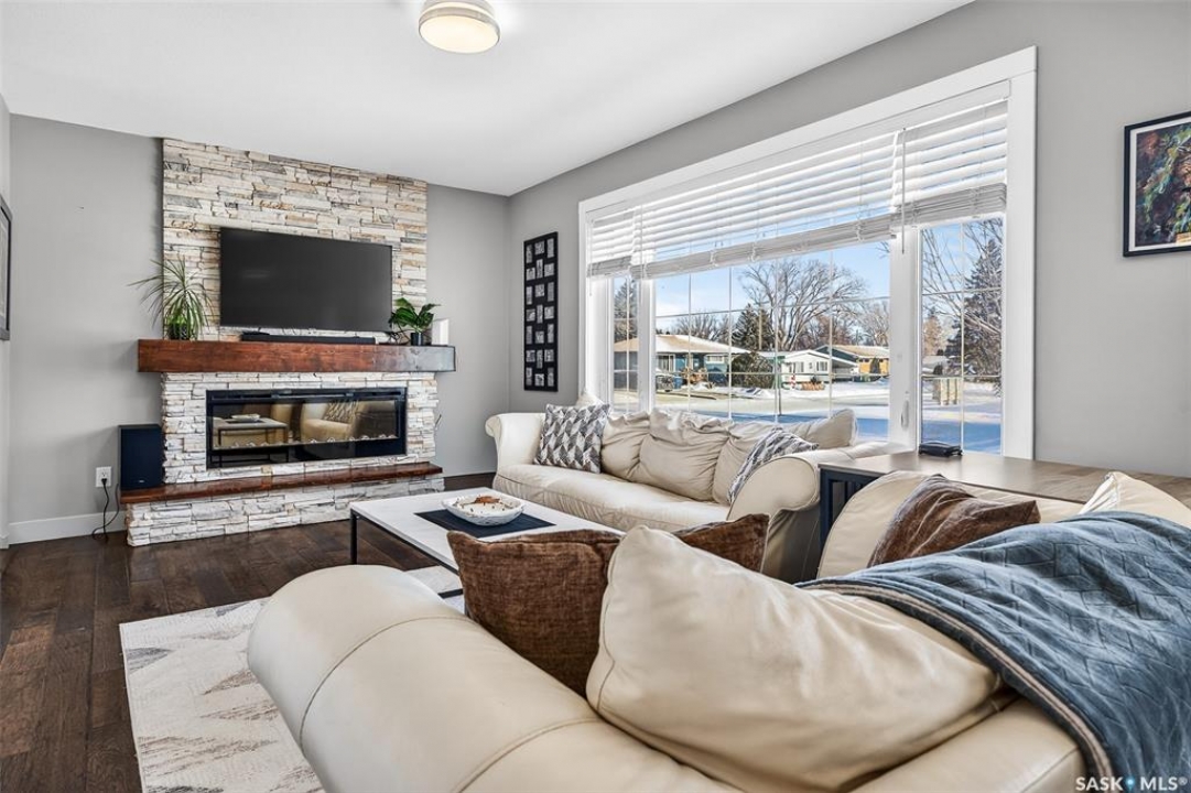 Beautifully updated bungalow on a large lot in desirable Palliser! This move-in-ready home features an open-concept main floor with engineered hardwood, a stone-accent fireplace, and a bright kitchen with white cabinetry, centre island, and quartz countertops. The main level offers 2 bedrooms, including a spacious primary with his-and-hers closets and a 5-piece ensuite, plus a 2-piece bath. The fully redone basement includes a large family/games area, 2 additional bedrooms (windows slightly under egress), a 4-piece bath, and a generous laundry and storage room. Enjoy a mature, fully fenced yard with large deck and patio, with natural gas BBQ hookup. Rare parking features include an attached double heated garage, a detached double heated garage, and RV/boat parking. Just steps to Public & Catholic schools and playgrounds. A fantastic home for families of any age!