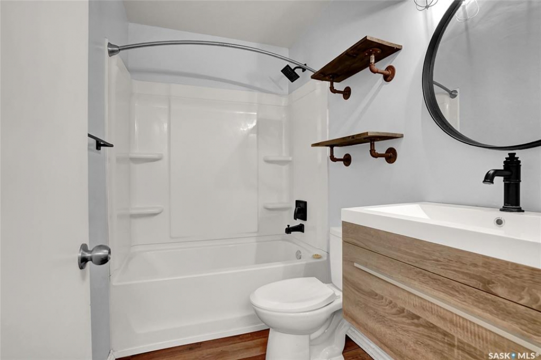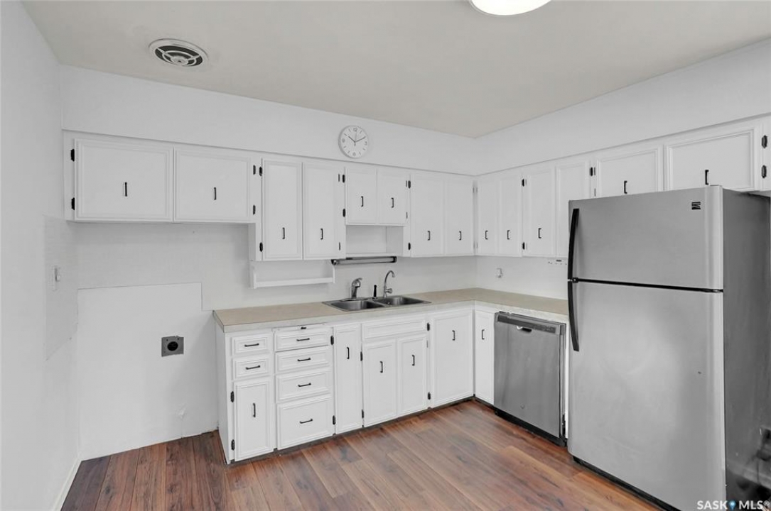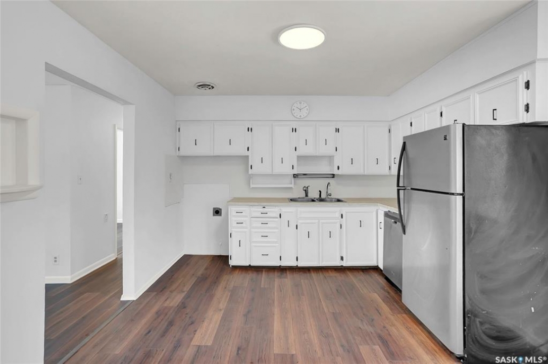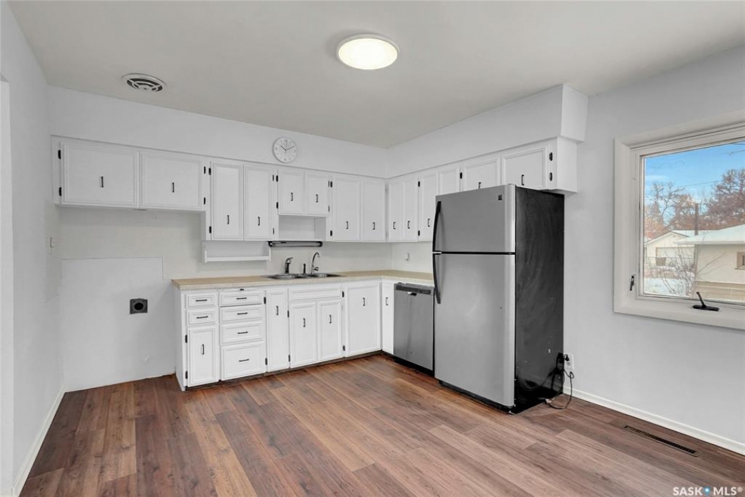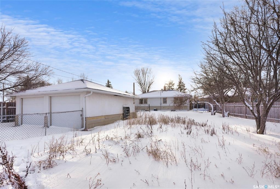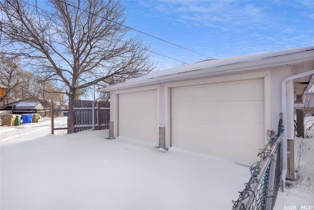 Bright home that is in a quiet location, situated on a good sized lot, close to a school and shopping. Recent renovations in 2026 include all new laminate flooring on main floor, kitchen cabinets were professional painted, & new front door. Main bathroom has been updated. New shingles on house in 2023, new electrical in 2023, new eaves on house 2024. Basement is open for development. Spacious yard with double garage off back lane.