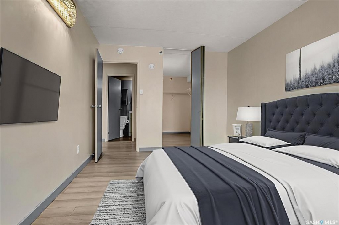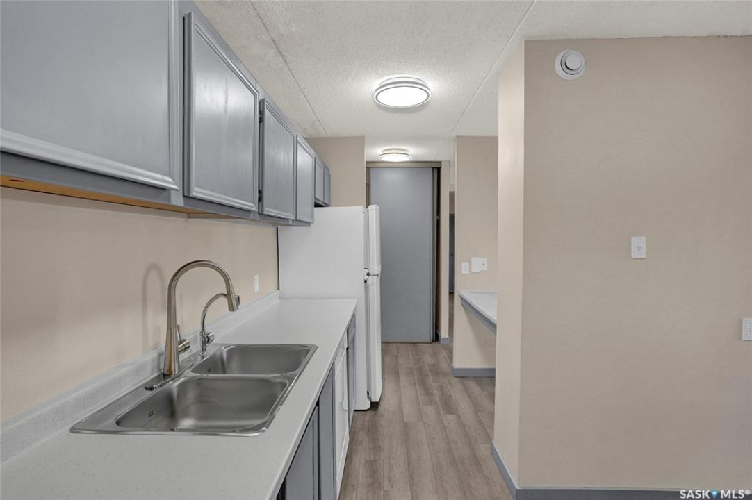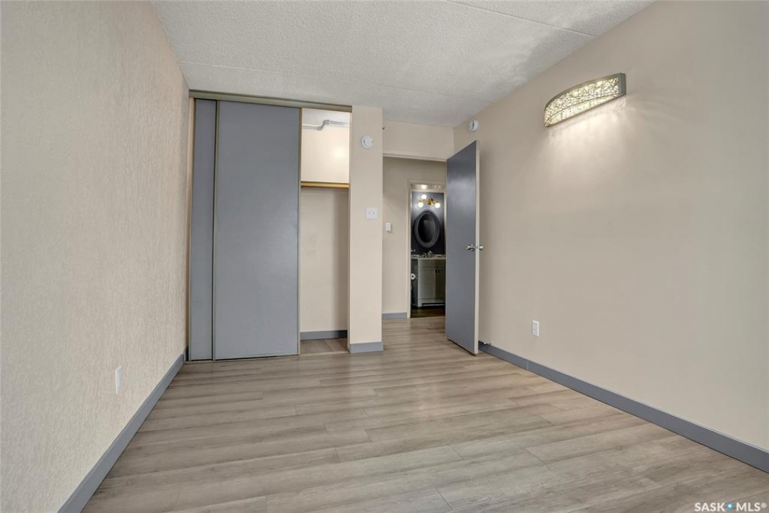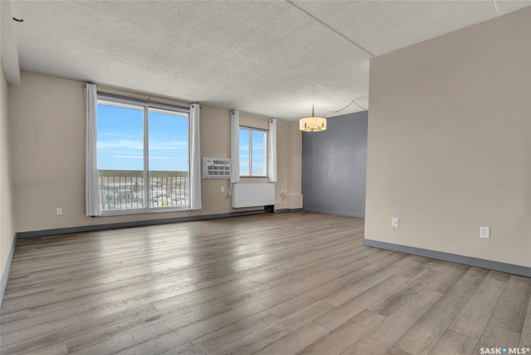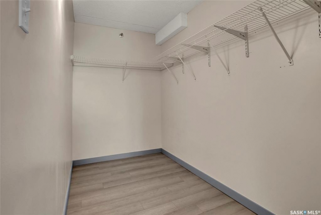 The Atrium Condo Complex, located in a fantastic Southwest area of Regina in Parliament Place is an extremely well-maintained 2 bedroom apartment-style condo that offers both convenience & comfort. Its proximity to shopping, restaurants, & medical clinics makes it an ideal spot for those who enjoy city living. Perfect for 1st time buyers, downsizing & investors. This desirable location & condo complex is constructed from concrete, ensuring security & quietness for all residents. Additionally, it offers various shared spaces such as an amenities room, Atrium lounge on the 2nd floor, an exercise area, visitor parking & common laundry rooms as well is wheelchair accessible w/elevator and underground parking. This unit is situated on the 5th floor and provides great views from its expansive balcony, making it perfect for enjoying summer evenings. Welcome new vinyl floor plank flooring that runs through the unit, creates a seamless connection in the open concept design. The living & formal dining areas enjoy large windows and patio doors to the balcony and are spacious. The dining area opens into the casual dining nook that connects to the galley style kitchen. All appliances are included. The kitchen even has a breakfast bar nook overlooking the living room which adds not only openness but extra workspace. Being one of the larger units in the building, there are 2 bedrooms with the primary bedroom boasting an oversized walk-in closet that offers additional storage space. Completing this unit is a 4pc. bath and a practical storage space which is perfect for pantry items. This condo combines practicality with elegance, making it a desirable choice for anyone looking to enjoy urban living with all the comforts of home in an affordable and prime location. (Some photos for Living, Dining and Bedrooms have been virtually staged to show space and possible furniture arrangements). CLICK ON THE MULTI MEDIA LINK FOR A FULL VISUAL TOUR and call today for a personal tour.
