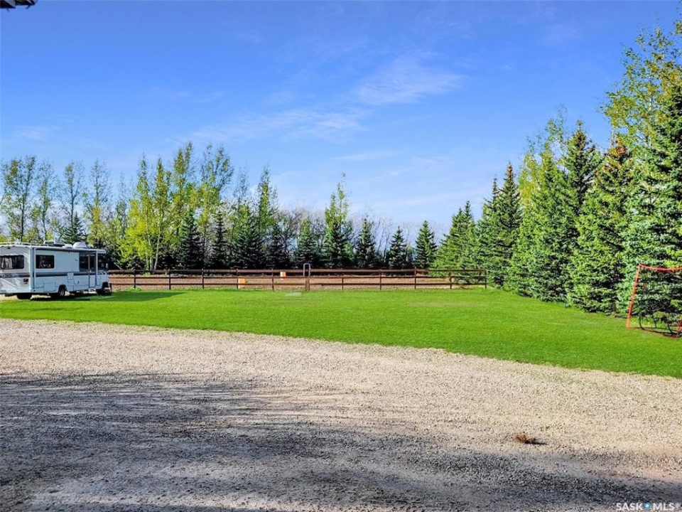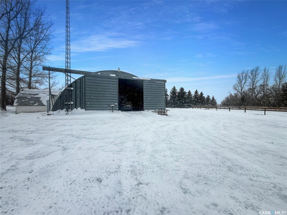 Only 15 minutes from Swift Current, this beautifully maintained 8.5-acre acreage offers a move-in-ready home and exceptional outbuildings for peaceful rural living. The home has been meticulously cared for and features fresh paint, updated PVC windows, new trim, some updated flooring, updated light fixtures and modern feature walls throughout. The kitchen has been refreshed with painted cabinetry, new hardware, and butcher block countertops. Enjoy a perfectly positioned window directly over the sink showcasing the fabulous yard behind. Two bedrooms, a front living room leading onto the spacious deck and large dining area complete the main floor. A convenient interior breezeway leads to an attached single garage that has been converted into a flex room(not included in the home's square footage). It is insulated, heated with an electric heater, and finished with rubber flooring—ideal for a gym, theatre room, mudroom, or additional storage. The basement offers a utility/ laundry room, family room, four piece bathroom, two additional bedrooms and an additional storage room. Outside, the property is well thought-out with a 46' x 71' quonset, a smaller barn (also suitable as a chicken coop), dog run, sheds, and excellent corrals, including a heated watering bowl. One shed houses the water hydrant and includes a root cellar. Enjoy the (almost complete) riding arena and fresh stain on the majority of the woodwork in the yard. Gardeners will appreciate the mature shelter belt, large garden area and the abundance of fruit trees and bushes, including apple, chokecherry, saskatoon, honeyberries, strawberry, raspberry, and rhubarb. The seller notes abundant, high-quality water from a shallow aquifer. Additional updates include underground power (2007), 100amp panel, shingles (2020), fibreglass septic (2007), barn electrical brought up to code (2011), and a newer central AC (1.5 yrs old), updated hot water tank, new septic pump 2025, Call today for more information.