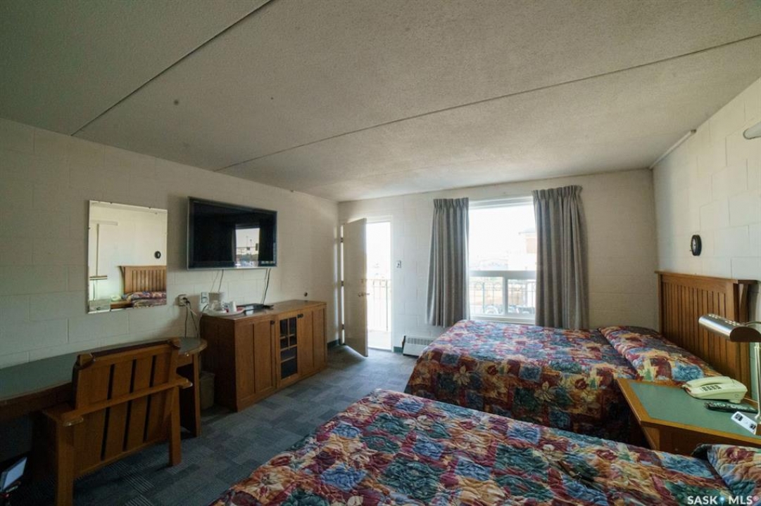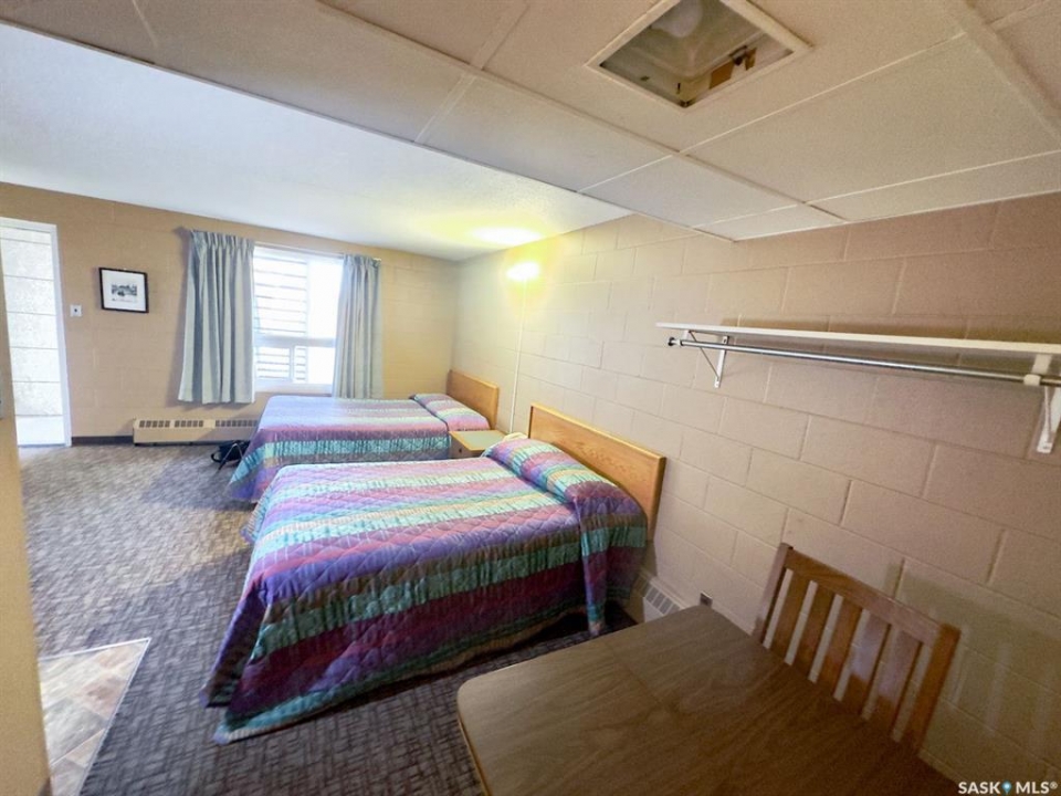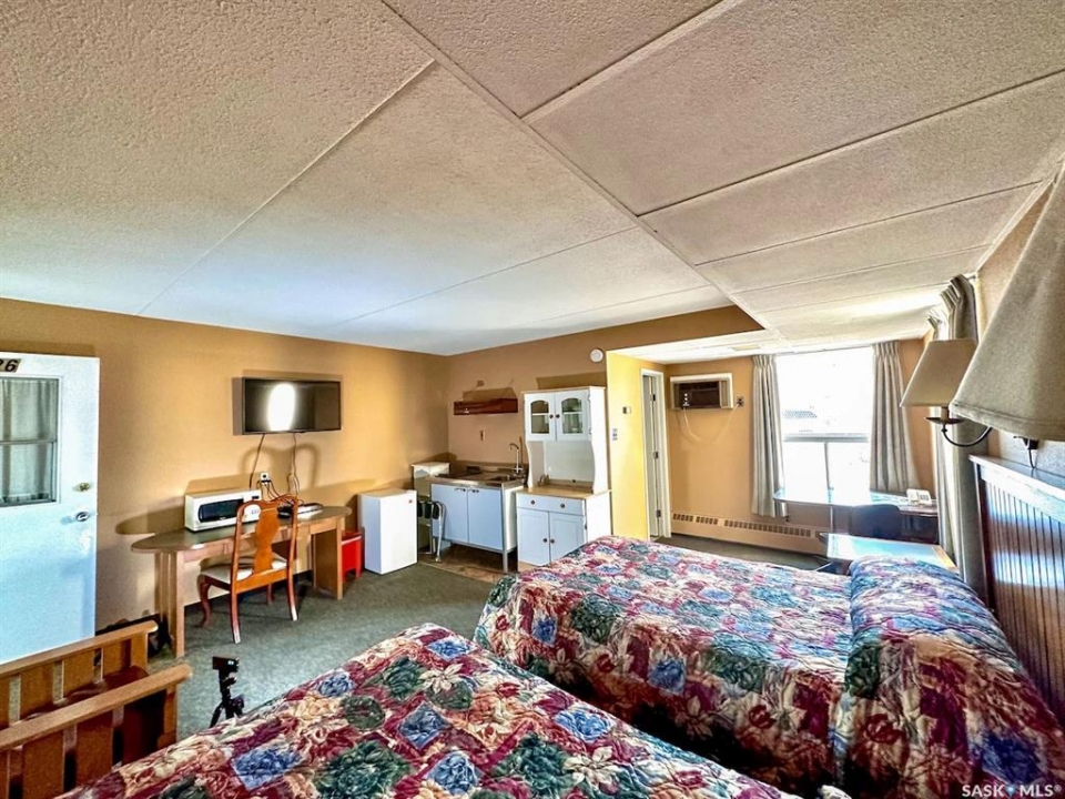 Capone's Hideaway Motel is a unique commercial opportunity in the heart of downtown Moose Jaw, Saskatchewan, within walking distance to major tourist attractions and historic downtown. This iconic low-rise motel, famously named after Al Capone and recognized by its 1920s antique car sign, features 24 rooms comprising 8 single-bed rooms (capable of accommodating king-sized beds) and 16 double-bed rooms (up to two queen beds), including 4 double rooms with kitchenettes. Guests enjoy air conditioning, wireless high-speed internet, non-smoking accommodations, and comfortable rooms. The solid cindercrete/concrete building with pre-cast floors has undergone extensive renovations within the last year, including over $450,000 in all-new plumbing and heating systems, along with significant interior room upgrades. Additional features include a main-level front office with a private 1-bedroom suite ideal for overnight staffing, two shared laundry rooms (upper and lower levels), storage and boiler rooms, and a parking lot with 24 electrified stalls to accommodate full occupancy. The property is in the final stages of renovation following a partial fire insurance claim in late 2024. Sale includes company shares, all property assets, and furniture and fixtures for each room.