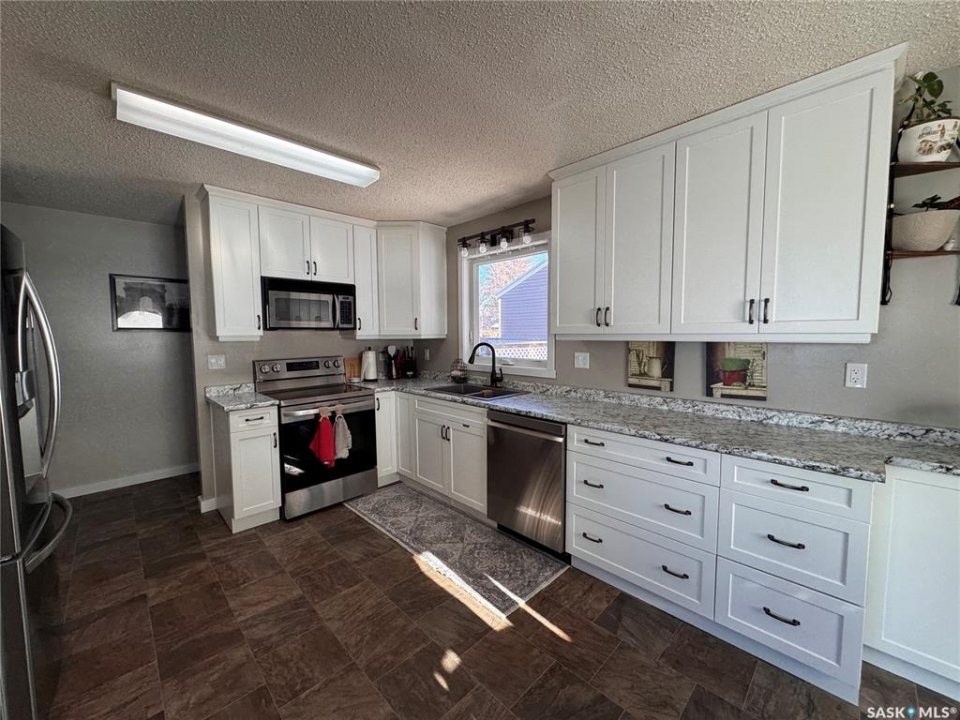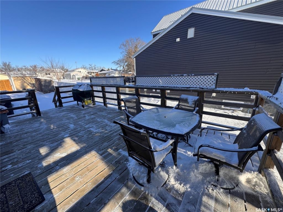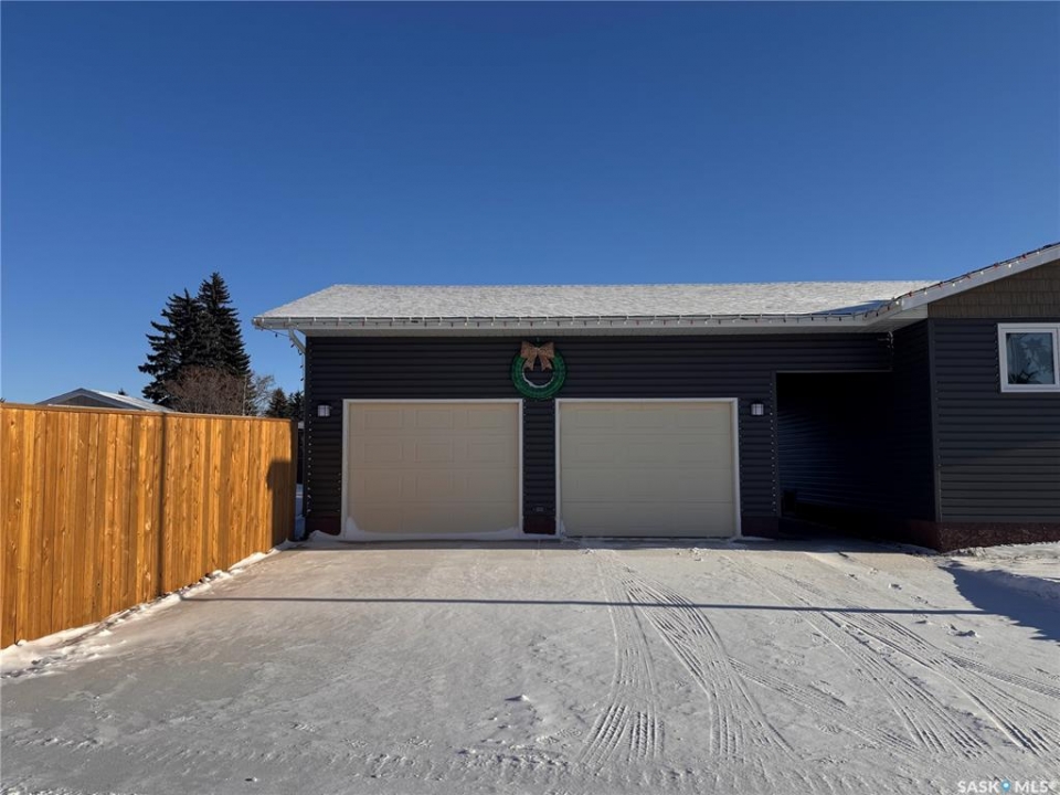 Welcome to 415 3rd Avenue West in Biggar, a beautifully updated family home. This property has seen major upgrades inside and out. The exterior has just been redone, featuring new windows, new siding, a privacy fence, garden shed, fresh turf in the backyard with underground sprinklers, and a brand-new front step—giving the home incredible curb appeal and low-maintenance living. Step inside to find a bright, refreshed main floor with new paint and flooring throughout. The heart of the home is the custom-renovated kitchen, complete with stainless steel appliances, under-cabinet lighting, and a seamless connection to the dining area and living room—perfect for everyday living and entertaining alike. The living room is anchored by a natural gas fireplace and a large picture window overlooking the town's outdoor rink and green space—a fantastic view for families and anyone who enjoys an active community vibe. Down the hall, you'll find three bedrooms: the primary bedroom, along with two additional bedrooms ideal for kids, guests, or a home office. A full 4-piece bathroom serves the main level, while a convenient 2-piece bath, spacious mudroom, and rear entry are perfectly positioned near the back door for everyday practicality. The basement adds valuable living space, offering a family room, games area, a 2-piece bathroom, and a combined laundry, storage, and utility room—plenty of room for hobbies, relaxation, and storage. Car lovers and tinkerers will appreciate the two-car garage with high ceilings, connected to the home by a breezeway that provides shelter from the elements year-round. Outside, enjoy a corner, partially fenced yard with a large deck ideal for BBQs, plus a garden area and greenhouse for those with a green thumb. This move-in-ready home checks all the boxes—updates, space, location, and lifestyle. Don't miss your chance to make it yours. Book your showing today and see it for yourself!