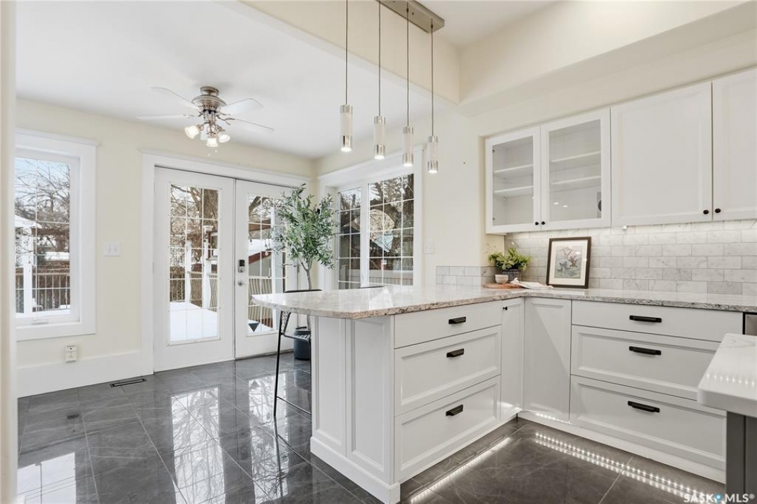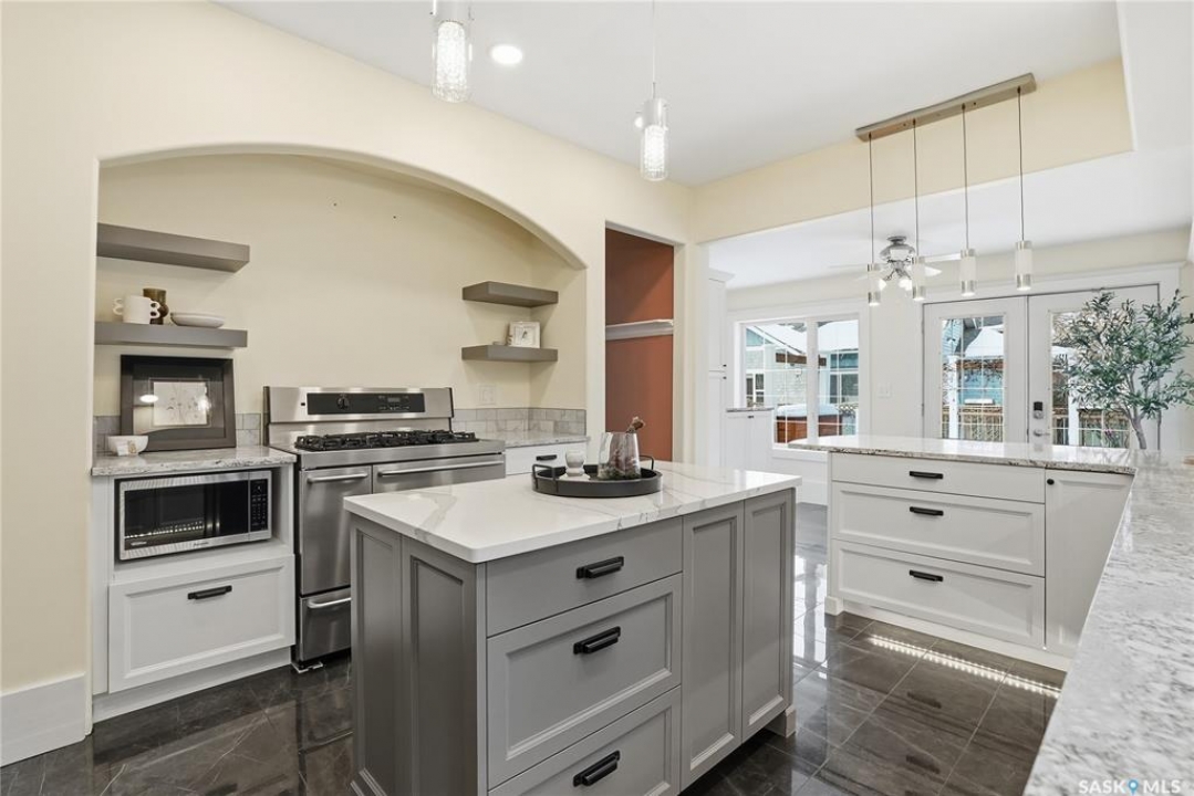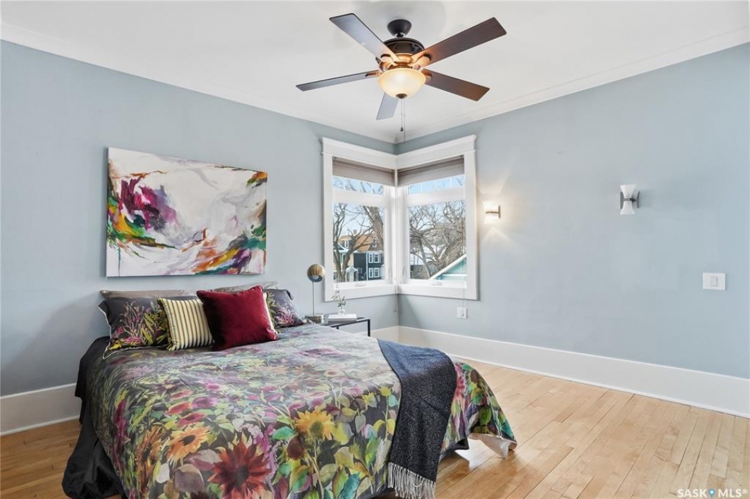 Don't miss this INCREDIBLE character home in one of Saskatoon's most desirable neighbourhoods! A stately family home with a fully developed basement with separate entry. This property exudes pride of ownership with charm and professional updates throughout. Enter into the main floor to find a welcoming sunroom and lrg foyer, living room with wood burning fireplace, and a formal dining with a bay window. At the heart of the home is a chef's DREAM KITCHEN- spacious and beautifully appointed with quartz countertops, stainless appliances, and a sit-up eating area that opens onto a sitting room, overlooking a large deck and private yard. A 2-pc bath completes the main. Upstairs, you'll find 3 bedrooms: a primary suite with an ensuite and a charming private deck of the master. Two additional lrg bedrooms and a newly renovated 3-piece bathroom complete 2nd flr. Large windows flood every room with natural light, highlighting the significant character. Extensive renovations and upgrades have been meticulously completed recently, blending heritage with modern class. The unique dev basement offers a modern living room, lounge and 1 bed layout with a sep entrance, 4-pc bath, 2 x laundry, kitchen, and a family room w/ gas fireplace — ideal for additional cash flow. The oversized, heated att garage includes a large attic storage area above. The front yard is low maintenance with a stamped concrete driveway providing parking 3 vehicles. The private backyard will impress w/manicured grounds: a two-tiered deck, garden boxes, artificial turf, curbing, and climbing vines. In total, there are three decks, including a covered front deck and the private balcony of the master. Upgrades include: furnace, hot water heater, shingles, garage, decks, kitchen, two bathrooms, basement development, many new windows, updated exterior, and driveway — the list goes on! This gem is ideally situated within walking distance to the river, downtown, U of S, and all hospitals, the location is unbeatable!