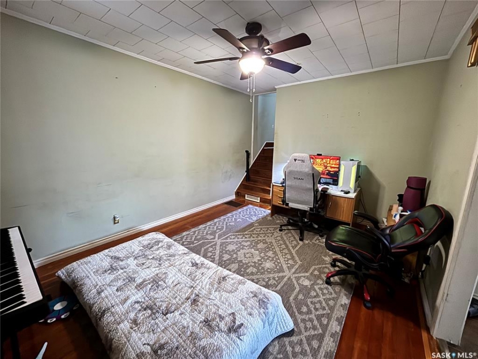 Full of character and thoughtful updates, this charming 1928 one-and-three-quarter storey home is ideally situated on a corner lot in a mature, quiet neighborhood. Enjoy the convenience of being close to downtown Humboldt as well as St. Augustine Elementary School and Church. The main floor features a welcoming layout with a bright kitchen, dining room, and living room highlighted by high ceilings and original hardwood flooring. The updated kitchen offers newer cabinetry, a center island, and a built-in dishwasher—perfect for both everyday living and entertaining. The dining room flows seamlessly into the living room, creating a warm and inviting space. A three-season front porch adds extra charm and a cozy spot to relax, while a convenient two-piece bathroom is located off the side entrance. Upstairs, you'll find three comfortable bedrooms and a four-piece bathroom, with some original hardwood flooring continuing to showcase the home's timeless appeal. The basement provides ample storage space and houses the utilities and laundry. Outside, the fully fenced yard offers privacy and functionality, complete with a single detached garage with direct street access. This home is filled with character and charm throughout—an excellent opportunity to own a piece of Humboldt history with modern updates in a fantastic location.
