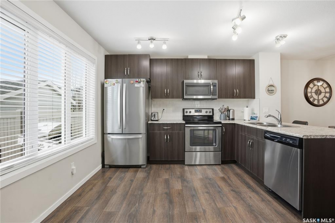 Welcome to 7904 Canola Avenue - a well-cared-for family home ready to welcome its next owners. Located in Regina's up-and-coming Westerra neighbourhood, this home offers the best of city convenience paired with a relaxed pace, surrounded by parks, green spaces, and walking paths. The main floor features a thoughtfully designed open-concept layout that seamlessly blends the family room, dining area, and kitchen - perfect for both everyday living and entertaining. The rear-facing kitchen is filled with natural light and offers a large pantry, generous counter and cabinet space, and direct access to the backyard. A convenient 2-piece powder room completes this level. Upstairs, you'll find a unique dual primary bedroom configuration, with both bedrooms offering generous square footage and their own spacious ensuites. The laundry area is also located on this level, adding everyday convenience. The basement is wide open and ready for future development, should you need additional living space, and includes a roughed-in bathroom for a potential fourth bath. Step outside to enjoy your fully fenced and finished yard - ideal for hosting summer BBQs or unwinding in the evenings. A detached garage provides space for parking and extra storage. Value-added features include all appliances, a fully finished yard, owned water heater, furnace humidifier, and more. A fantastic opportunity in a growing neighbourhood — this home is move-in ready and full of potential.