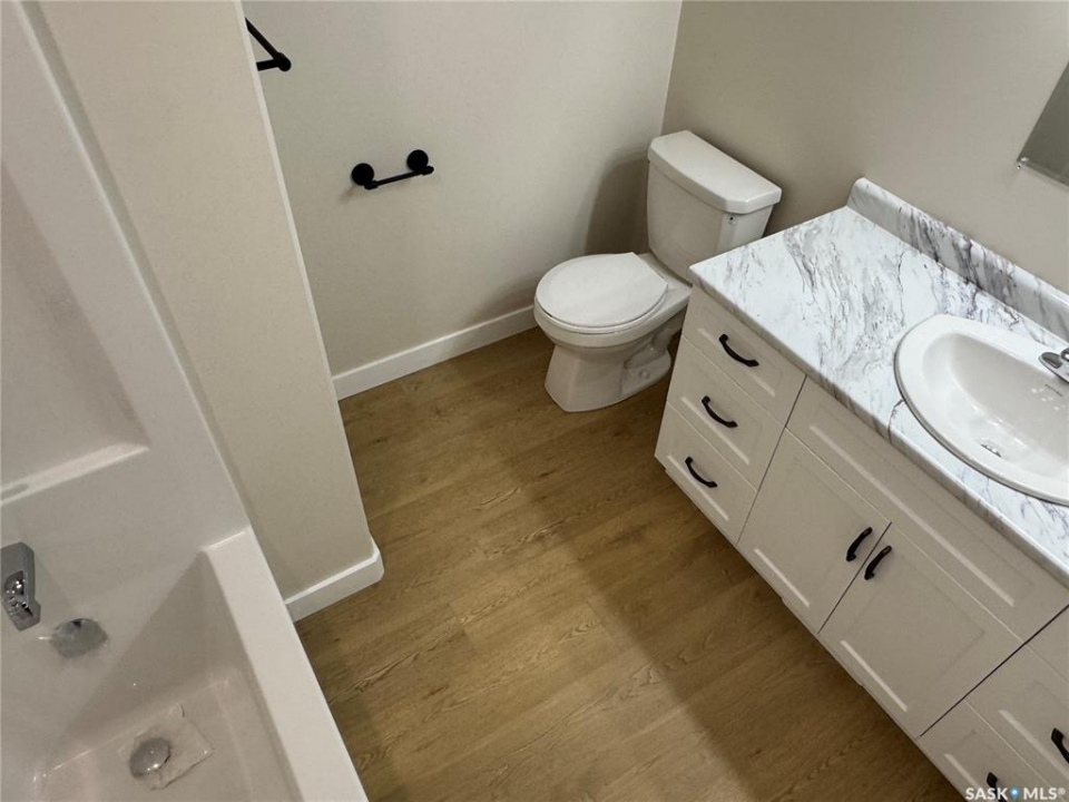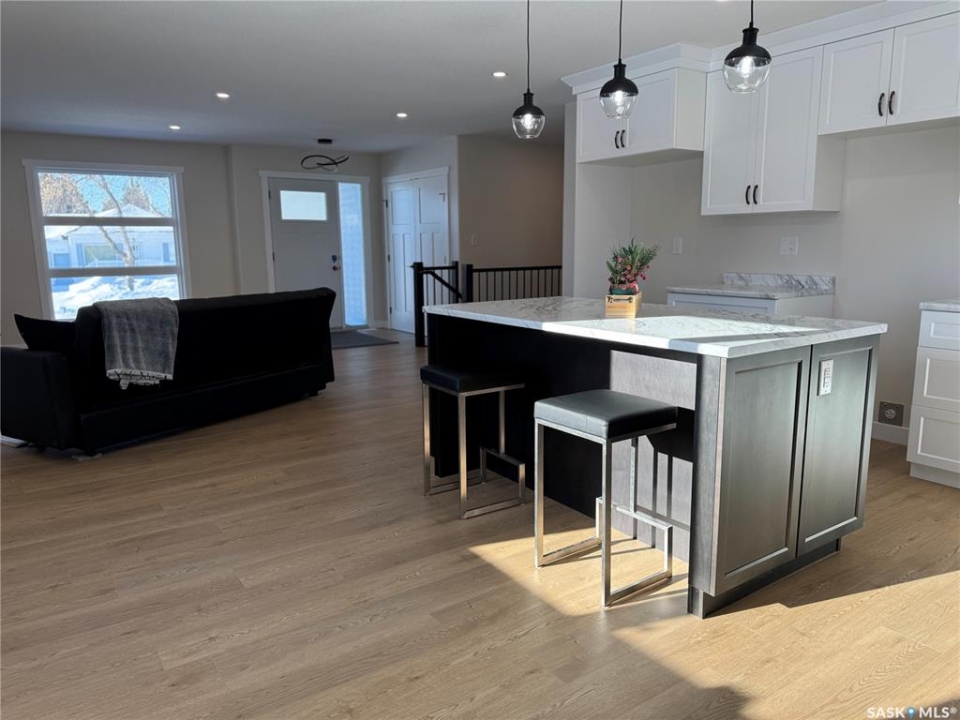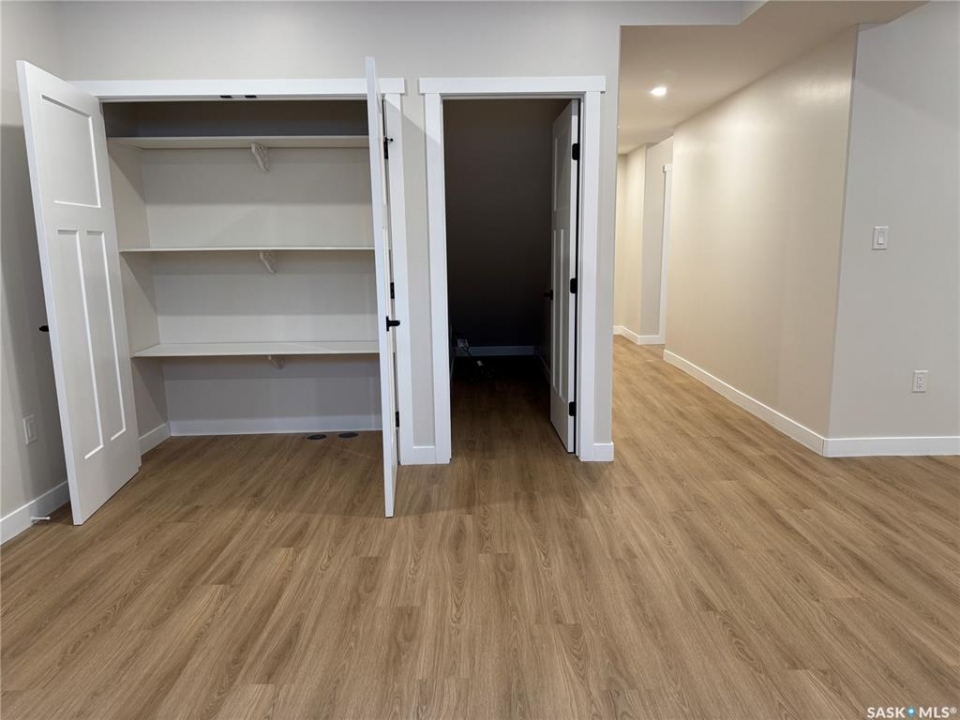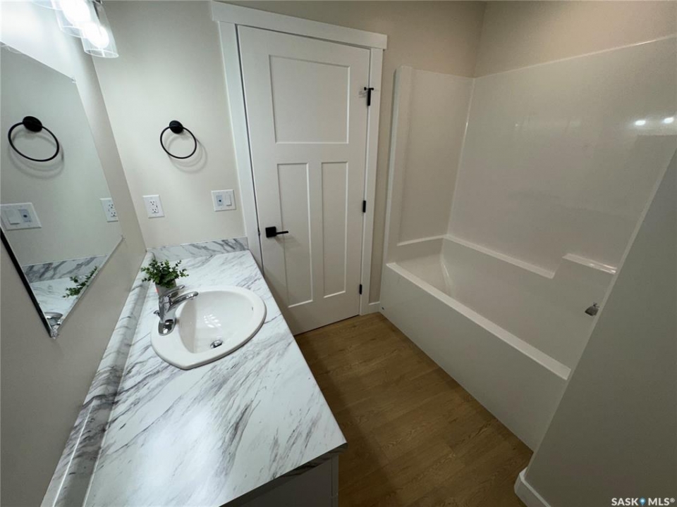 This stunning custom-built 2025 bungalow is crafted by a highly reputable builder and offers 1,354 sq. ft. of thoughtfully designed living space, plus a fully finished basement. The home features a fully fenced yard, maintenance-free deck, double concrete driveway with sidewalk, and a double insulated and heated garage—perfect for year-round comfort and convenience. The main floor welcomes you with two separate entrances sharing a spacious closet, ideal for busy households. You'll find three bedrooms on the main level, one of which is equipped with washer/dryer hookups for optional main-floor laundry. The primary bedroom includes a large walk-in closet, ready for the buyer to customize with a $1,000 design allowance. The open-concept main living area is bright and inviting, featuring custom white kitchen cabinetry and easy-maintenance flooring that flows seamlessly throughout—perfect for modern living and entertaining. The finished basement adds exceptional value with two additional bedrooms, a large family room/games area, ample storage, a 4-piece bathroom, and a dedicated utility room. Additional highlights include central air conditioning and central vacuum. Ideally located within walking distance to an elementary school and church, this home offers both comfort and community. Note: GST and PST extra. Property taxes on land only. Seller to assign any housing rebates to the Buyer. Buyer to verify all measurements. FLOOR PLAN AVAILABLE UPON REQUEST. A move-in-ready property that combines quality craftsmanship, smart design, and an excellent location. New Home Warranty Included. Calll to view today!