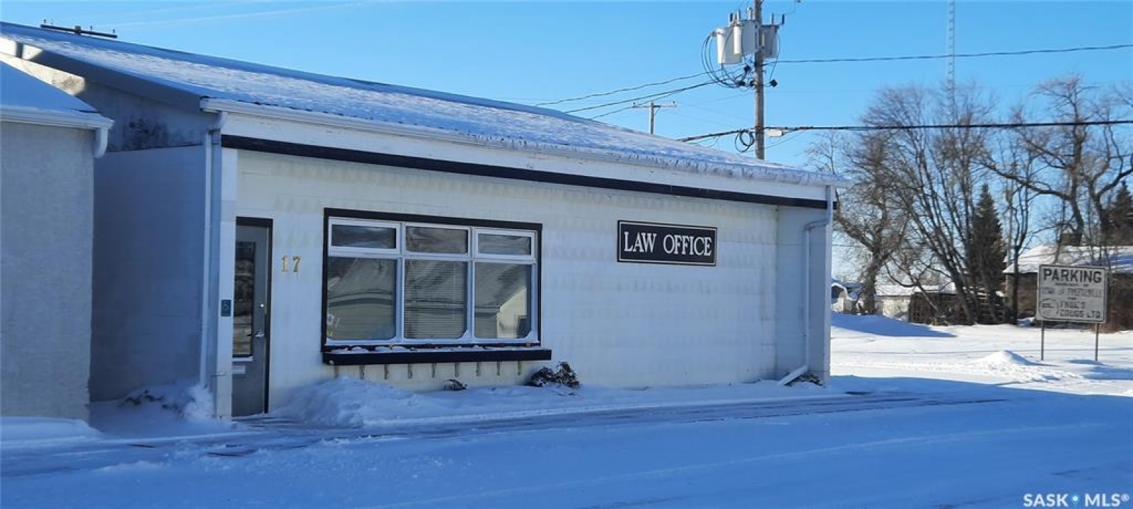 Welcome to 17 1st Avenue NW in Preeceville SK. This commercial location formally known as the “PEET LAW FIRM” is situated in the vibrant downtown core of Preeceville among all the downtown amenities. Boasting 1,520 square feet of functional office space and 0.56 of an acre with adequate parking, this great location can accommodate many commercial entities. The building is currently vacant, move in ready and can provide immediate occupancy. Built in 1969, this building is solid and has stood the test of time. Upon entry the interior features a spacious reception area that leads to a stenographic space and 3 offices. Towards the back of the building remains the bathroom, furnace room and added storage room that would make a great kitchenette or board room. The building does not have a basement but remains to be all main floor. Featured is central air conditioning, wheelchair accessibility, and great overall curb appeal! Additionally the property boasts a metal roof, forced air and natural gas heating. Some office furniture remains at the property which can be negotiated upon to be included with the property if desired. Taxes are very affordable : $1381/year. Call for more information or to schedule a viewing.