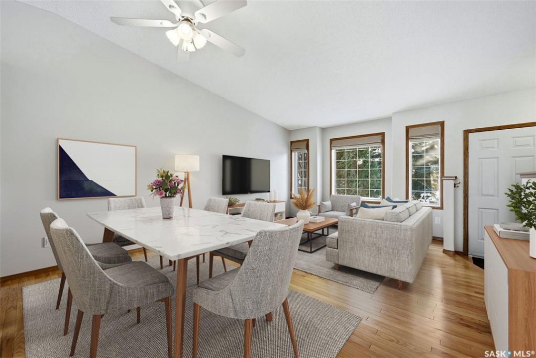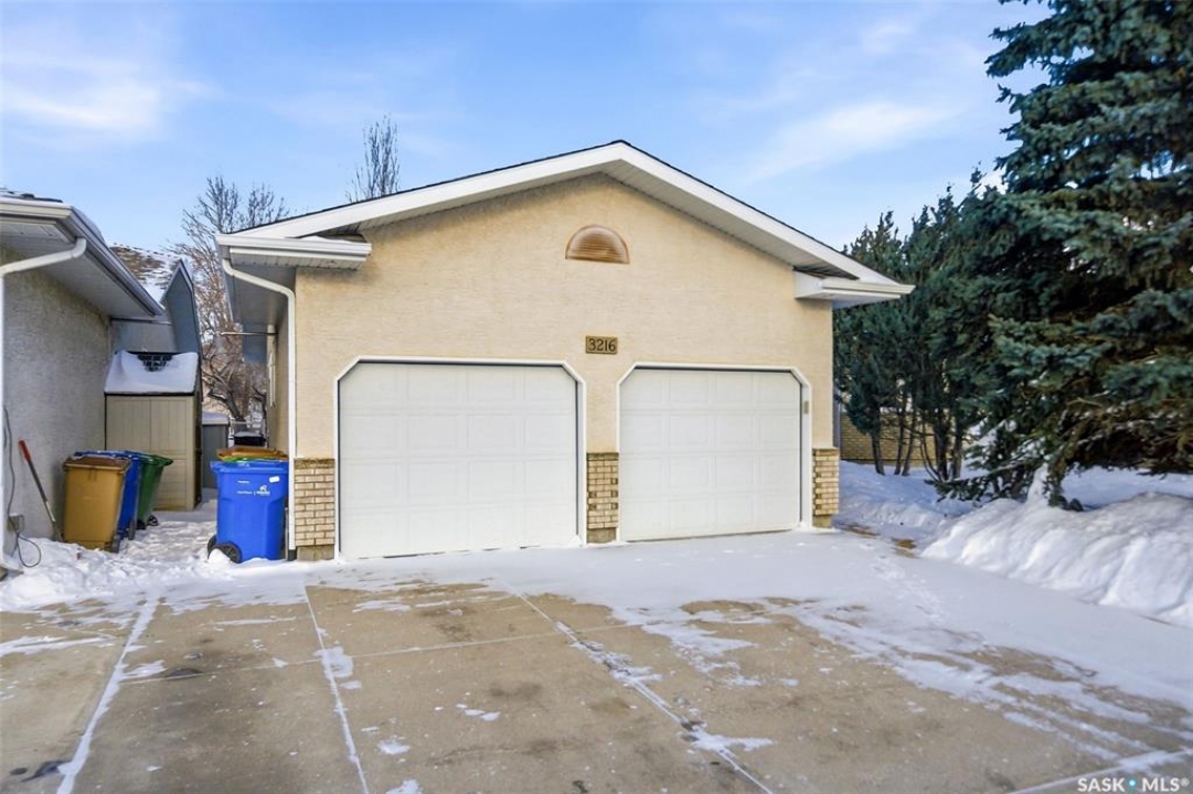 Welcome to 3216 Thames Crescent E! This 1,251 sqft bungalow is nestled on a quiet crescent in the highly desirable Windsor Park neighbourhood—one of Regina's most family-friendly communities. Lovingly maintained, this home offers a thoughtful layout, solid construction, and evident pride of ownership, presenting an excellent opportunity to personalize while enjoying immediate comfort. The main floor welcomes you with a bright, open living room where gleaming hardwood flooring flows throughout the space. The functional eat-in kitchen features an abundance of cabinetry and counter space, a corner pantry, a practical island, and direct access to the backyard—ideal for everyday living and entertaining. Upstairs, you'll find two bedrooms plus a versatile den, perfect for a home office or flex space, along with a 3-piece ensuite and a 4-piece main bathroom. Main floor laundry adds everyday convenience. The fully developed basement offers a spacious L-shaped family room, a 3-piece bathroom with a custom-tiled shower, and an additional bedroom with a generous walk-in closet (window may not meet egress). A dedicated storage room provides practical organization. Outside, the thoughtfully designed yard features rubberized paving on the front sidewalk and step, tasteful xeriscaping for easy maintenance, underground sprinklers in the backyard, a gas line for the BBQ, newer fencing, and a large shed—offering both function and privacy. The heated and insulated 21' x 21' attached garage provides year-round comfort and additional storage. Additional features include a newer high-efficiency furnace, newer humidifier, topped-up attic insulation, newer central air conditioning, central vacuum, and more. This home has been exceptionally well cared for and offers a fantastic opportunity to live in a premier neighbourhood close to schools, walking paths, and all the amenities of Regina's east end.