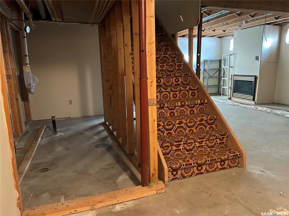 Affordable home with excellent potential in Estevan's Pleasantdale neighbourhood! This spacious 1,331 sq. ft. property sits on a generous 7,575 sq. ft. lot and features an attached double garage—an ideal opportunity for buyers looking to personalize a home in a great location. Owned by the same seller for nearly 40 years, the home is now ready to welcome a new family. Step inside to a bright living room with a cozy gas fireplace, complemented by a separate dining area off the kitchen. The main level also includes a comfortable family room, a convenient 2-piece bathroom, and direct access to the double garage. Upstairs, you'll find a large primary bedroom complete with a 3-piece ensuite and its own private deck, along with a full bathroom, two additional bedrooms, and a dedicated laundry area.The basement has never been finished and has had no water issues. It offers even more living space with a large family room area featuring another gas fireplace, a roughed-in bathroom, a generous storage room, and extra storage in the utility area. Recent updates include a newer air conditioner, furnace, shingles, and plumbing lines—adding peace of mind for the next owner. Come experience this home in person and discover the potential it has to offer!